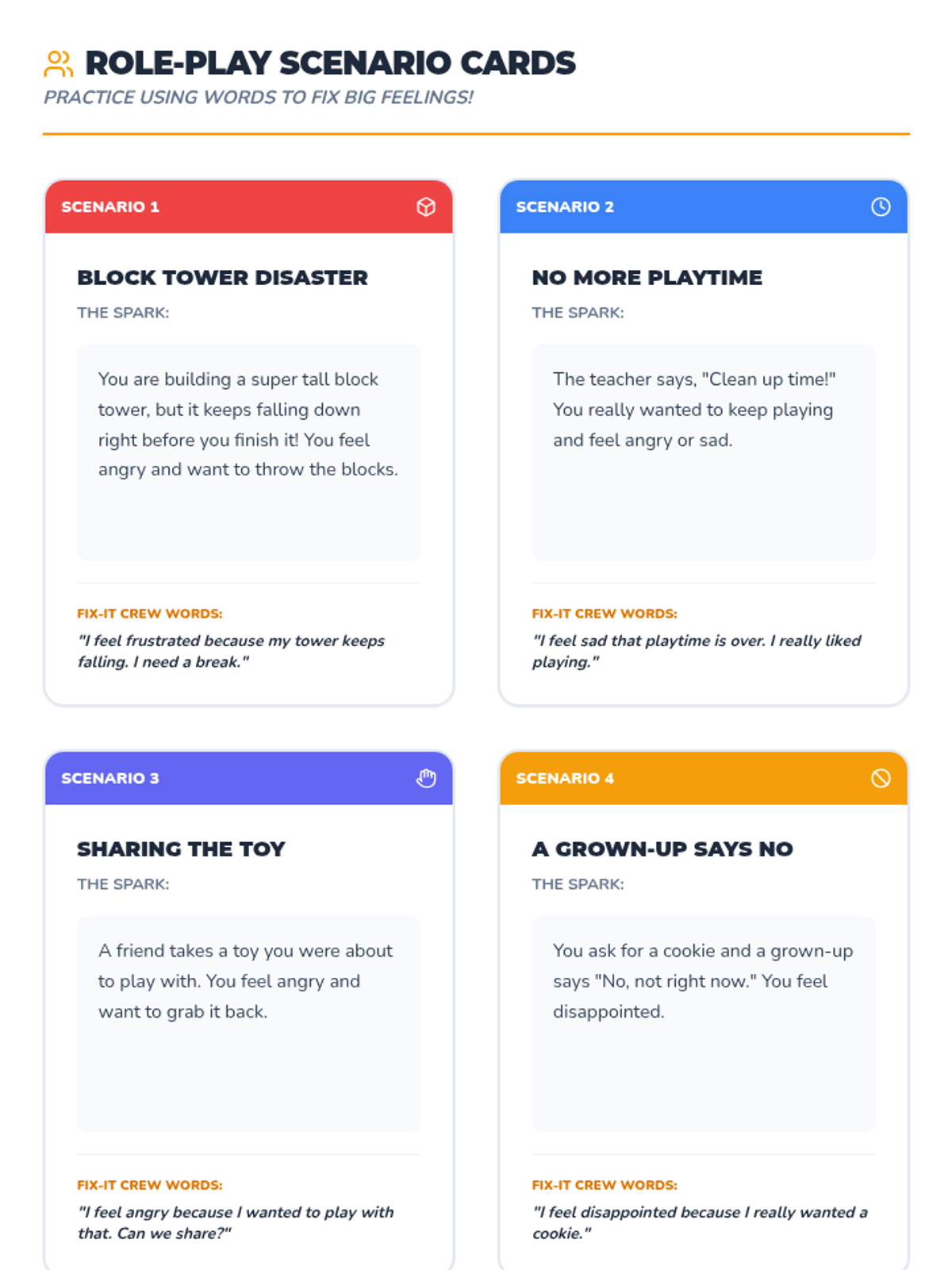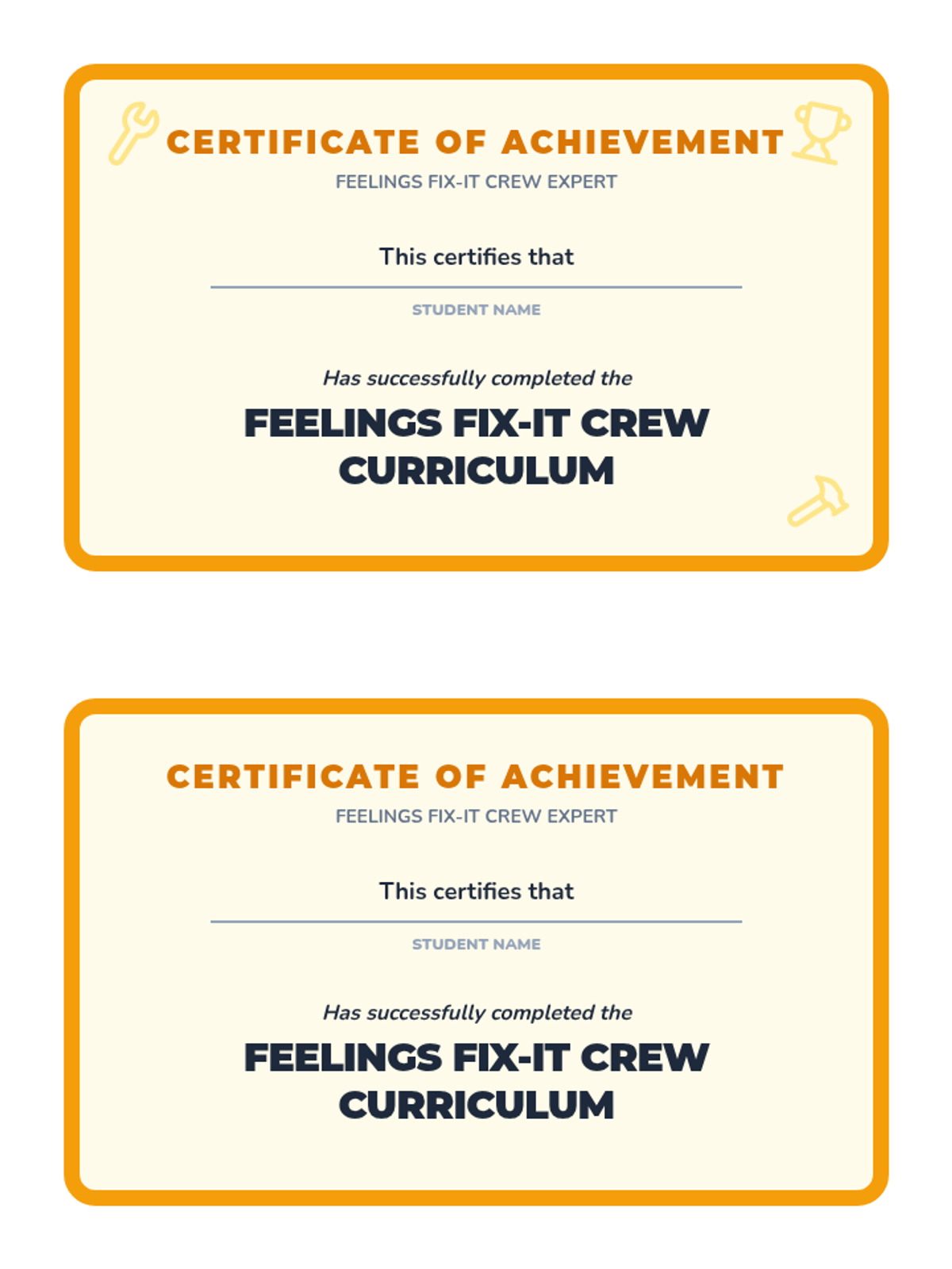 A 6-week social-emotional learning curriculum for Kindergarten students (Tier 2) focusing on emotion identification, body signals, calm-down strategies, and flexible thinking through a 'Fix-It Crew' workshop theme.
