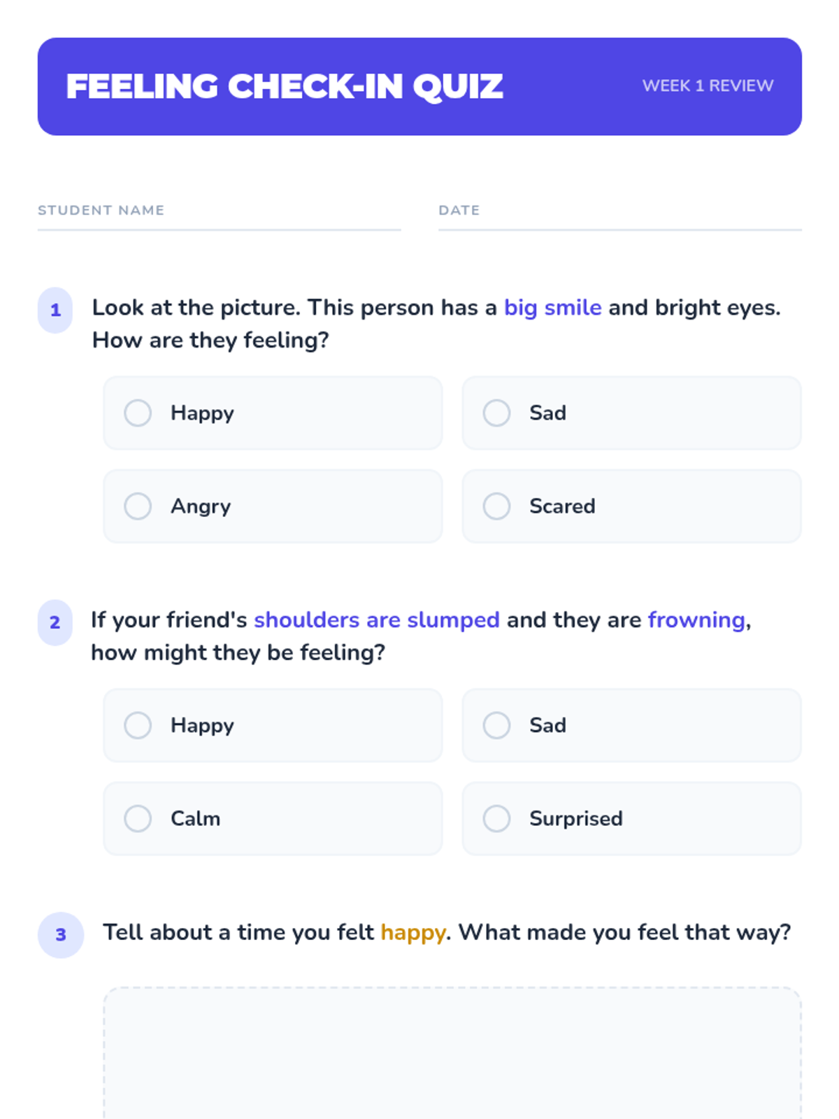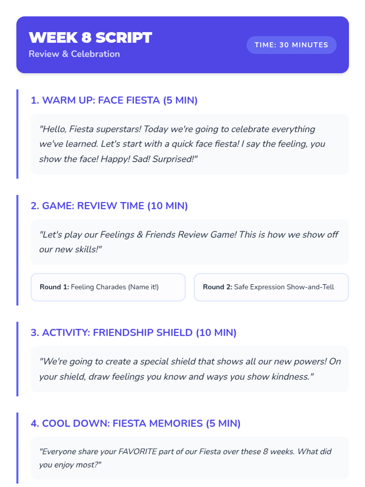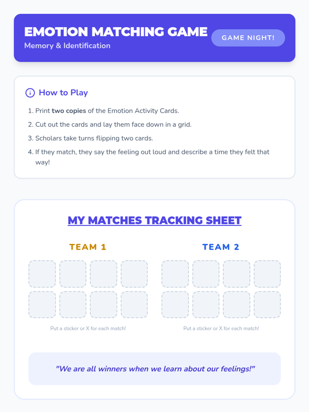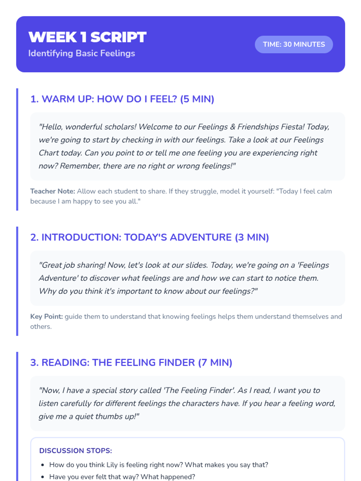 An 8-week Tier 2 small group social-emotional learning sequence for 1st and 2nd grade scholars focusing on identifying emotions, safe expression, empathy, and conflict resolution.