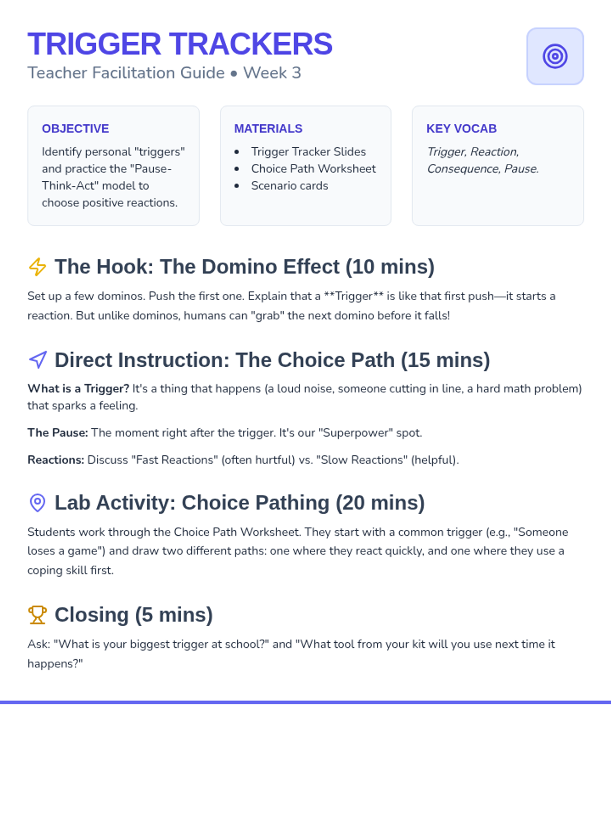 A series of lessons focused on developing essential self-regulation and behavioral management skills for elementary students, starting with impulse control.