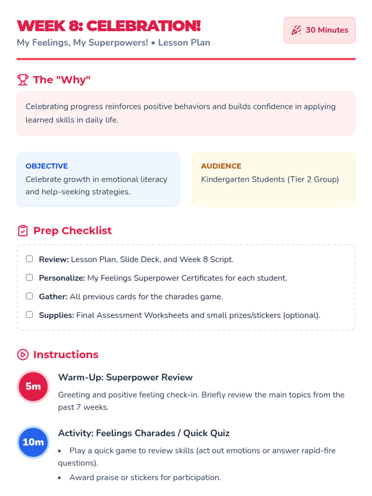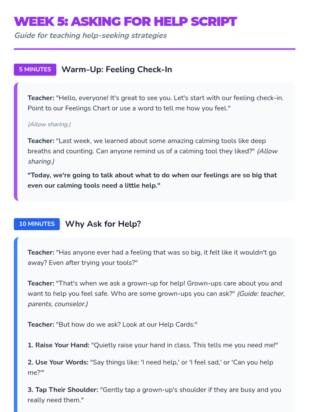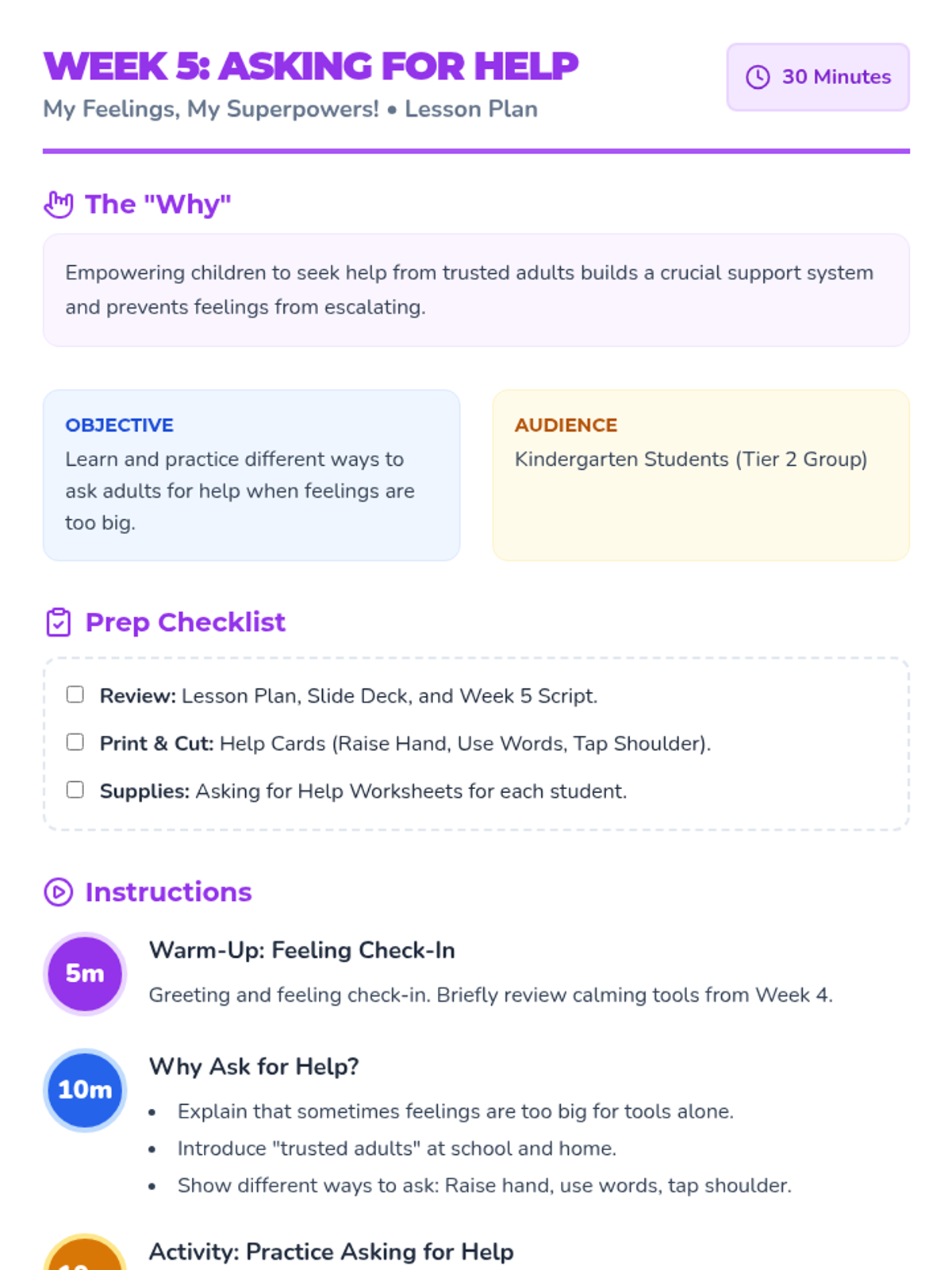 An 8-week group program for Kindergarten students (Tier 2) to build emotional literacy, develop coping skills, and learn how to ask for help. This Tier 2 intervention empowers young learners to navigate their feelings with confidence and seek support.