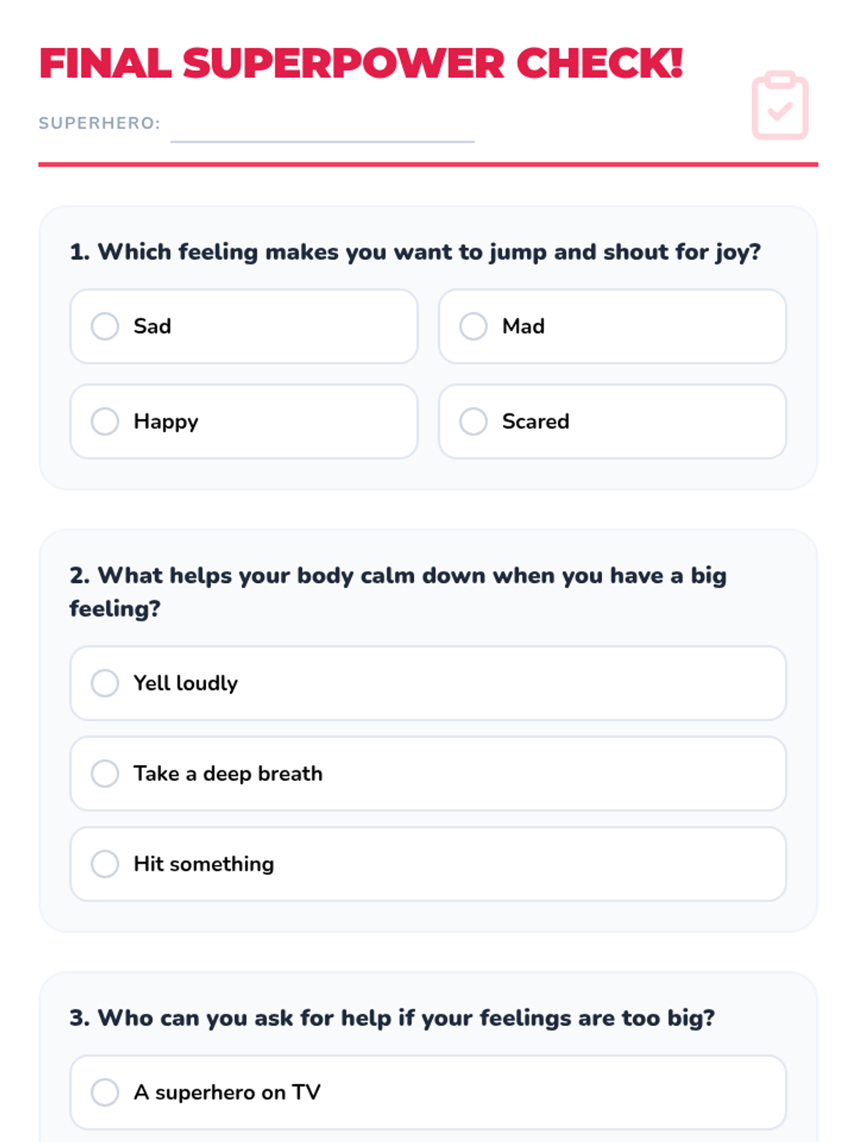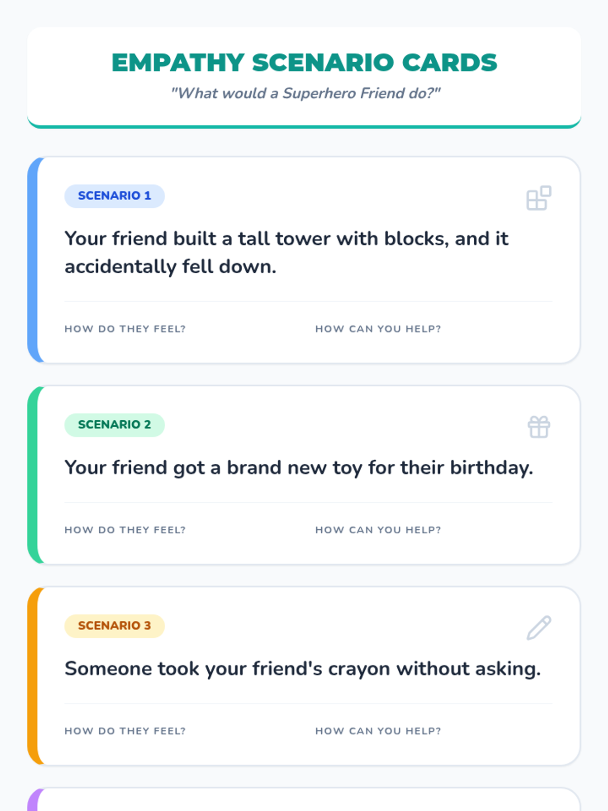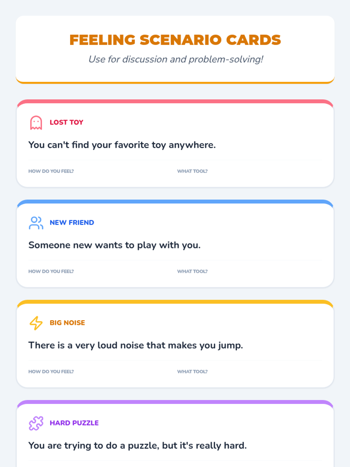 An 8-week group program for Kindergarten students (Tier 2) to build emotional literacy, develop coping skills, and learn how to ask for help. This Tier 2 intervention empowers young learners to navigate their feelings with confidence and seek support.