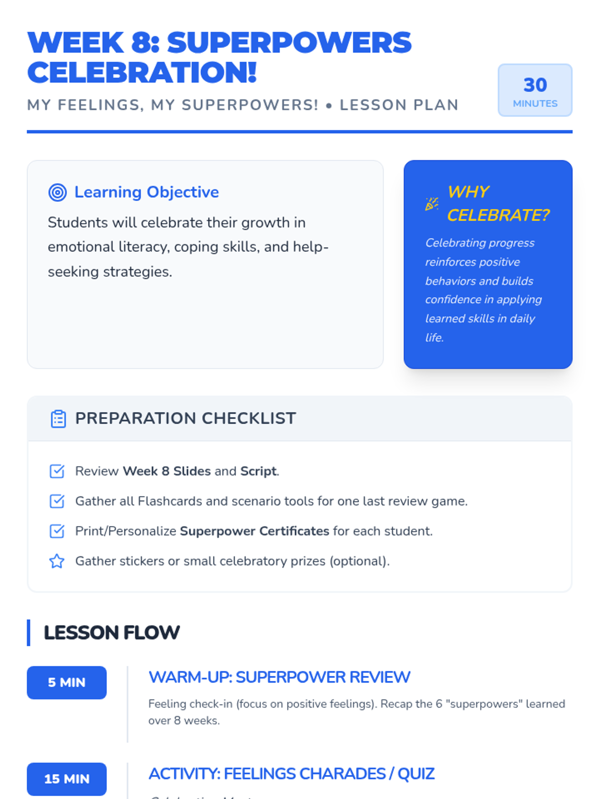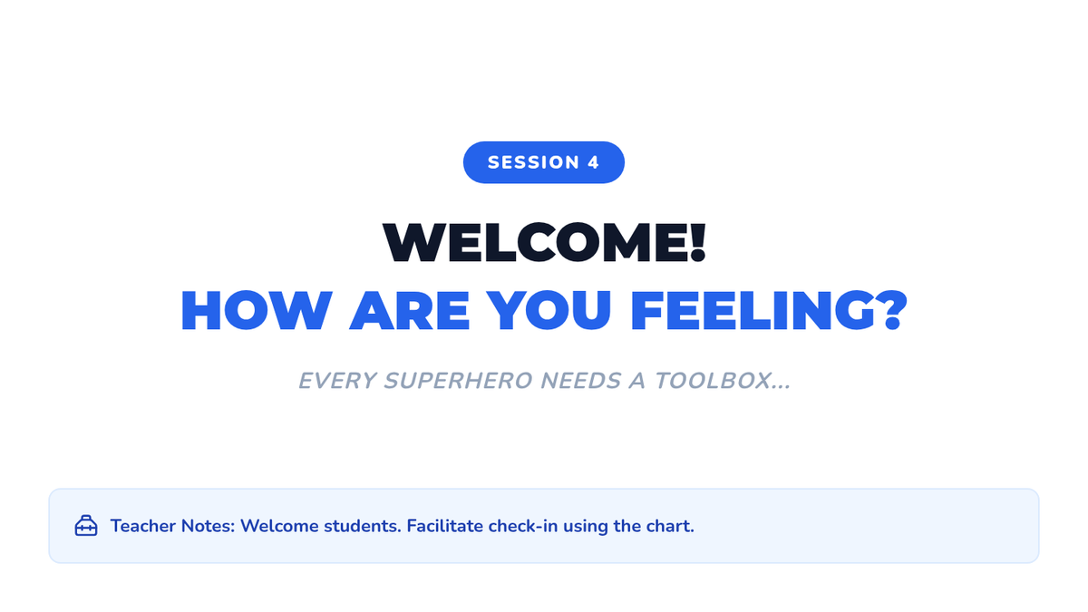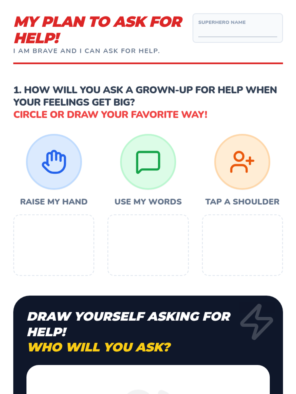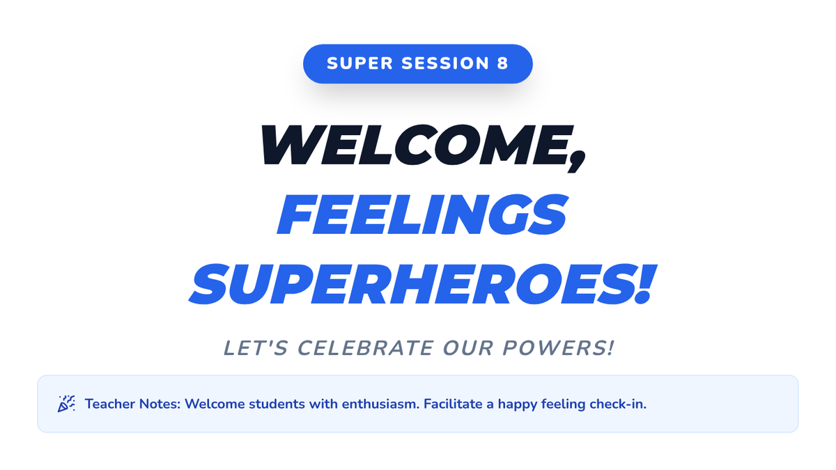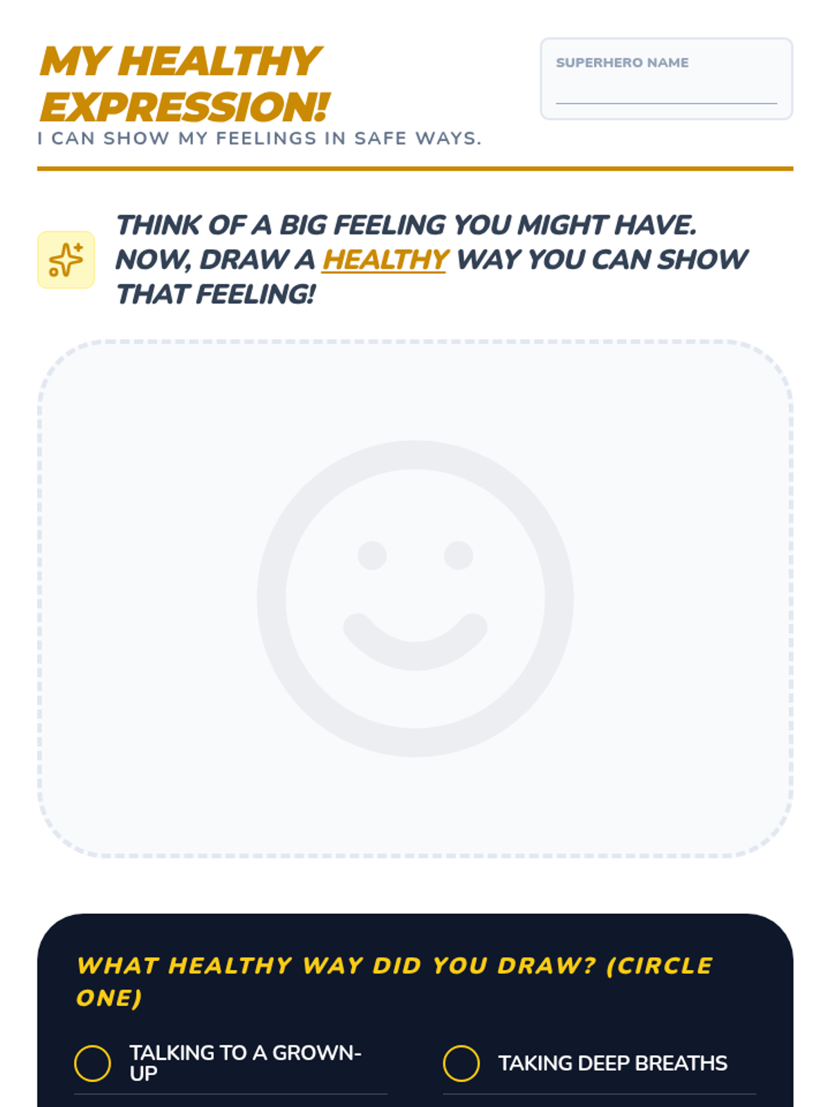 An 8-week Tier 2 group program for Kindergarten students focused on emotional literacy, self-regulation, and help-seeking behaviors. This program uses a superhero theme to empower young learners to navigate their emotions with confidence.