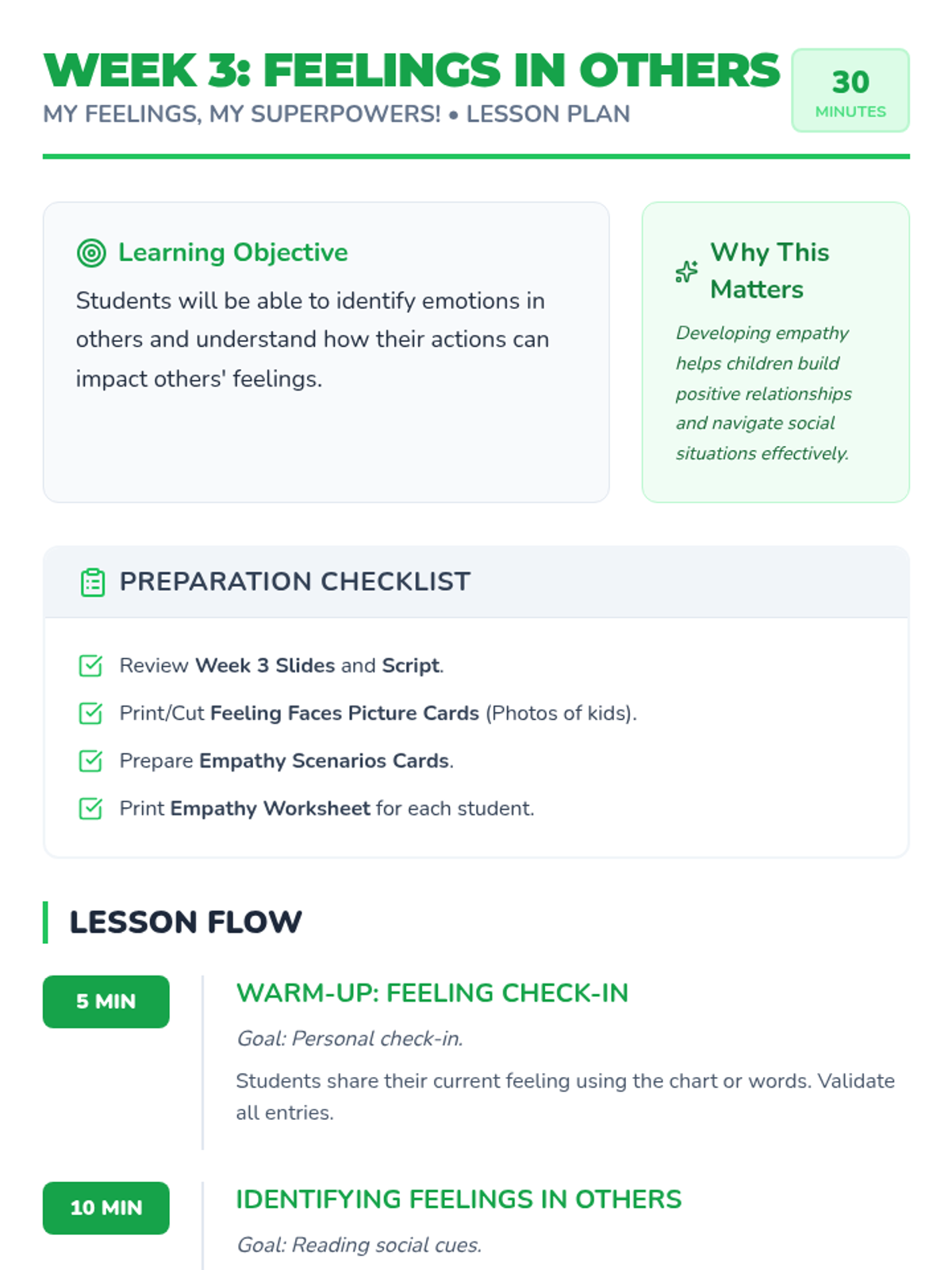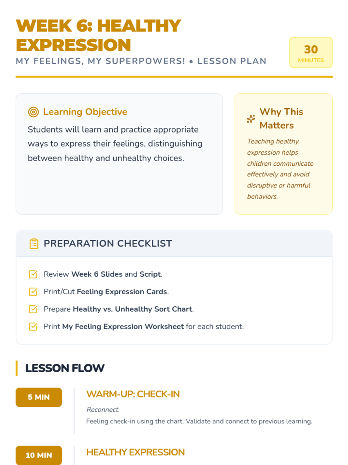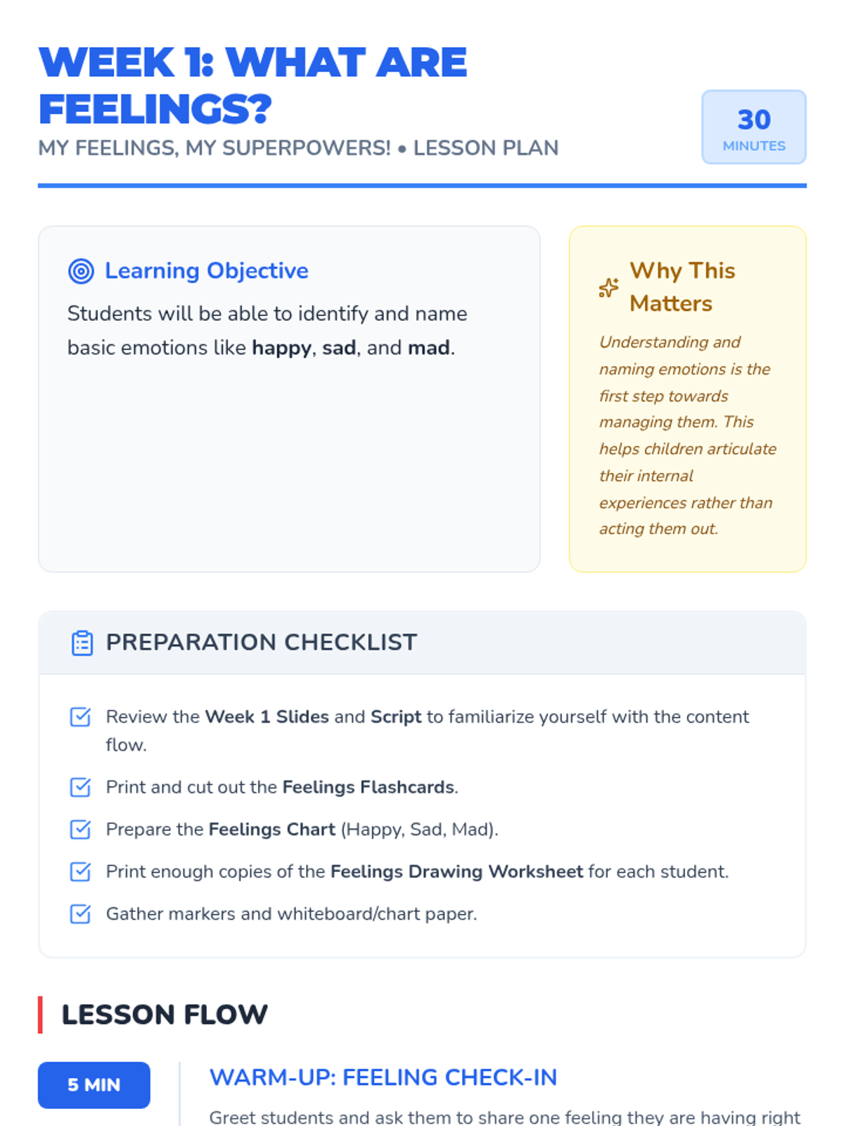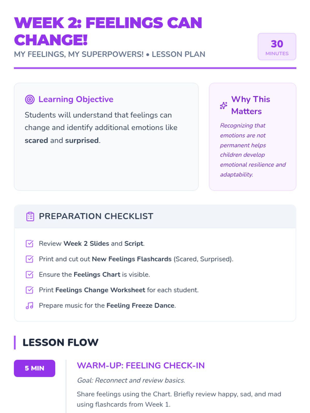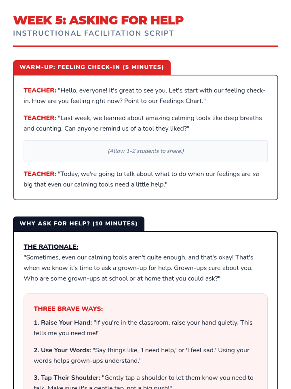 An 8-week Tier 2 group program for Kindergarten students focused on emotional literacy, self-regulation, and help-seeking behaviors. This program uses a superhero theme to empower young learners to navigate their emotions with confidence.