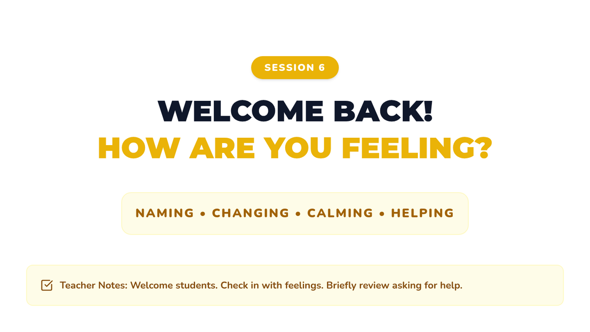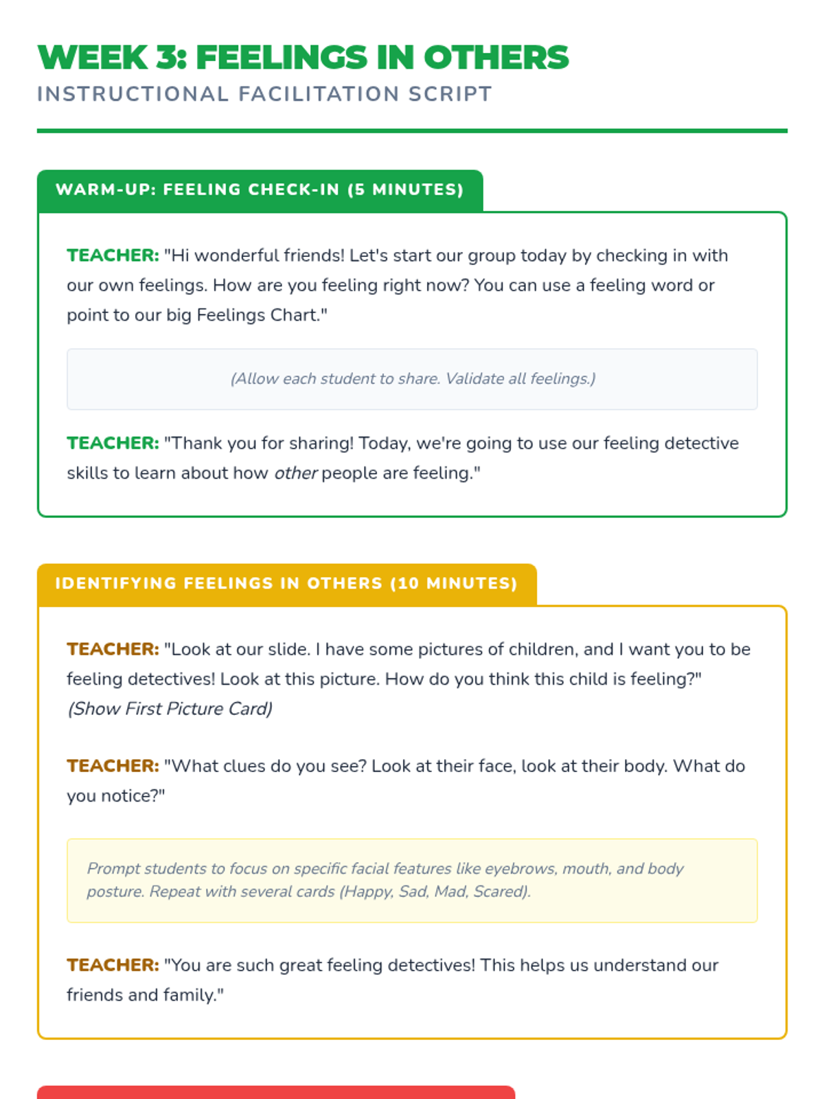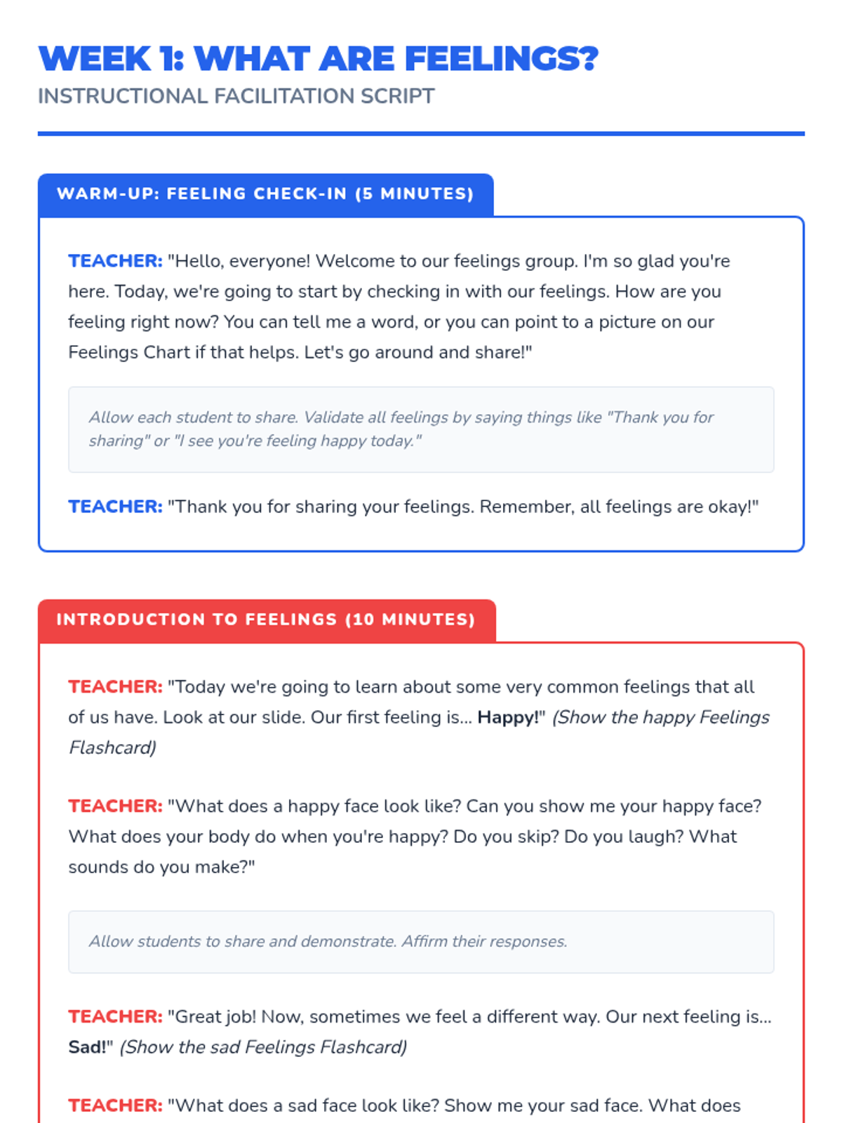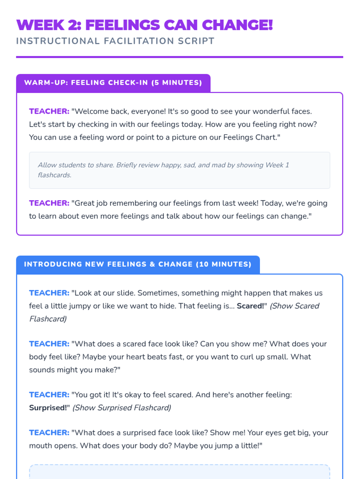 A sequence focused on building social-emotional competencies, starting with identifying and understanding a wide range of emotions. Students learn to recognize physical cues and situational triggers for different feelings.