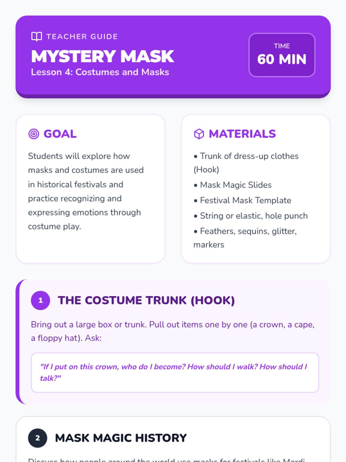 A high-energy sequence where Pre-K students explore the physical and musical side of historical celebrations. Through marching, dancing, making noise, and wearing masks, students learn that holidays are communal acts of joy and movement.