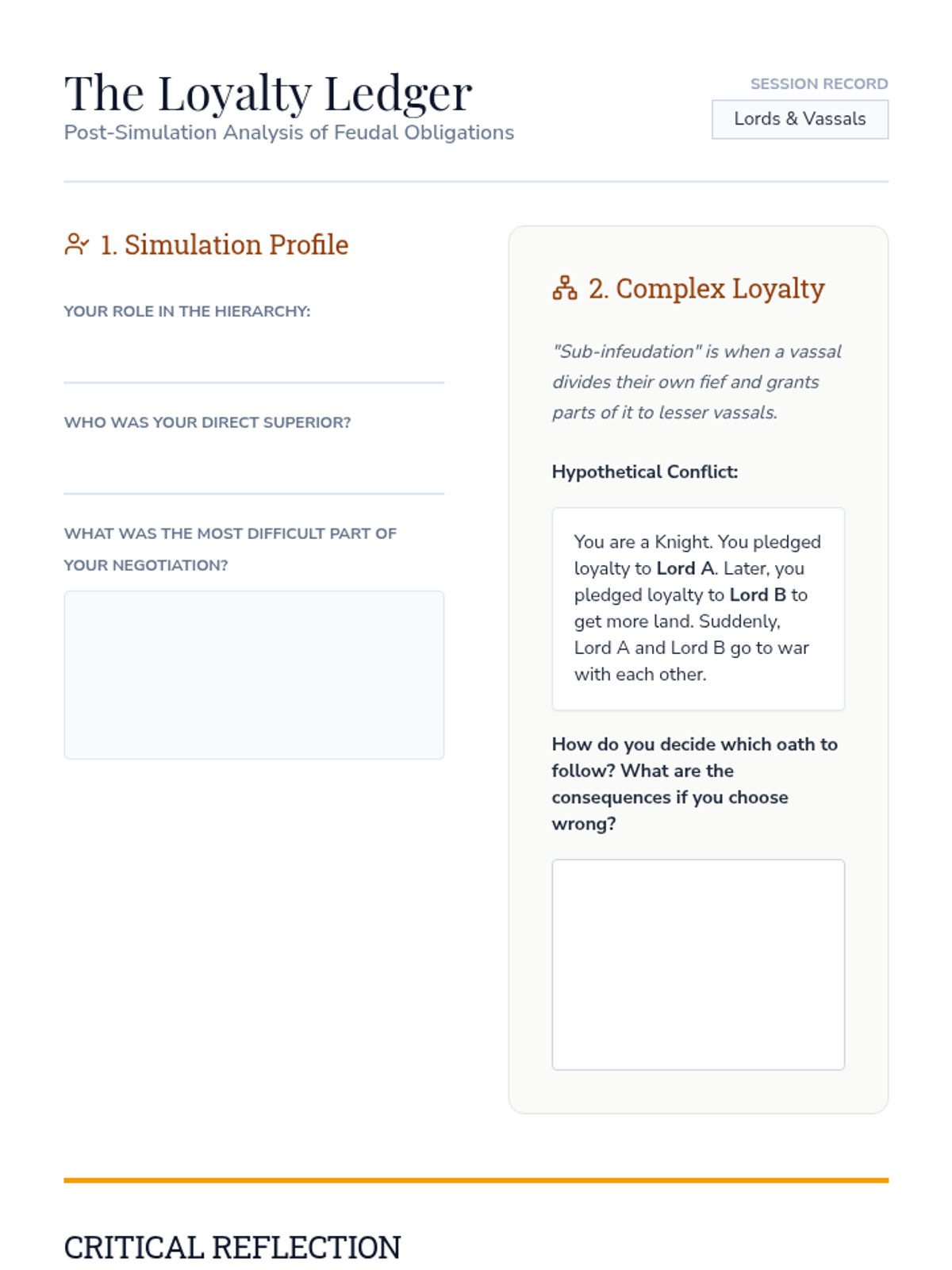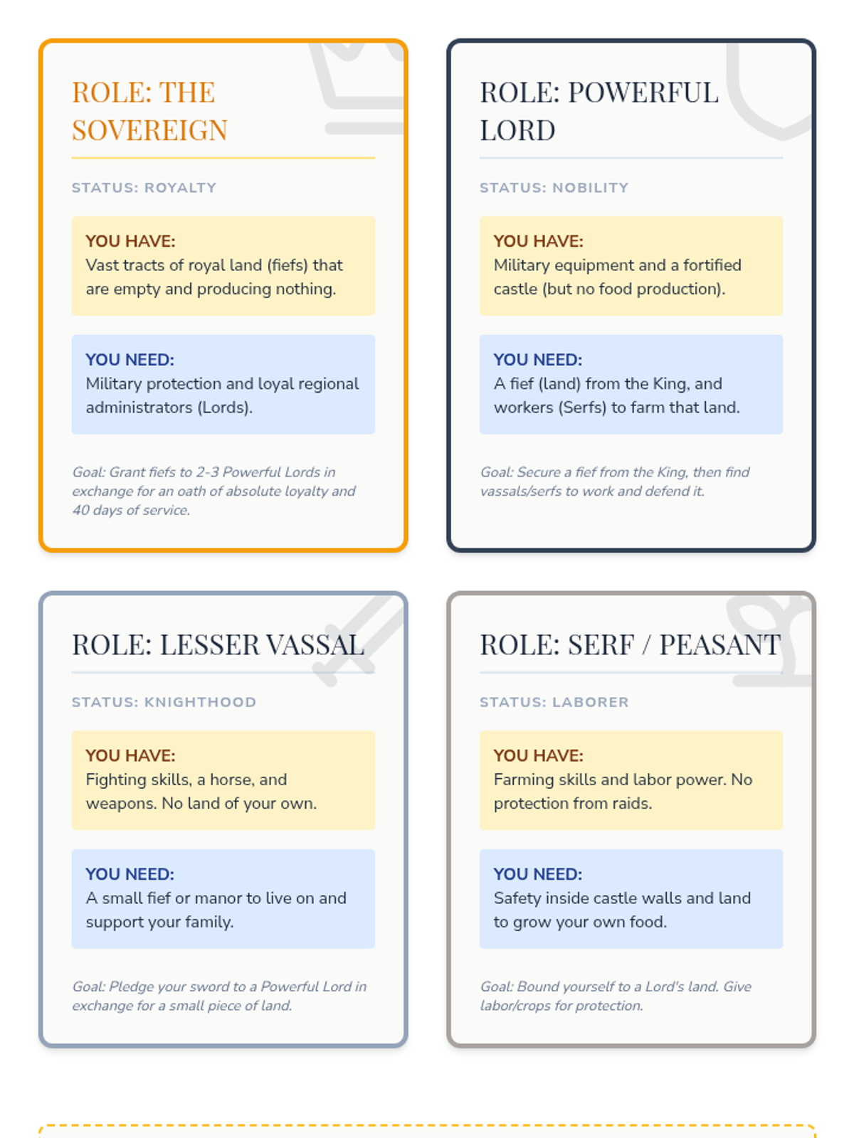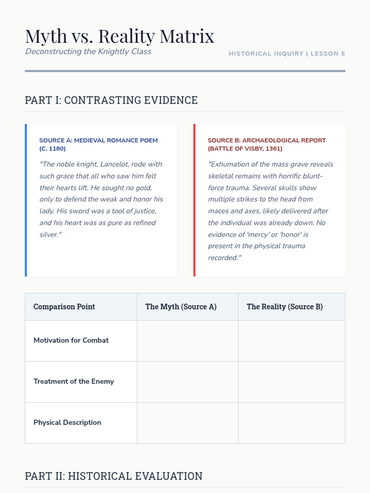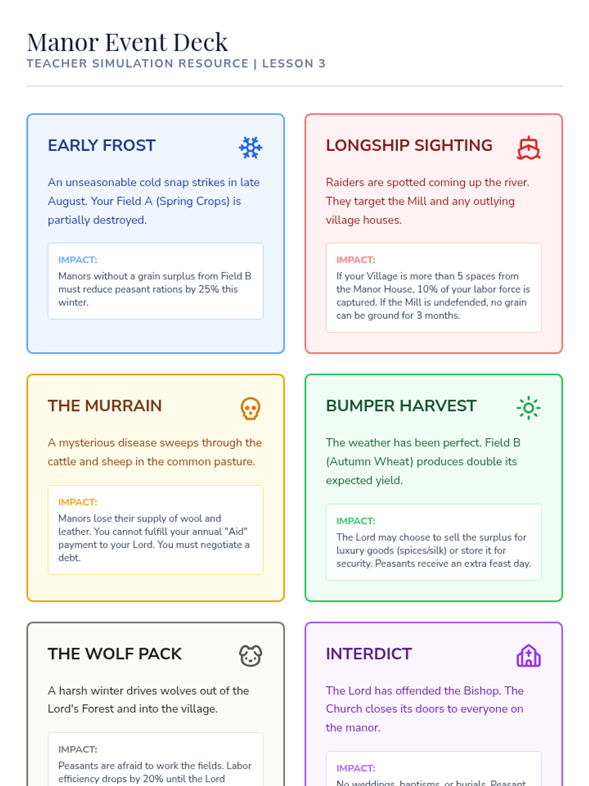 This sequence immerses students in the medieval world to analyze the rise of feudalism, the mechanics of manorialism, and the overarching power of the Church. Students will engage in simulations and source analysis to evaluate the balance between stability and oppression in the Middle Ages.