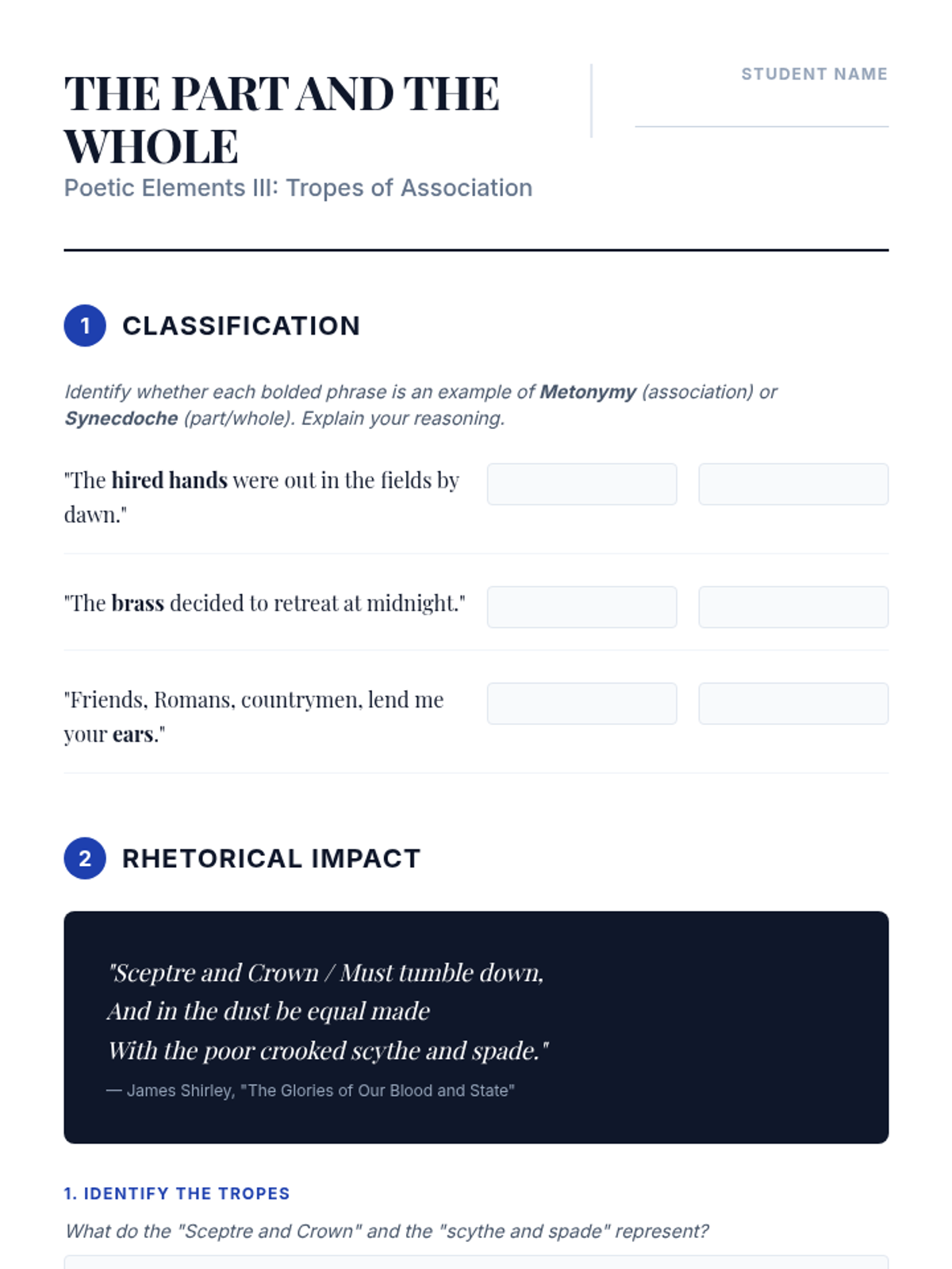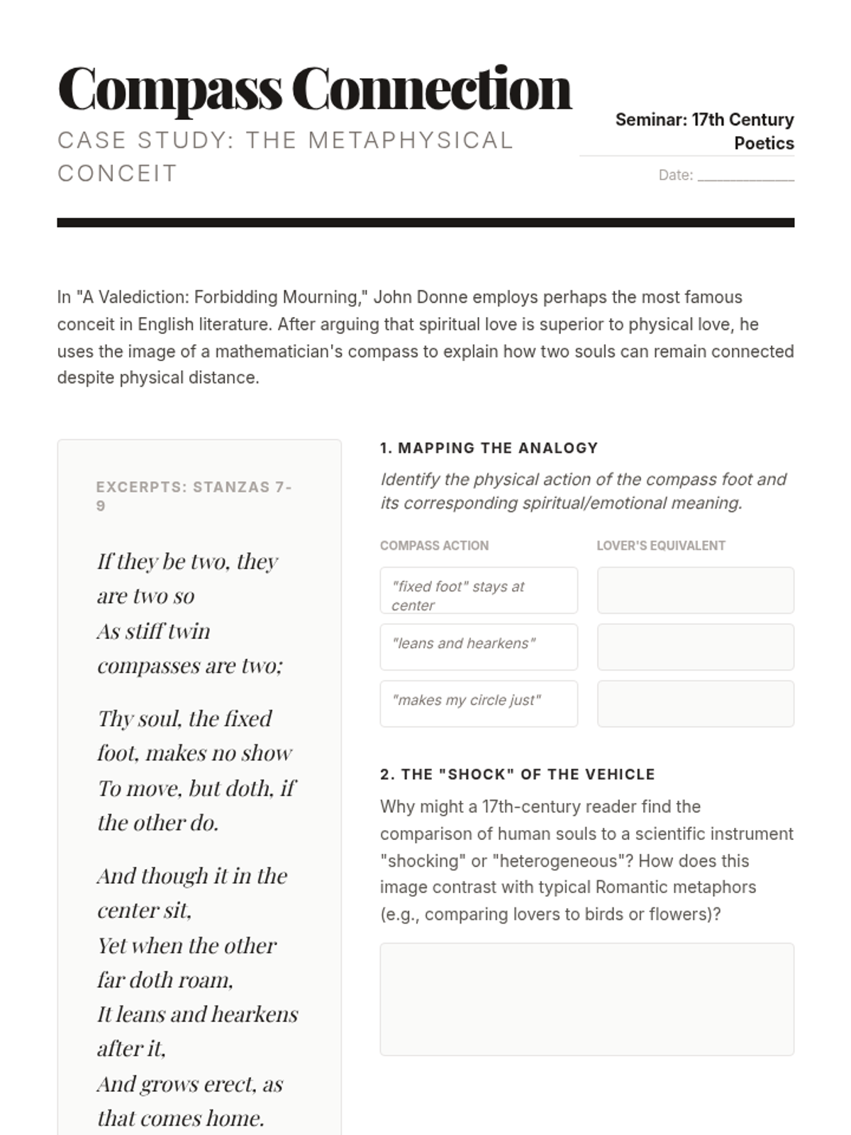 An advanced exploration of figurative language in poetry for undergraduate students, focusing on the cognitive and structural functions of metaphor, conceit, metonymy, and allusion. Students move from basic identification to deep rhetorical and ontological analysis of poetic imagery.