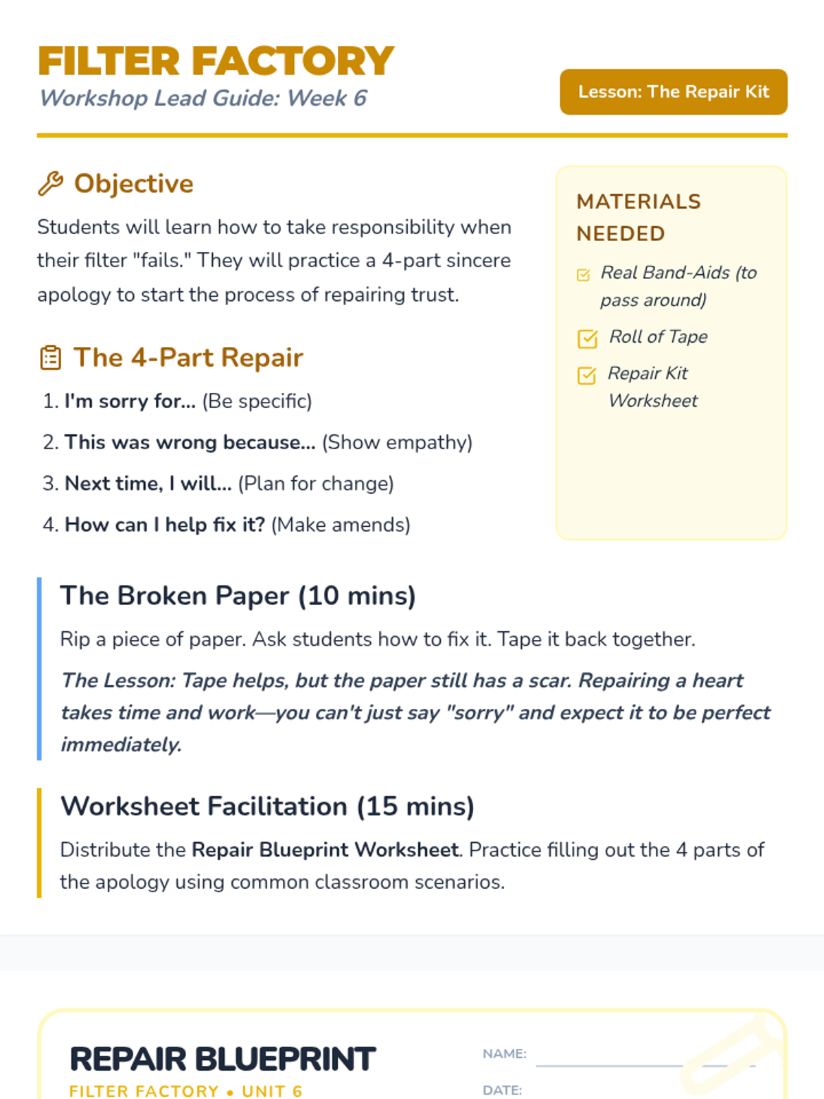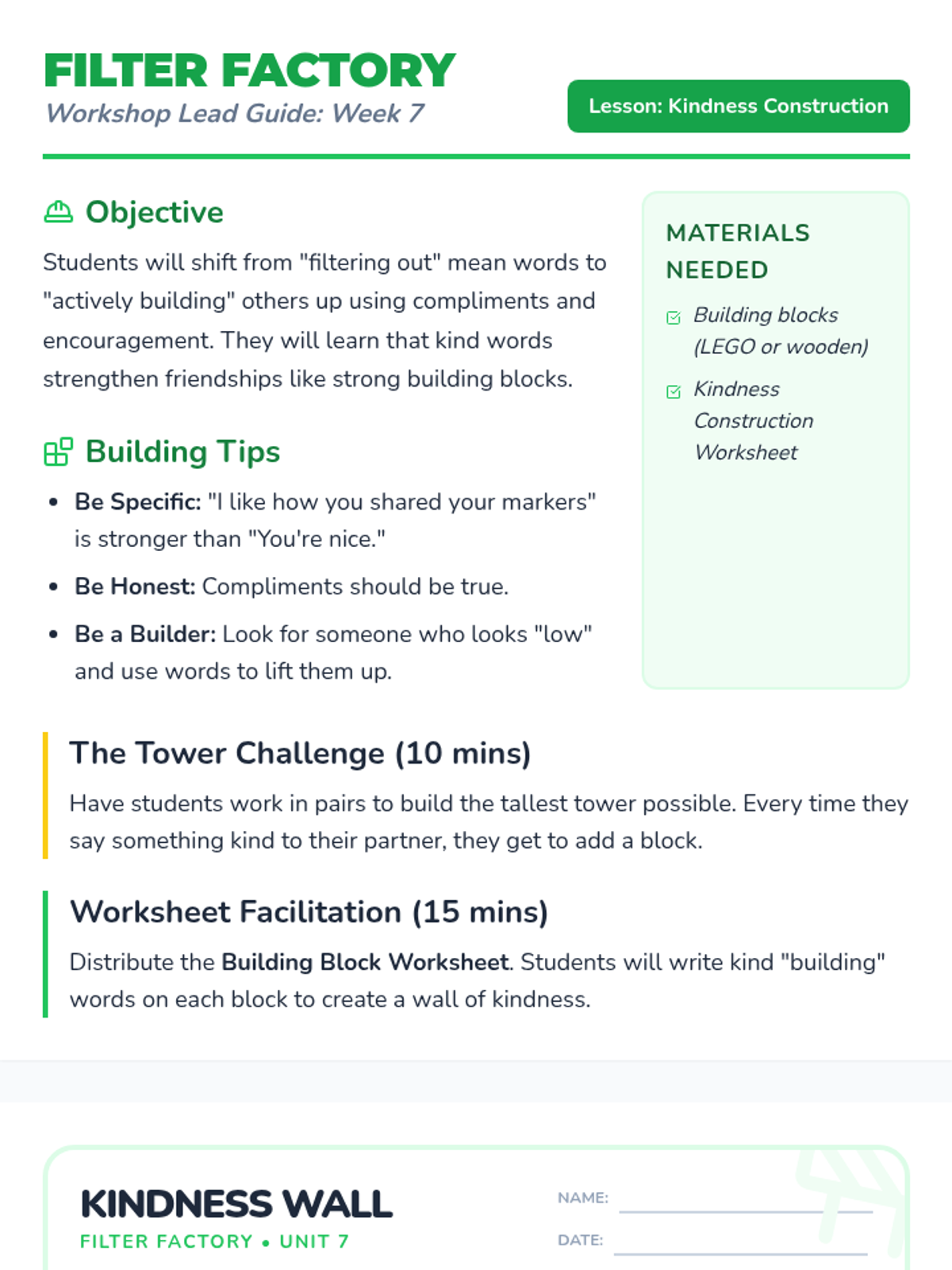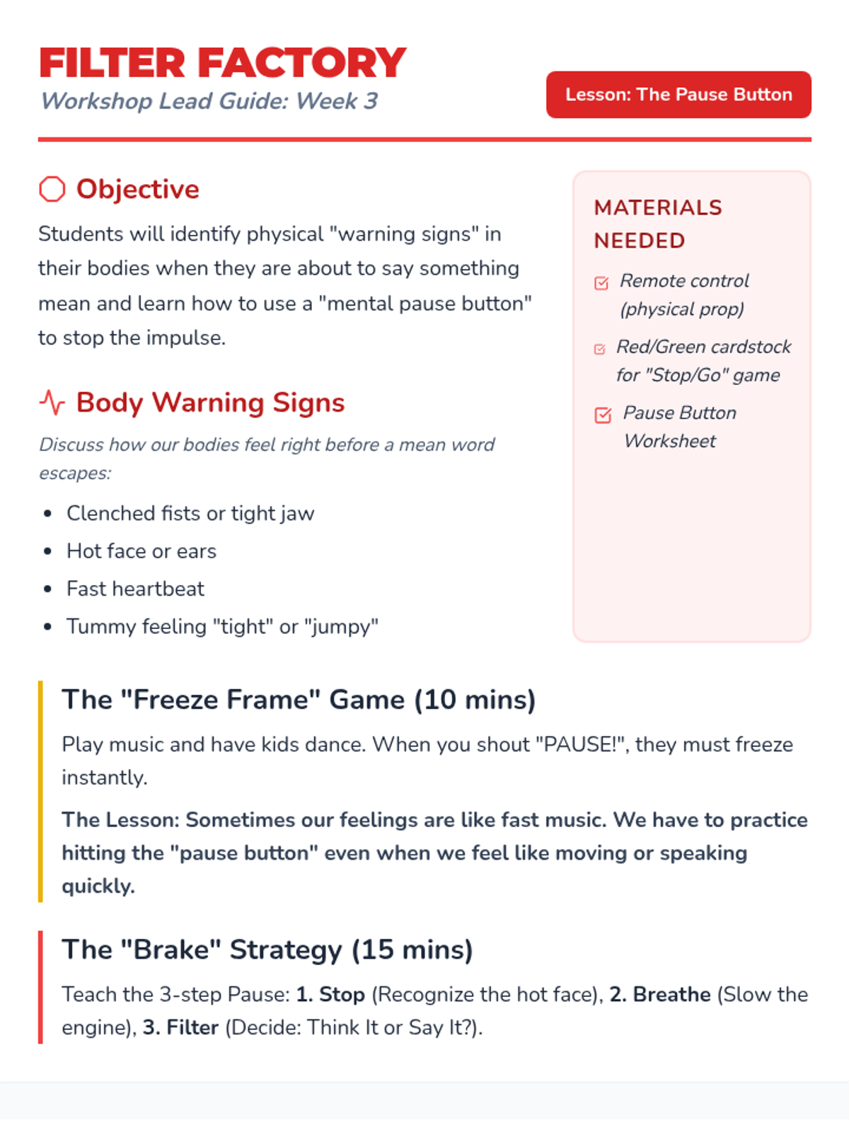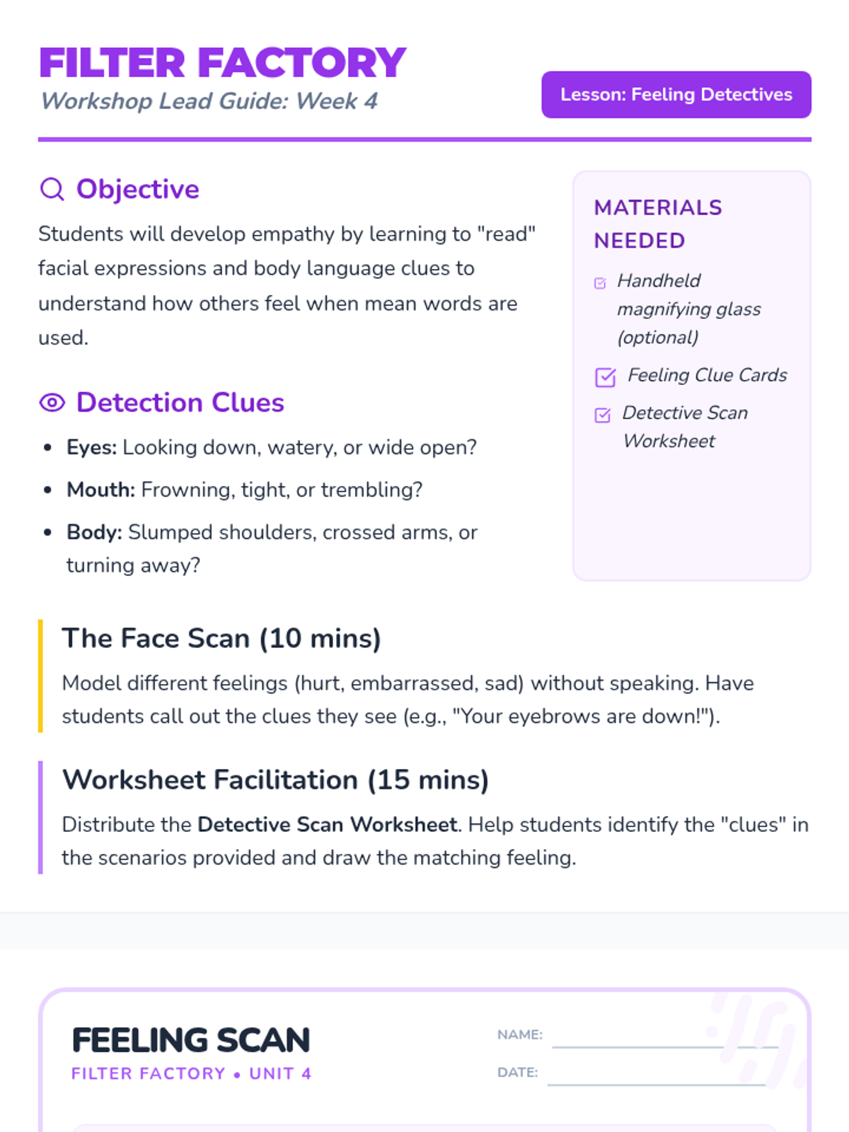 An 8-week social skills group curriculum for 2nd graders focusing on the impact of mean words, impulse control, and empathy. Students learn to use a 'social filter' to build positive relationships and understand the consequences of their communication choices.