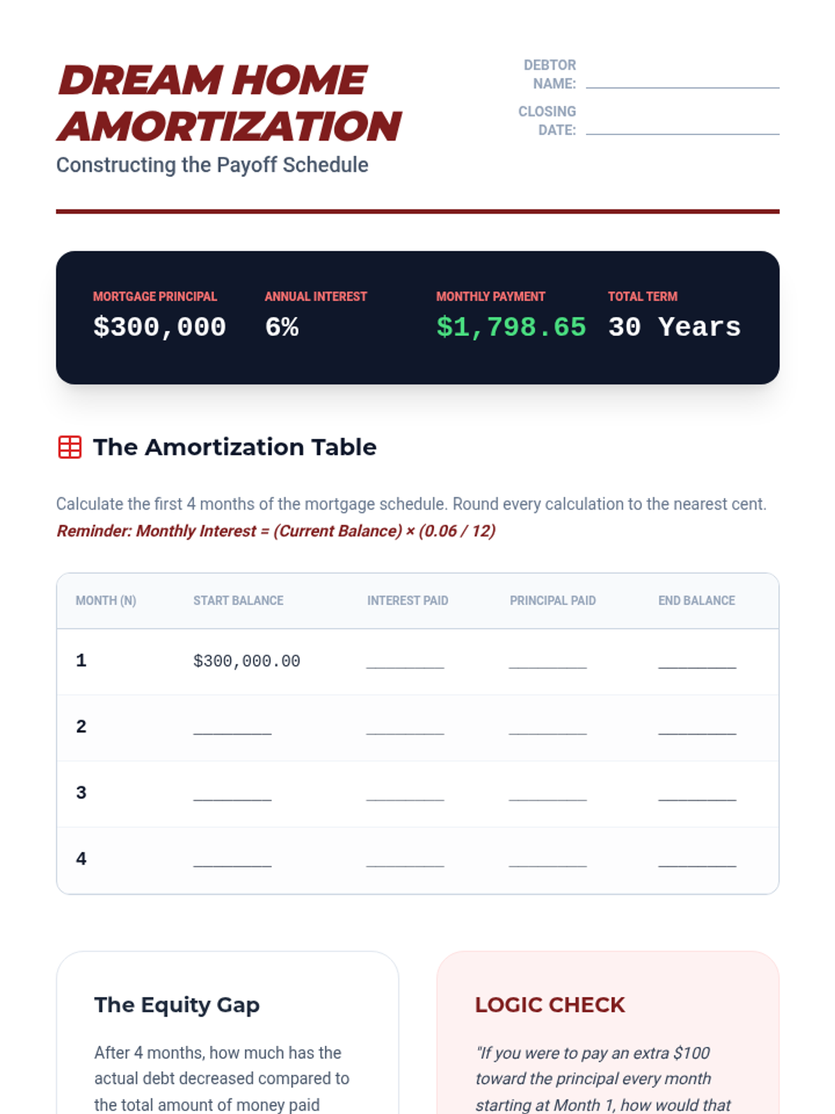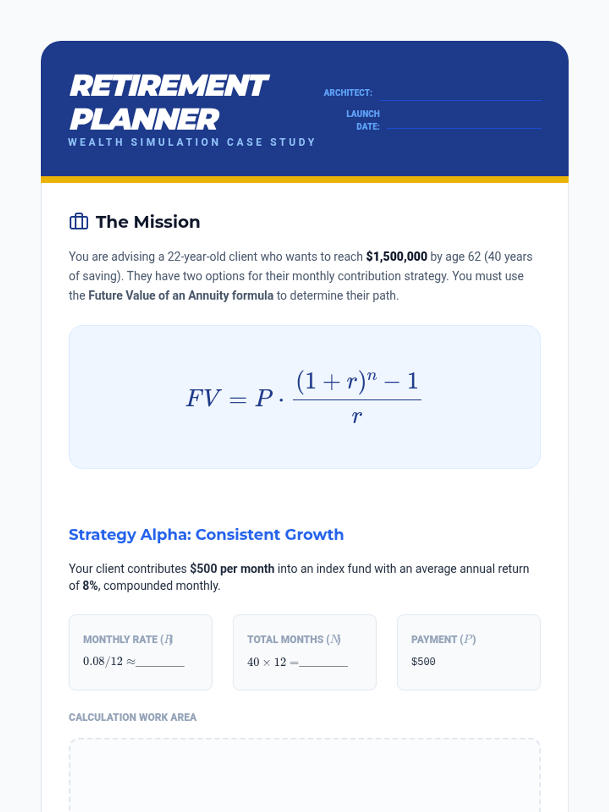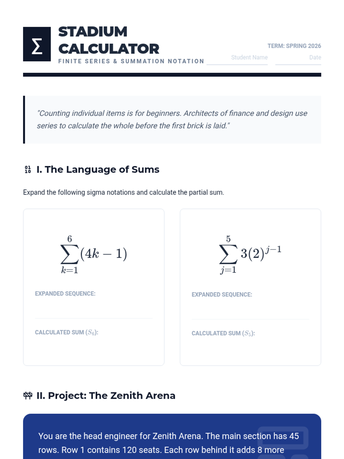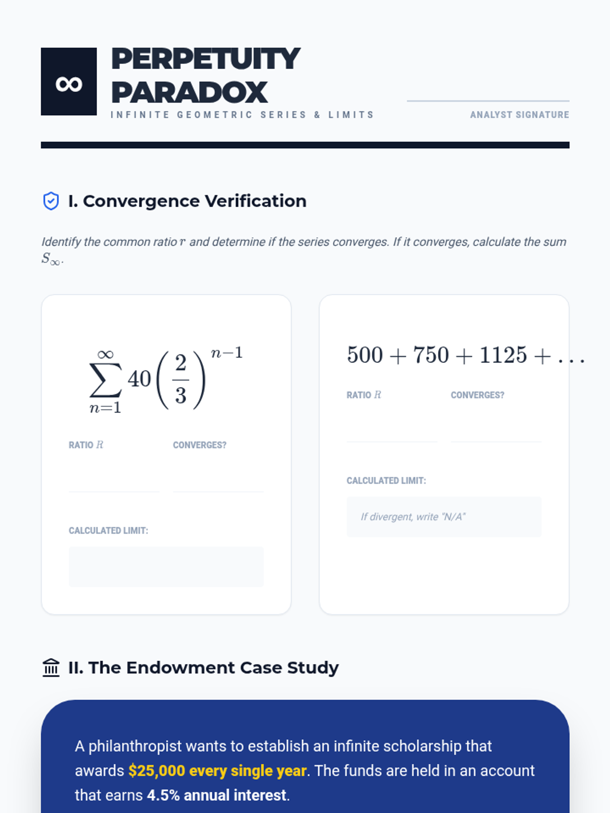 Students bridge algebraic functions and discrete mathematics by modeling financial scenarios like simple and compound interest, annuities, and loan amortization using arithmetic and geometric sequences.