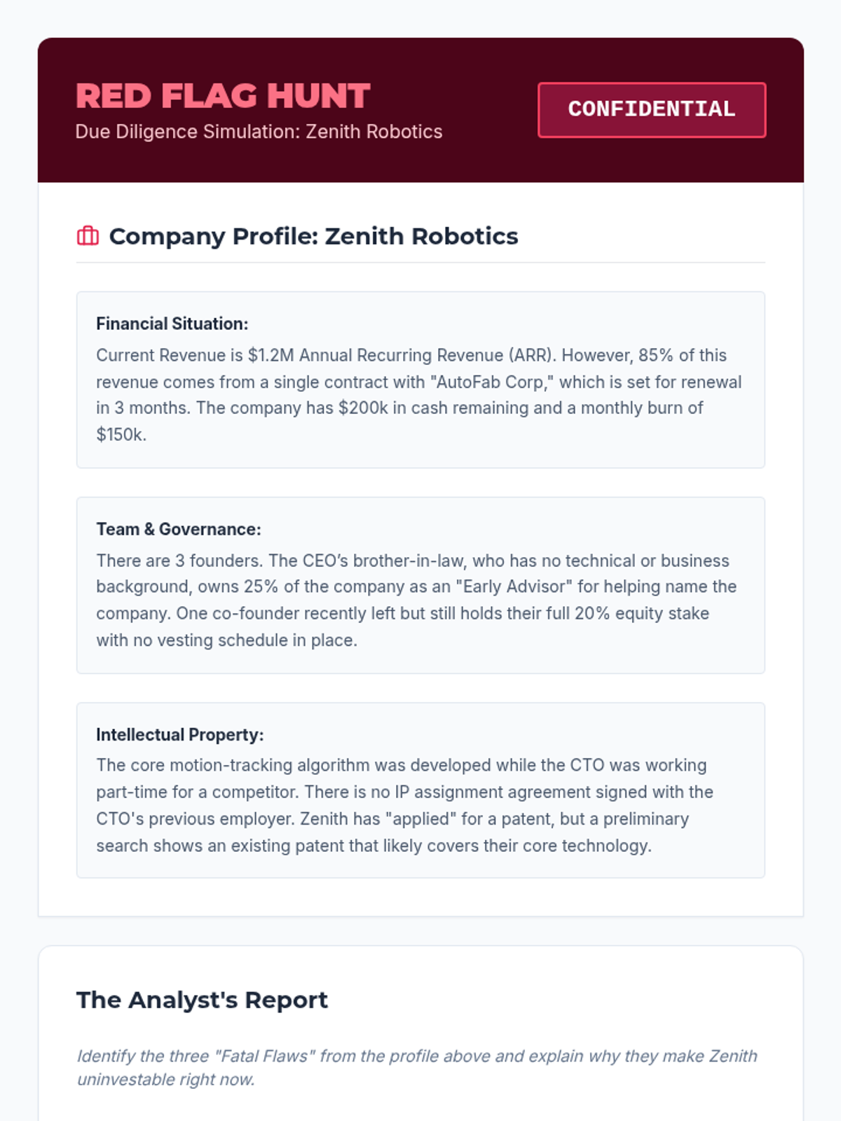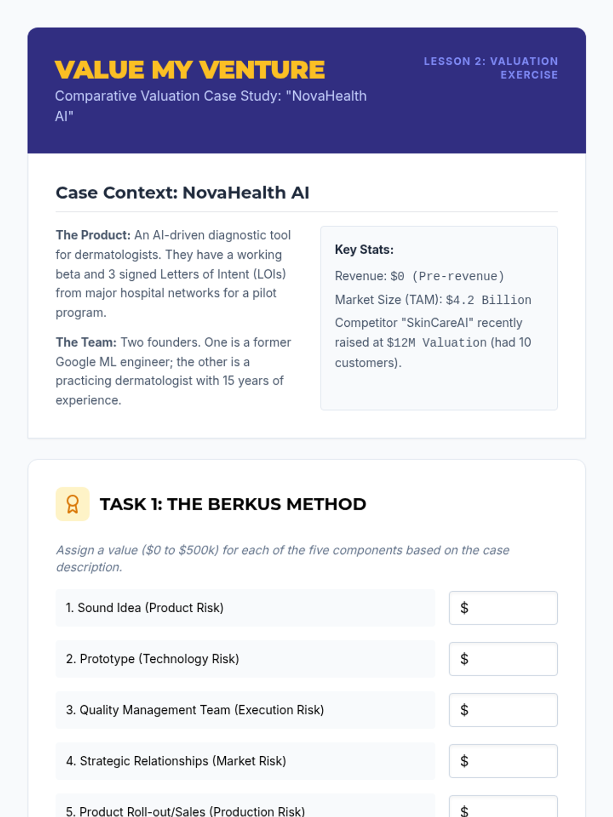 This project-based sequence teaches undergraduate students how to value early-stage companies and prepare financial due diligence materials, focusing on the interface between internal operations and external validation. Students will master unit economics, explore diverse valuation methodologies, and learn to strategically plan capital raises through milestone-based 'use of funds' planning.