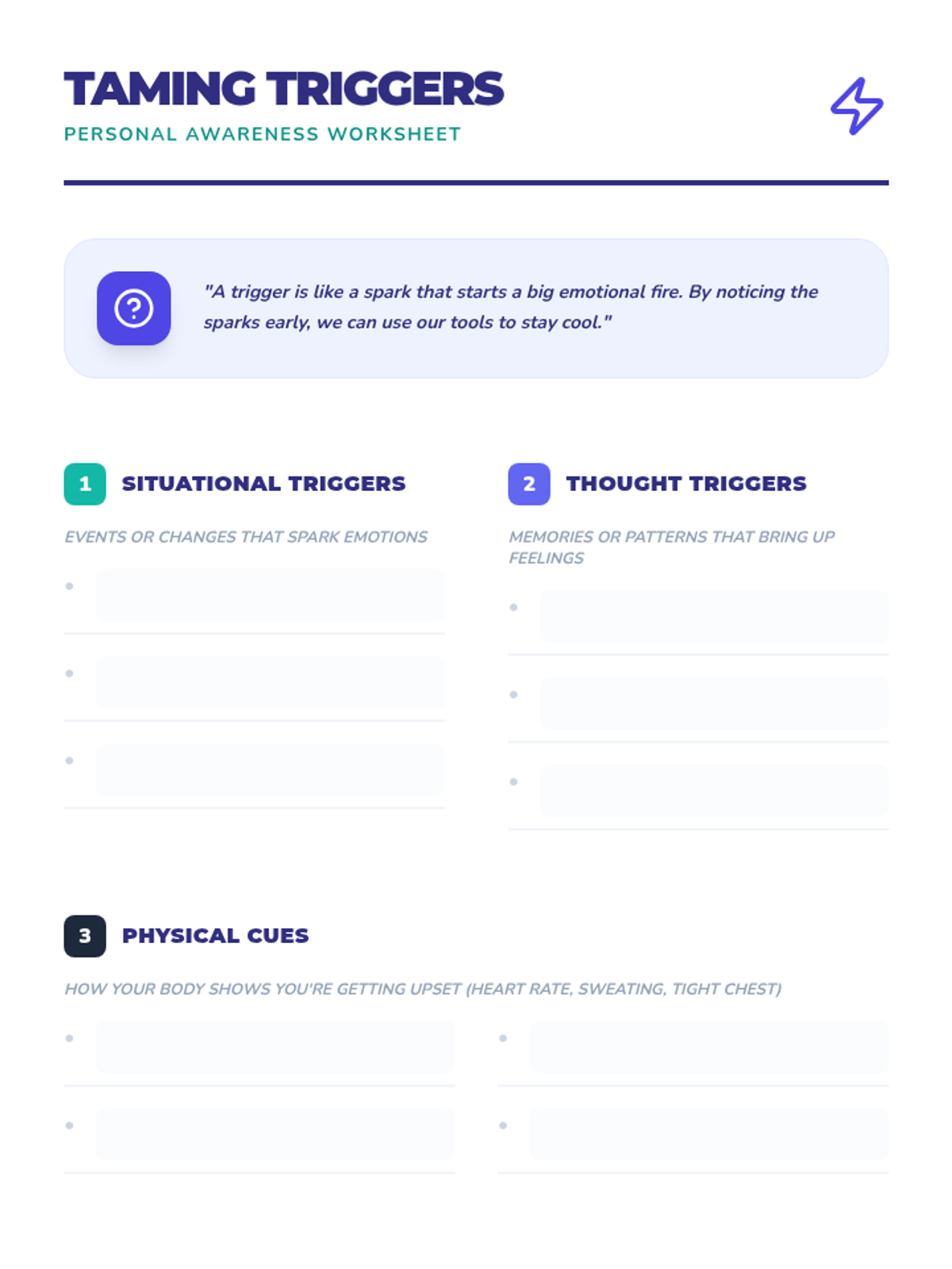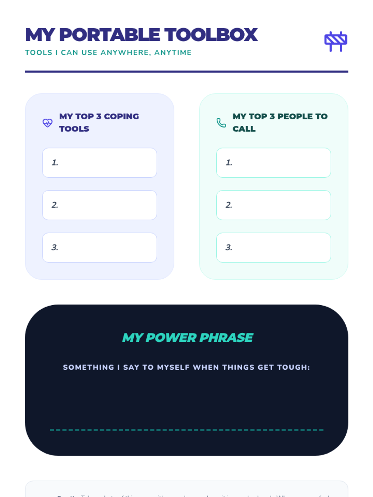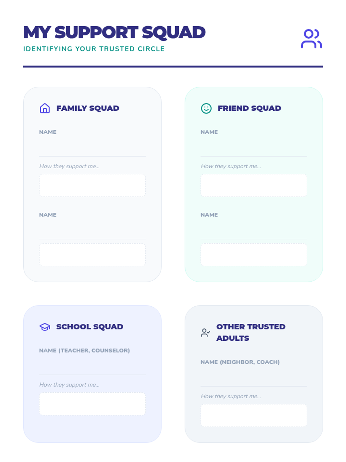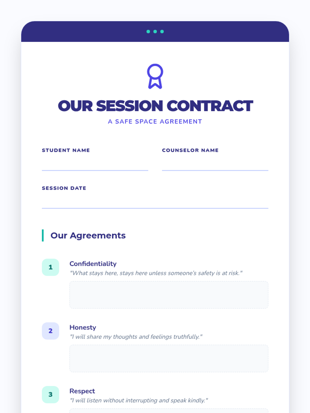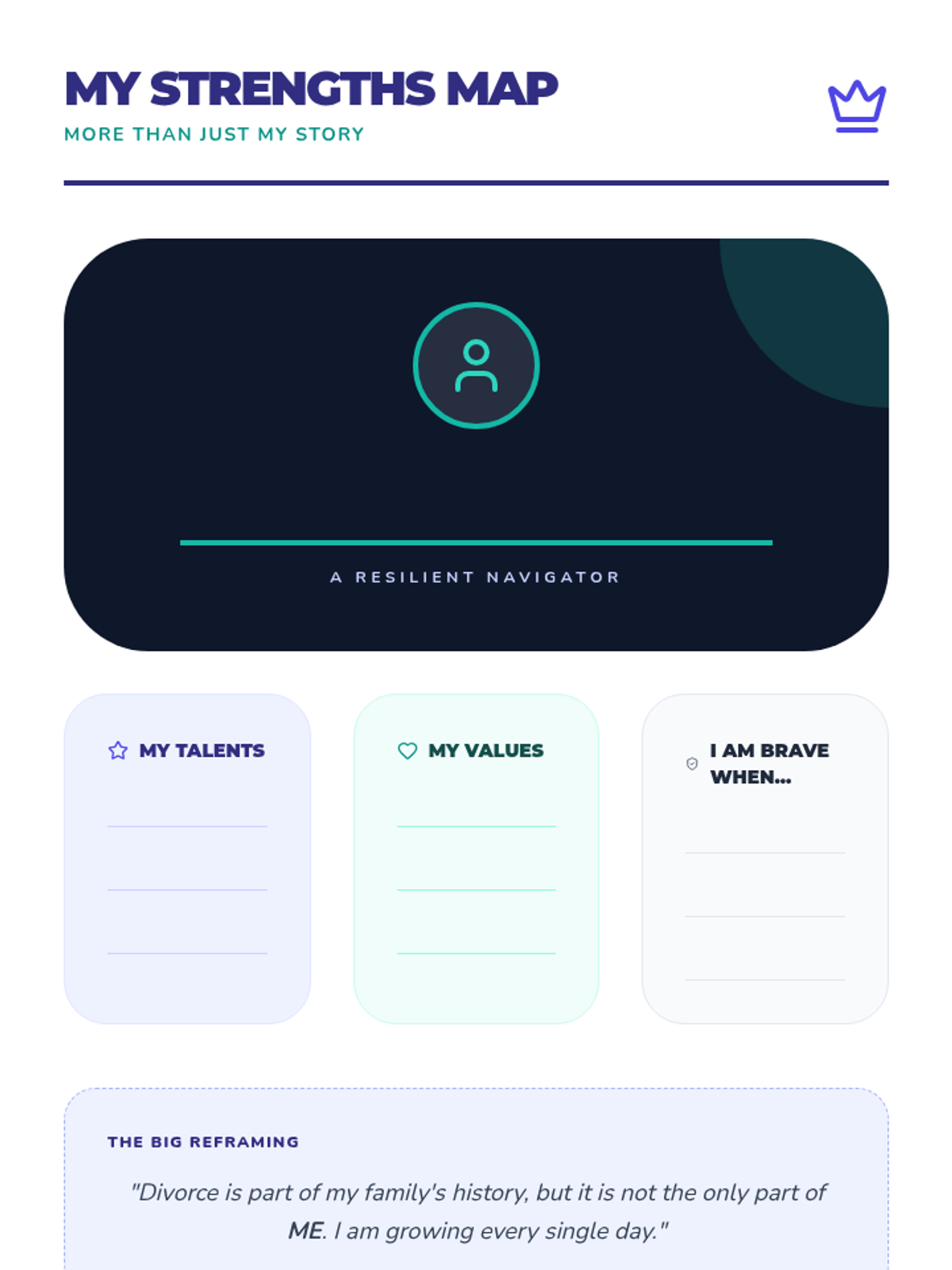 A series of three interactive counseling sessions for middle and high school students, focusing on self-discovery, emotional regulation, and future planning. Using a 'Blueprint' aesthetic, students engage in hands-on activities to map out their internal identities, manage external stressors, and construct actionable goals.