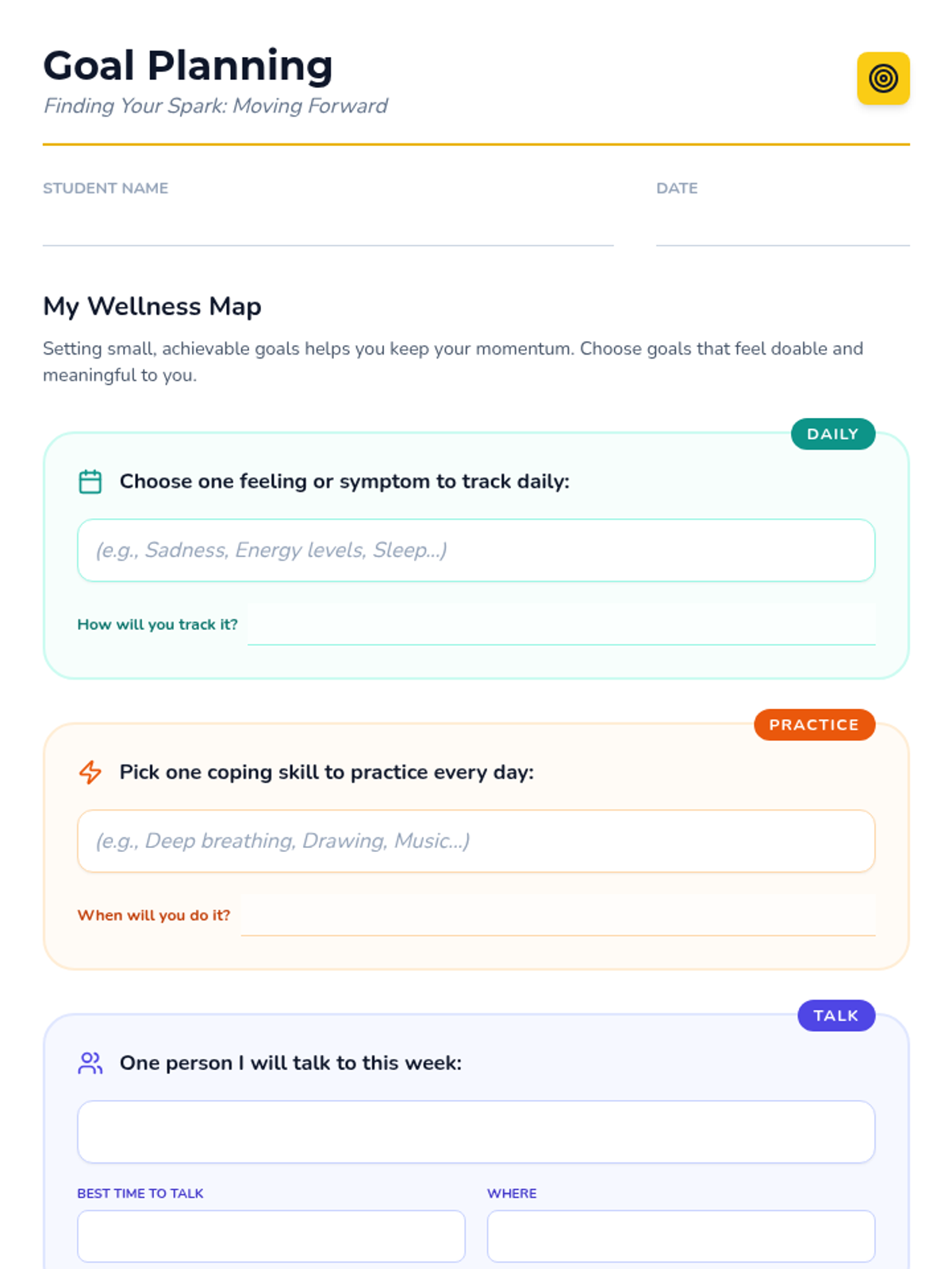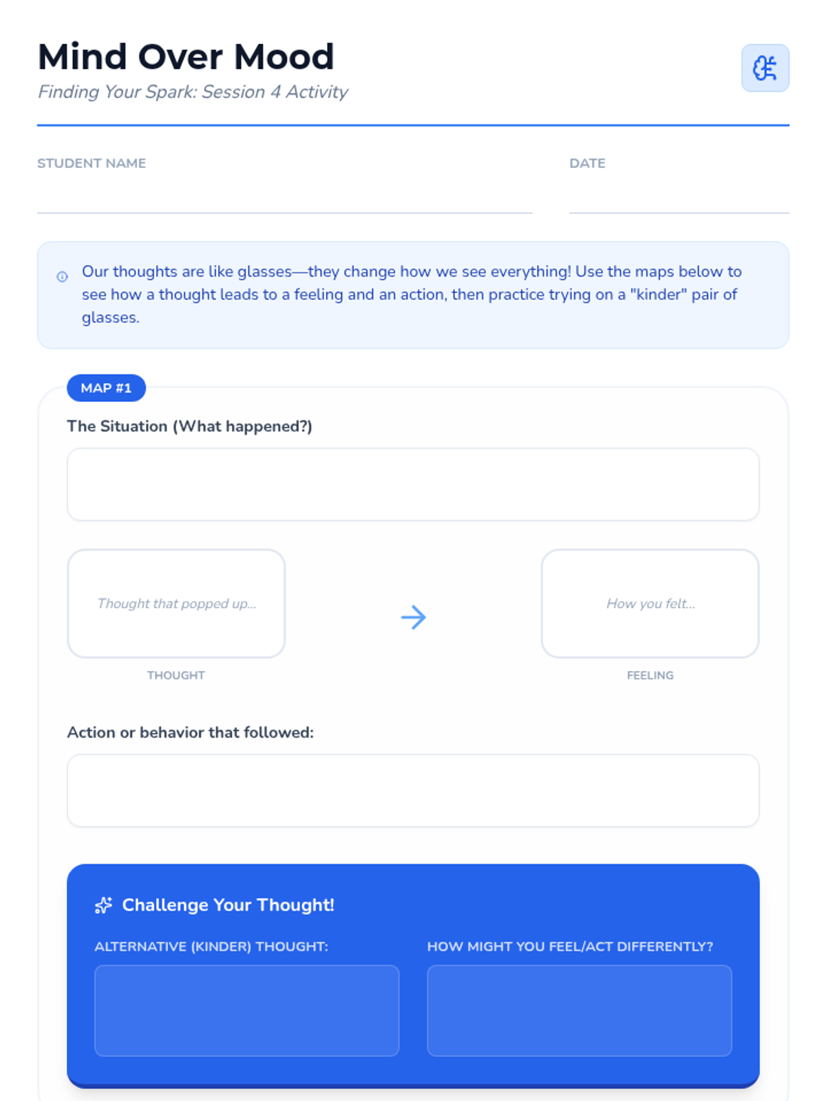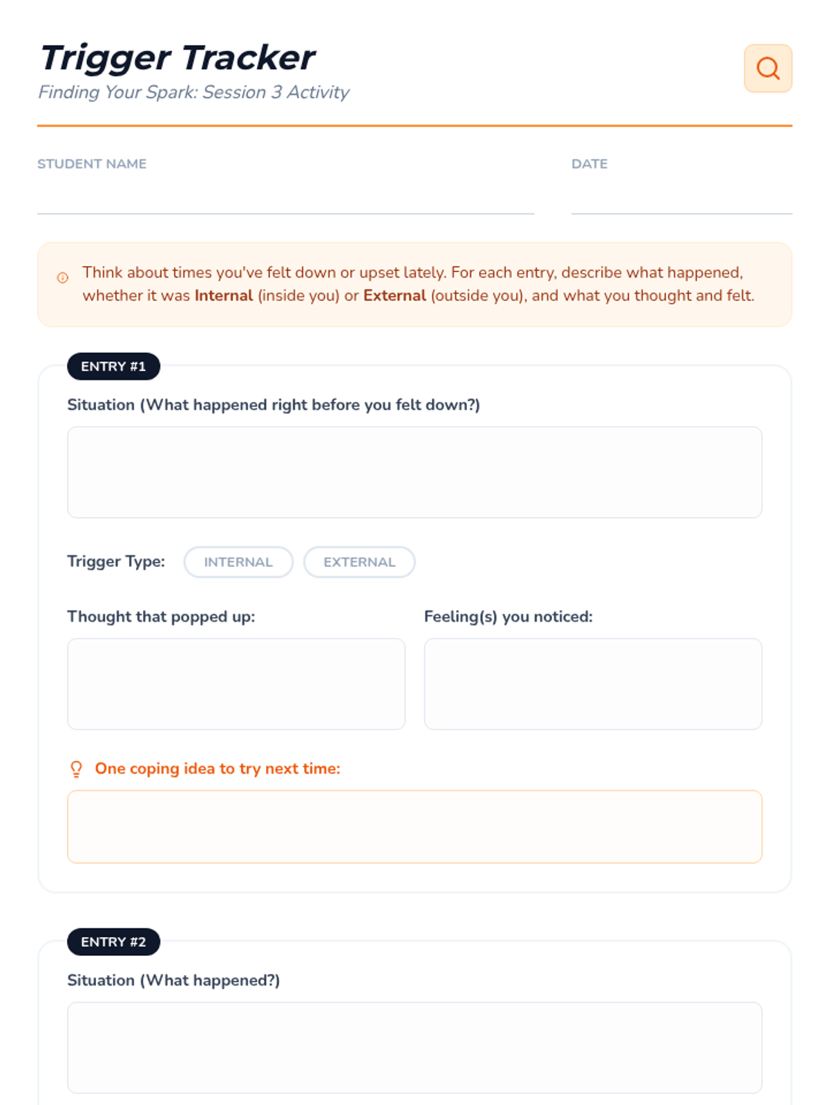 A 6-session counseling group designed to help students identify triggers, understand physical symptoms of anxiety, and build a personalized toolkit of coping strategies through a 'Calm Explorer' theme.
