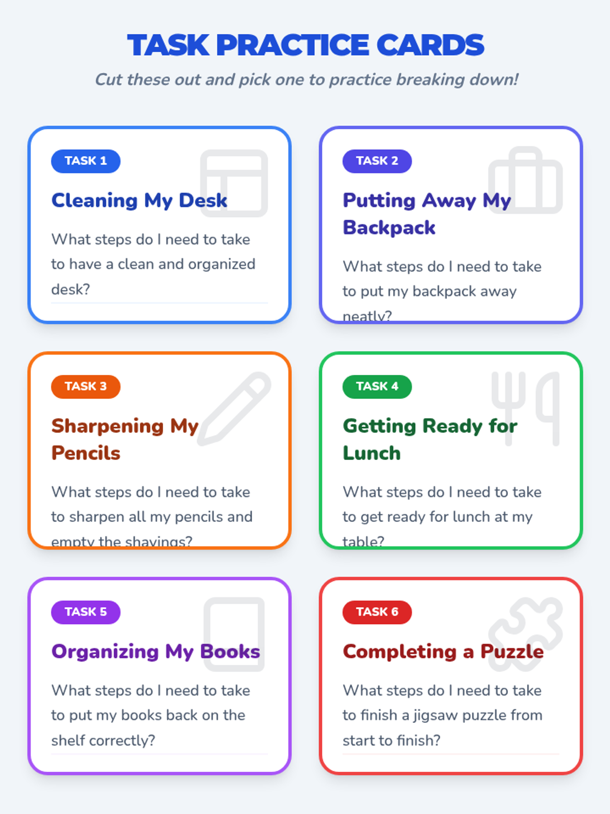 A collection of strengths-based resources for neurodivergent children and their families. This sequence provides neuroaffirming tools for emotional regulation, self-advocacy, and executive functioning, moving from compliance-based models to supportive and empowering frameworks.
