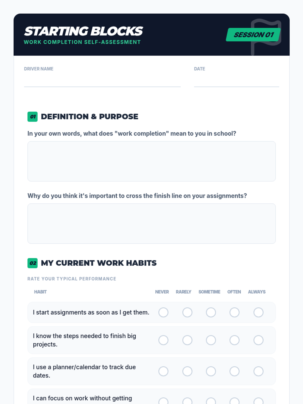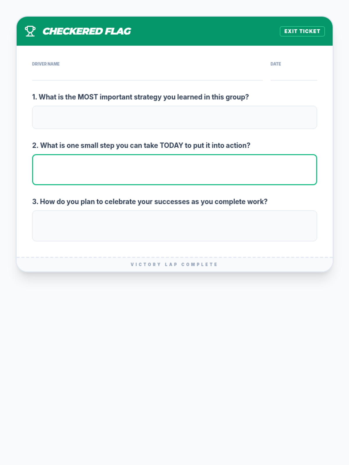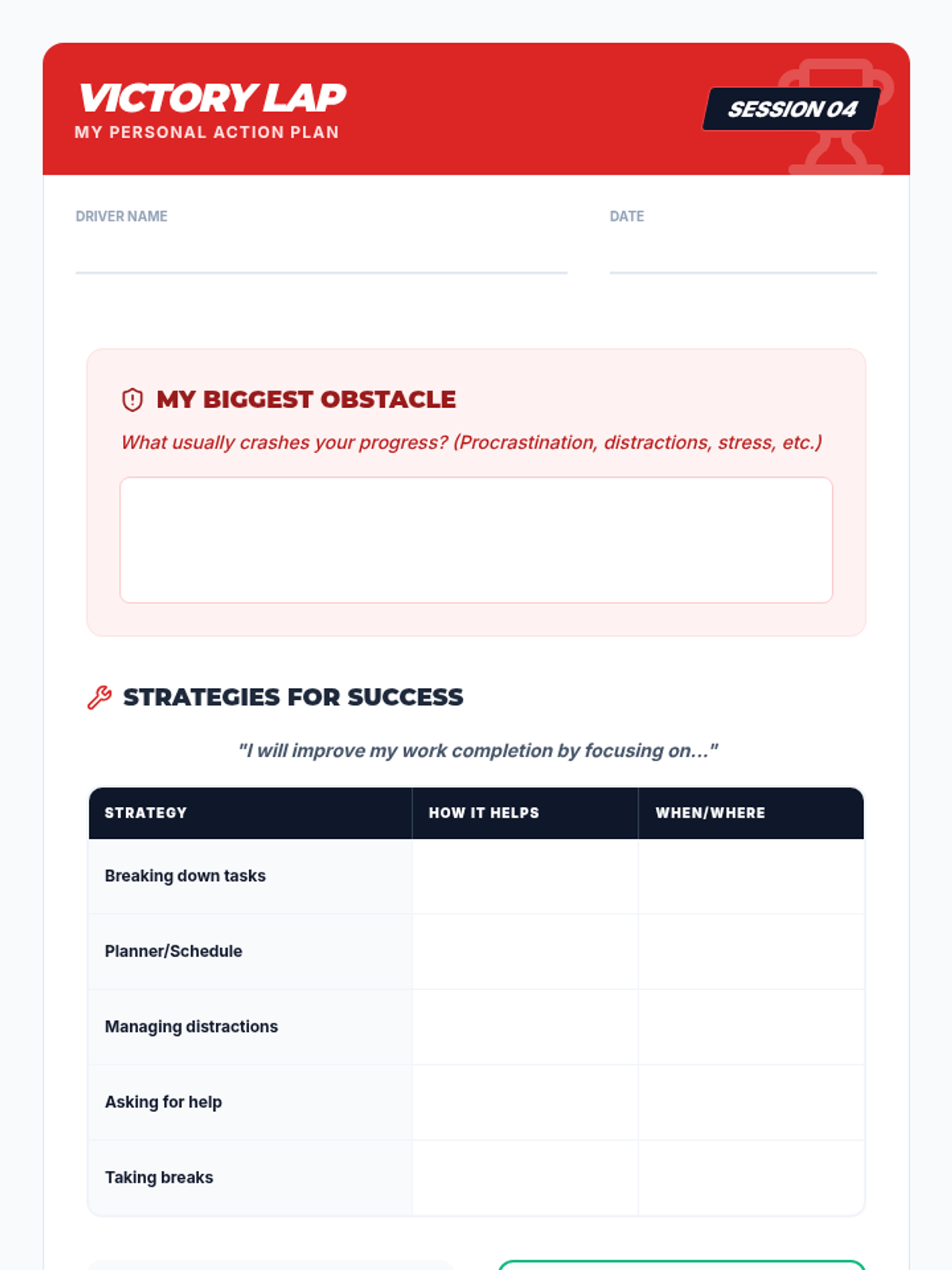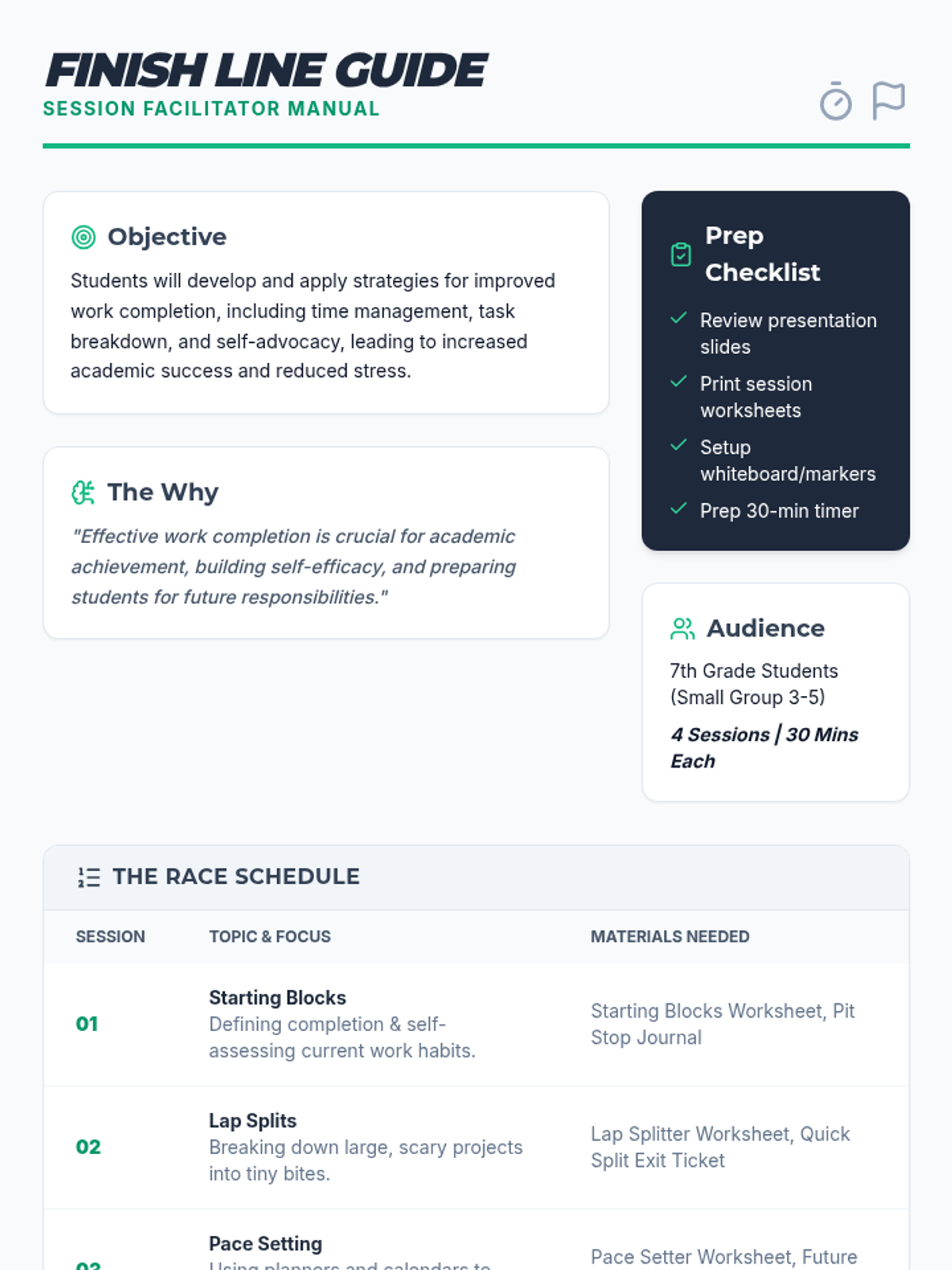 A 4-session small group counseling unit designed for 7th-grade students to improve work completion, organizational skills, and academic mindset through a racing-inspired theme.