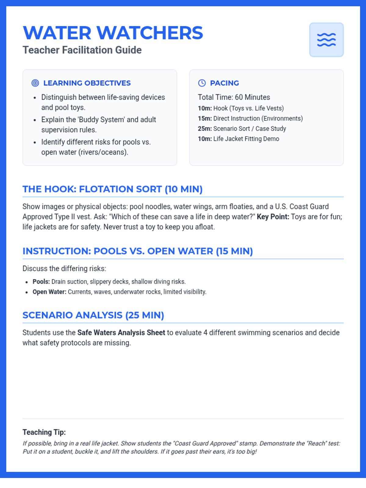 This sequence equips fifth-grade students with critical survival skills by exploring fire prevention and water safety. Students learn hazard identification, escape planning, physical response techniques, and water safety protocols through active simulations and project-based learning.