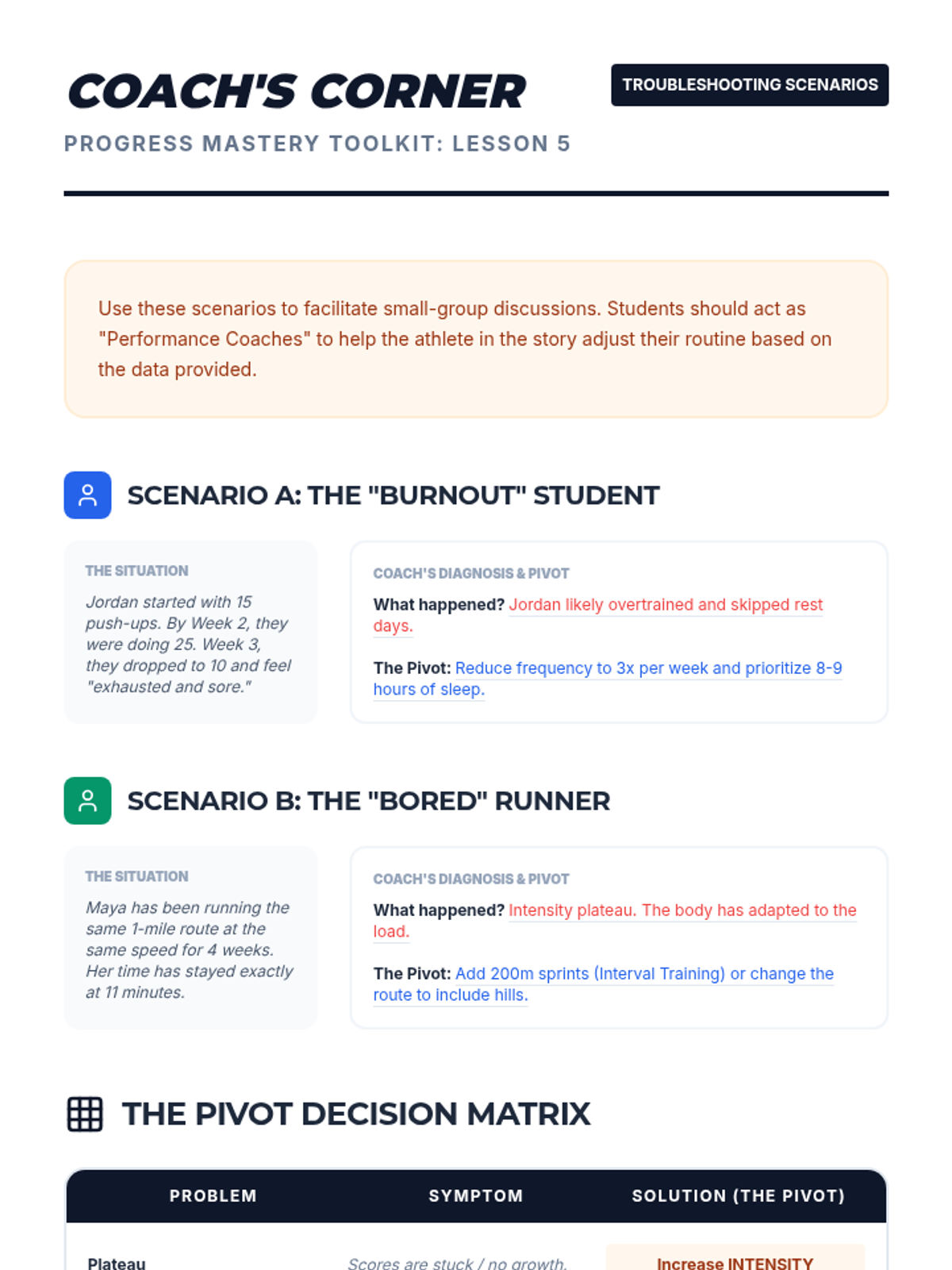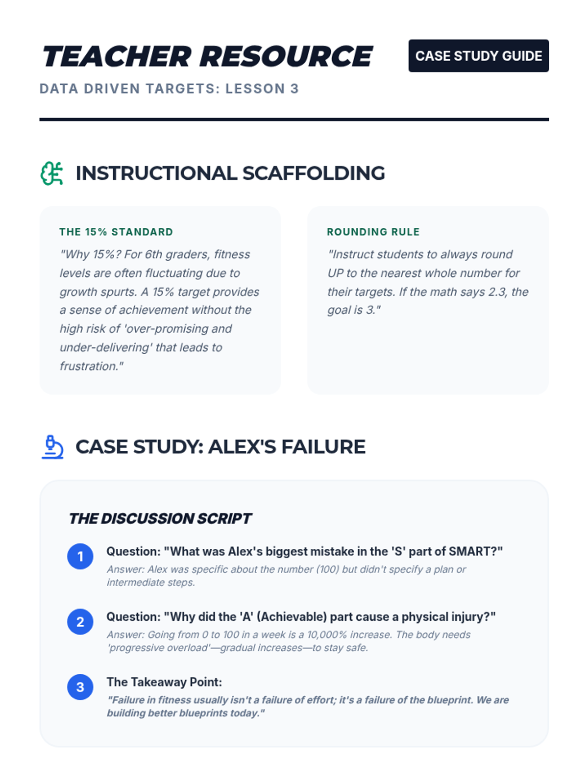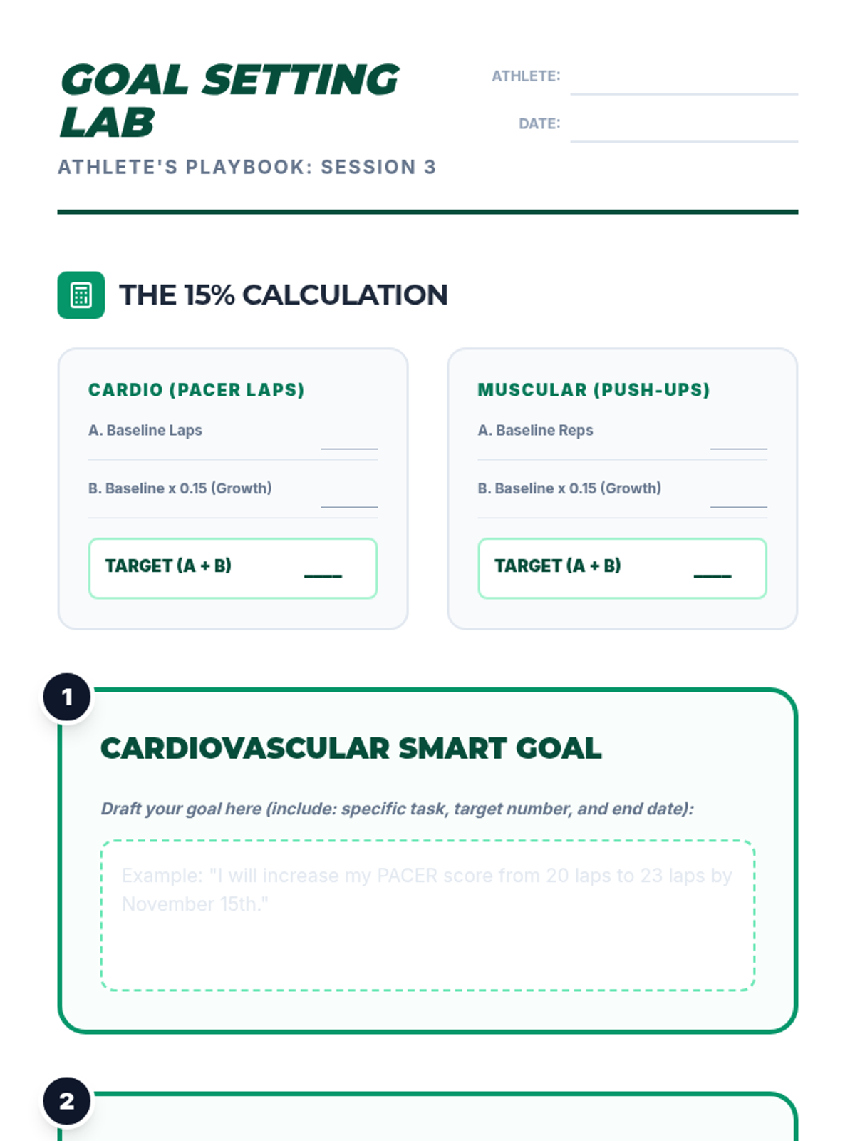 Students learn to take ownership of their physical health by developing personalized fitness plans rooted in data and strategic planning. The journey begins with mastering the SMART goal framework and baseline assessments, leading to the creation of actionable weekly plans and progress monitoring strategies.