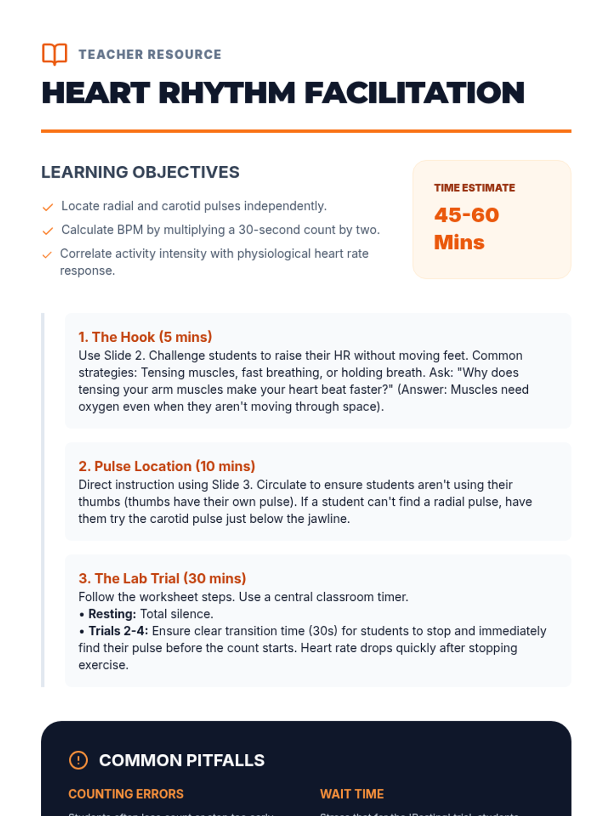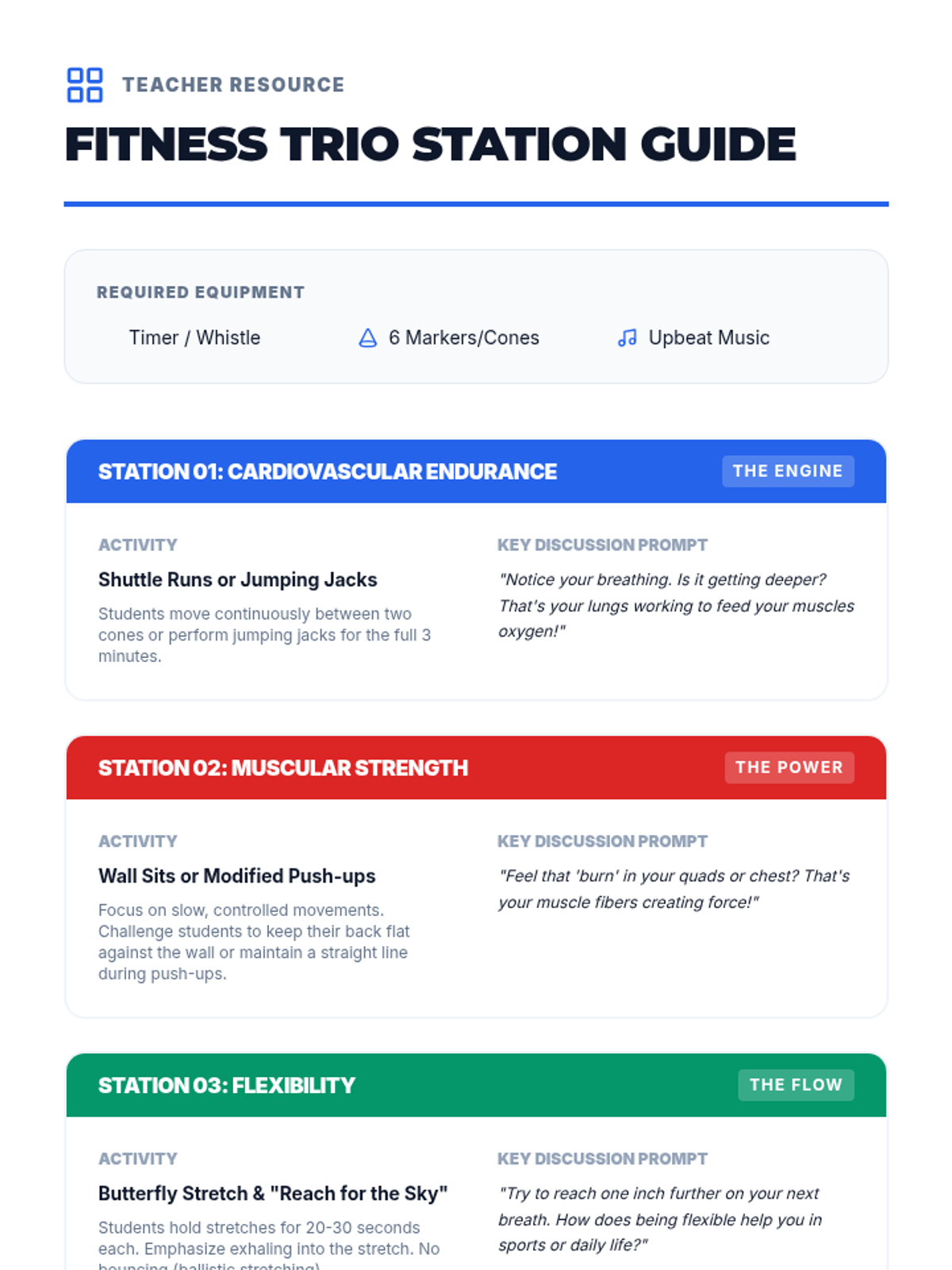 This sequence guides 5th-grade students through the physiology of exercise, the components of fitness, and the creation of personalized SMART goals to build sustainable physical activity habits. Students investigate their own physiological responses and design a one-week activity plan.