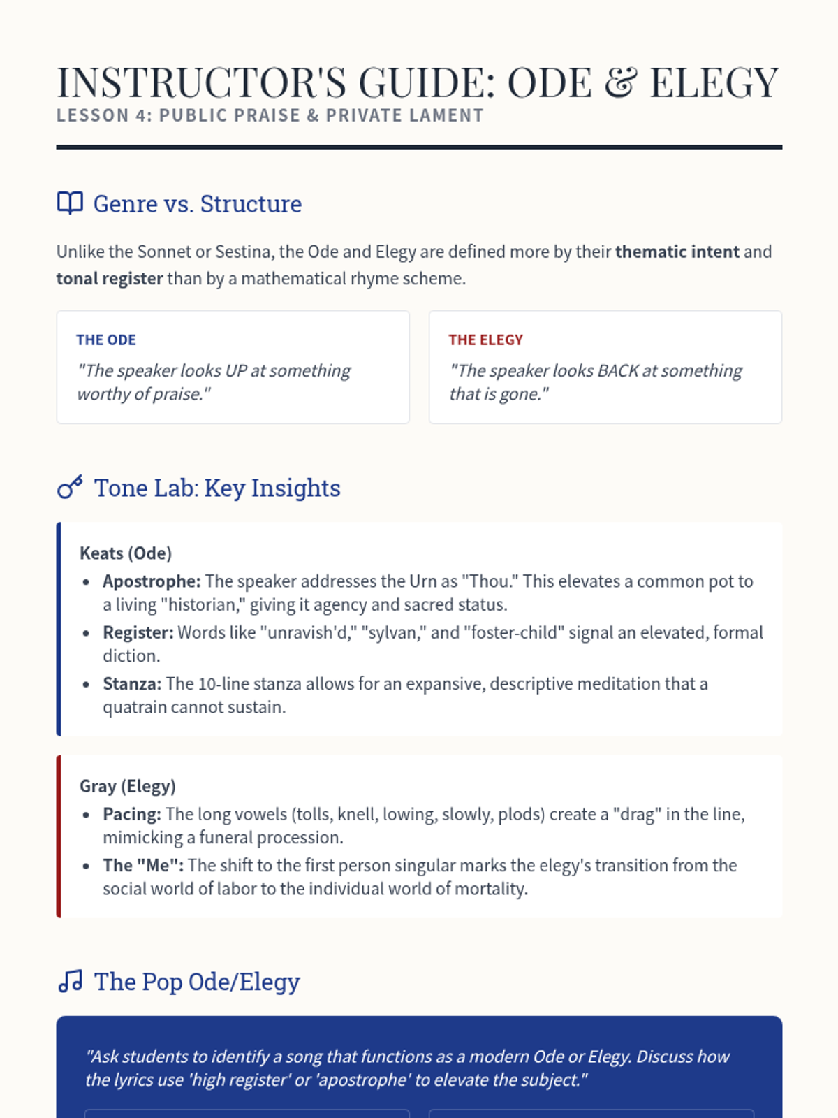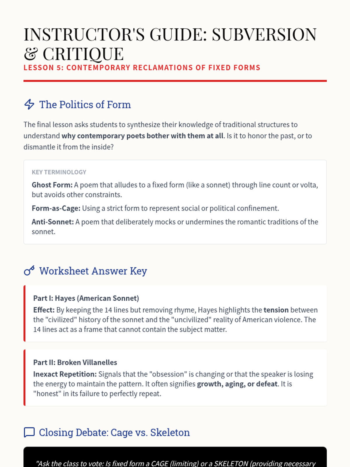 An undergraduate-level exploration of fixed poetic forms, focusing on how structural constraints like rhyme, repetition, and stanzaic patterns shape logic, emotion, and narrative. Students analyze the evolution of the Sonnet, Villanelle, Sestina, Ode, and Elegy, eventually examining contemporary subversions of these traditions.