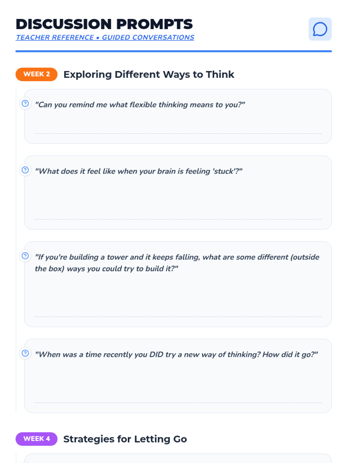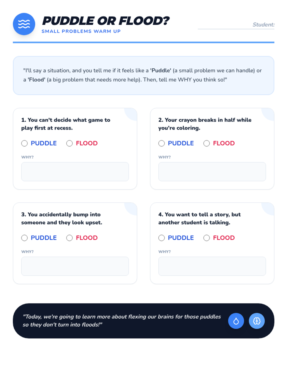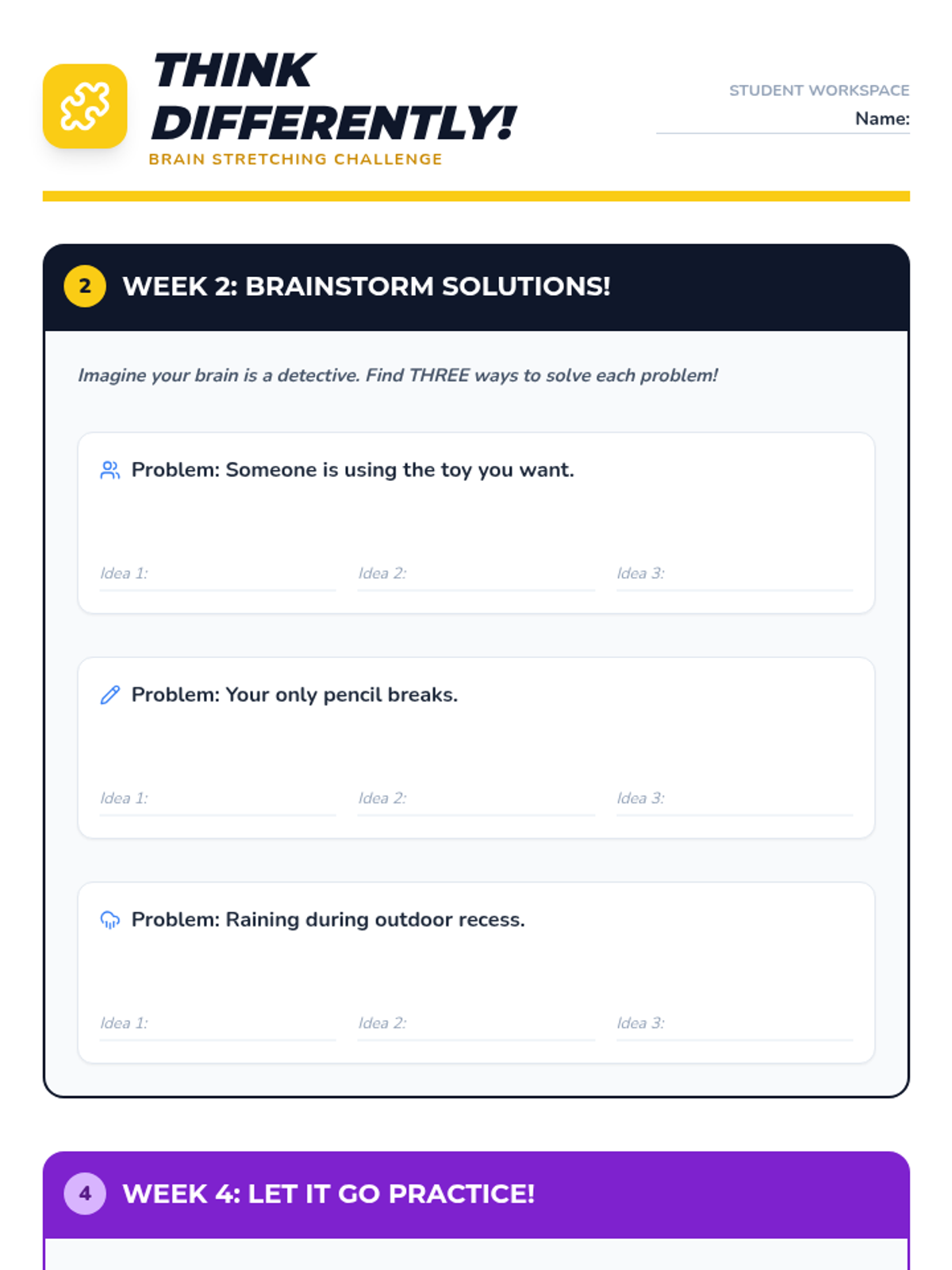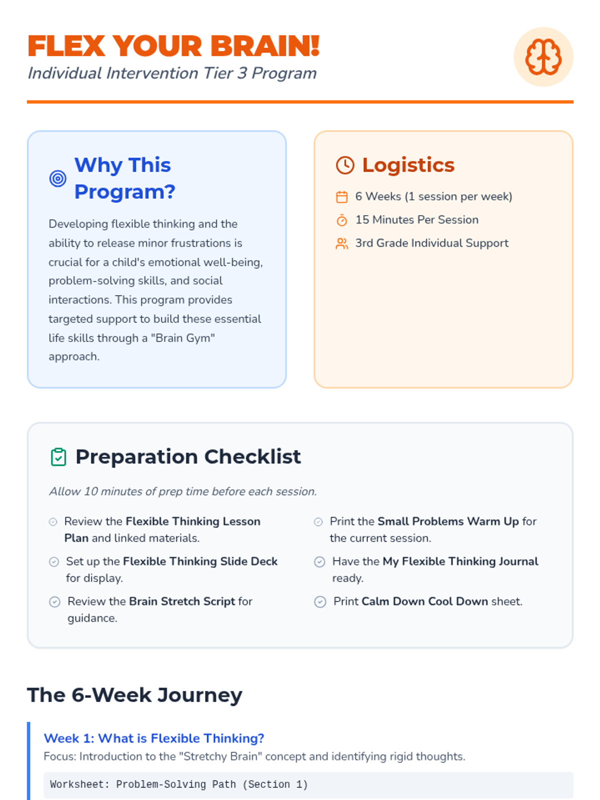 A 6-week individualized Tier 3 intervention program for 3rd-grade students to develop flexible thinking skills, distinguish between problem sizes, and practice self-regulation strategies to let go of minor frustrations.
