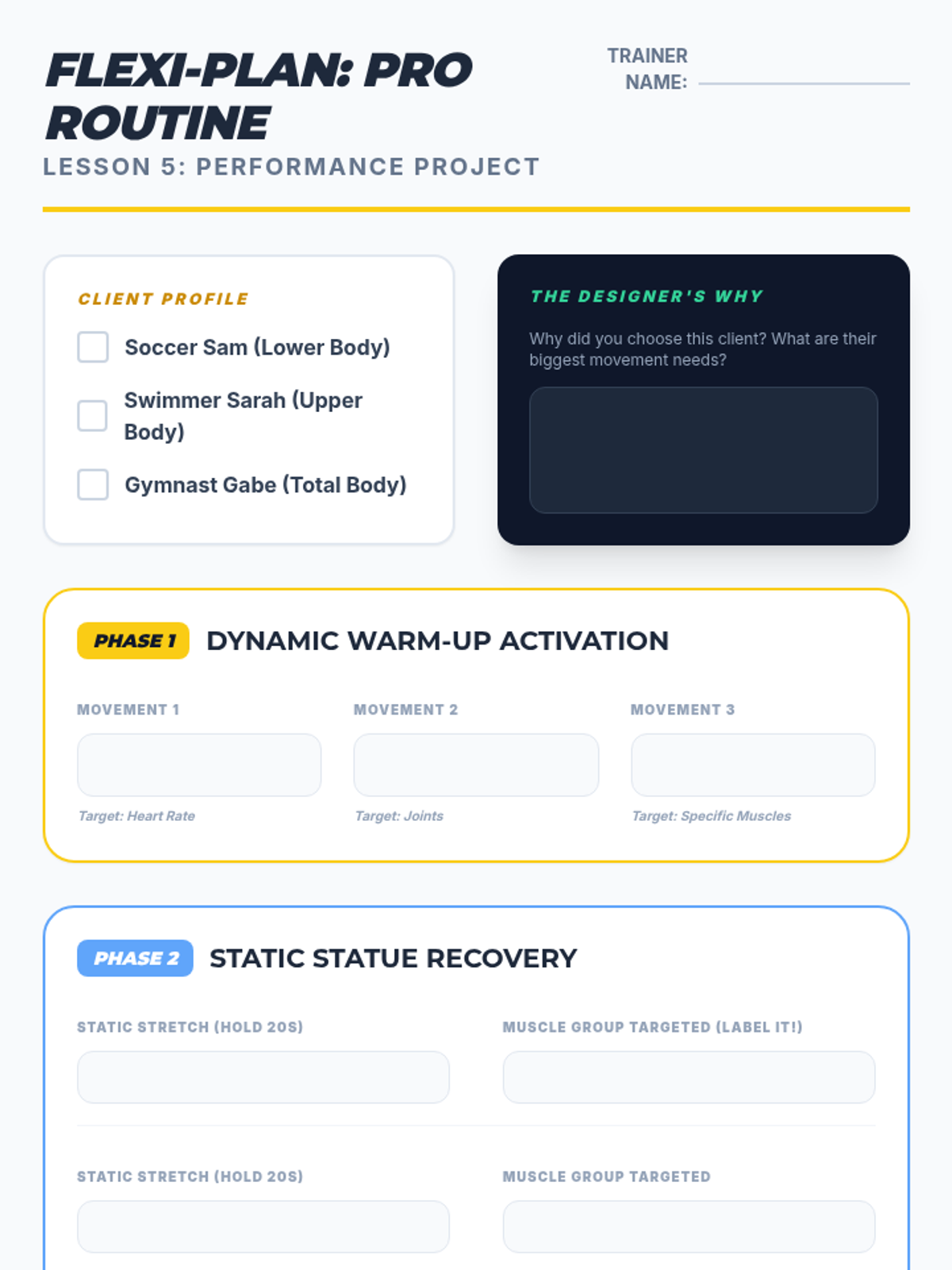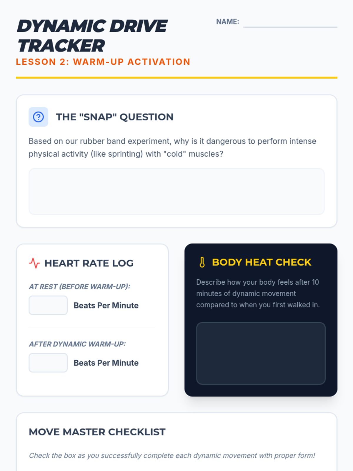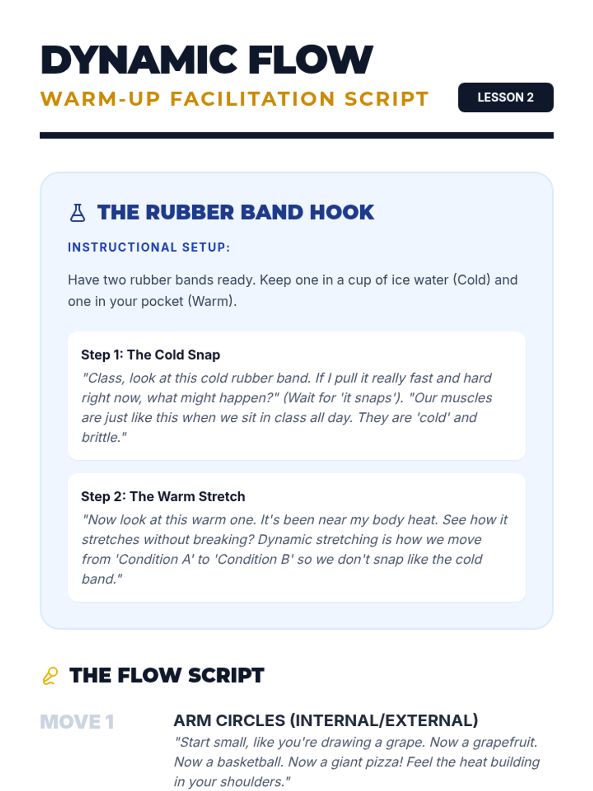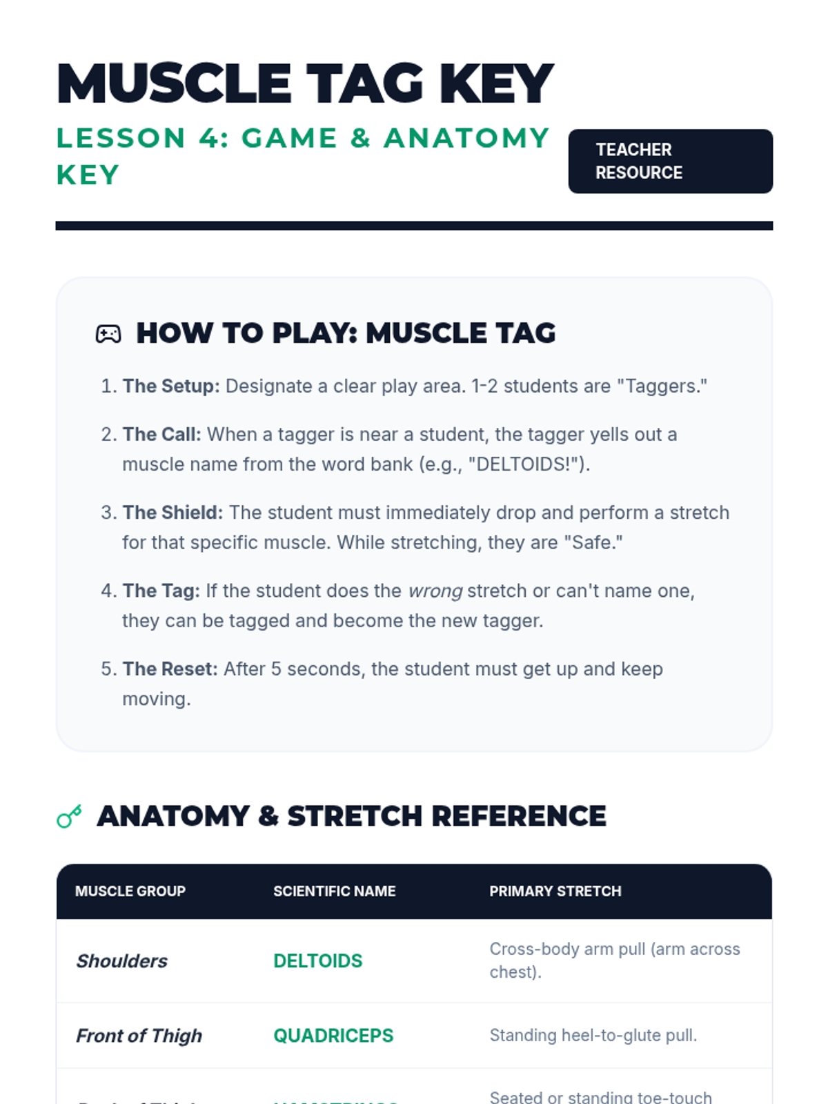 A comprehensive 5th Grade Physical Education unit that teaches students the science and practice of flexibility. Students progress from understanding basic range of motion to designing and leading their own dynamic and static stretching routines tailored to specific physical activities.