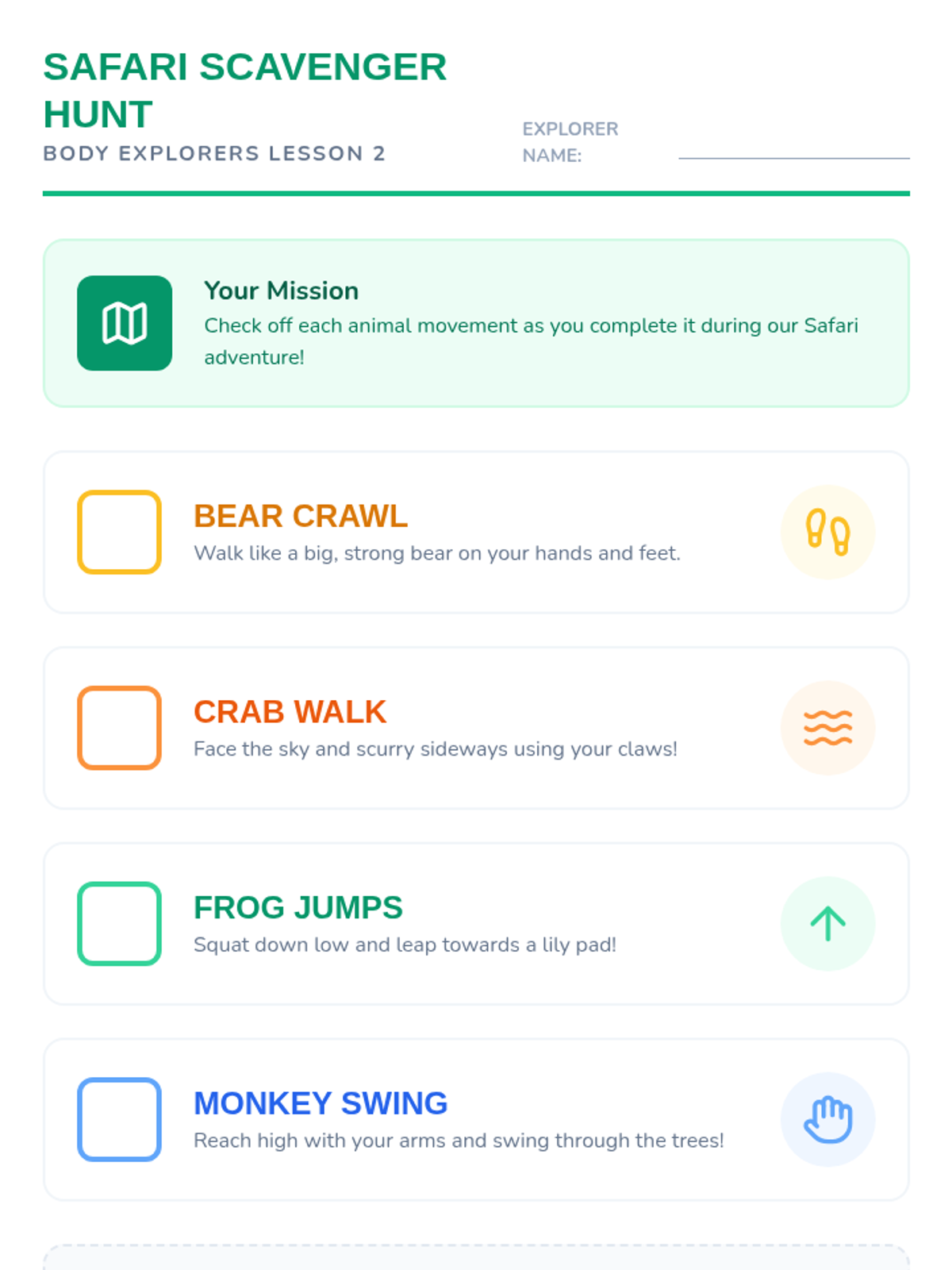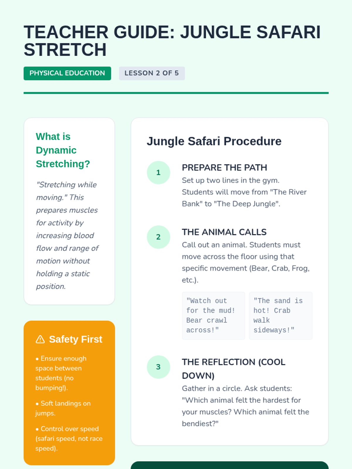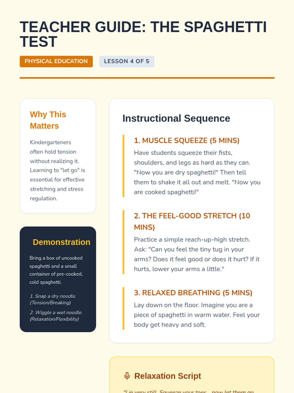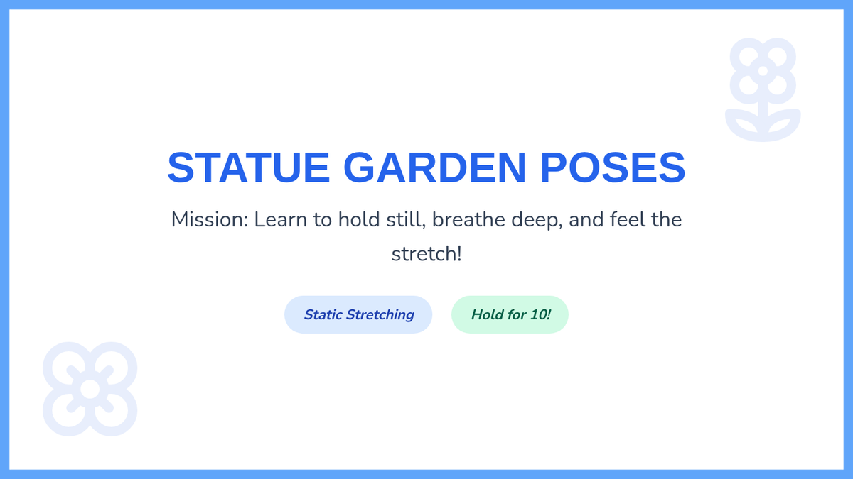 A comprehensive physical education sequence for Kindergarten students exploring flexibility, joints, and muscle awareness. Through playful analogies like robots, ragdolls, and jungle animals, students learn to move safely and improve their range of motion.