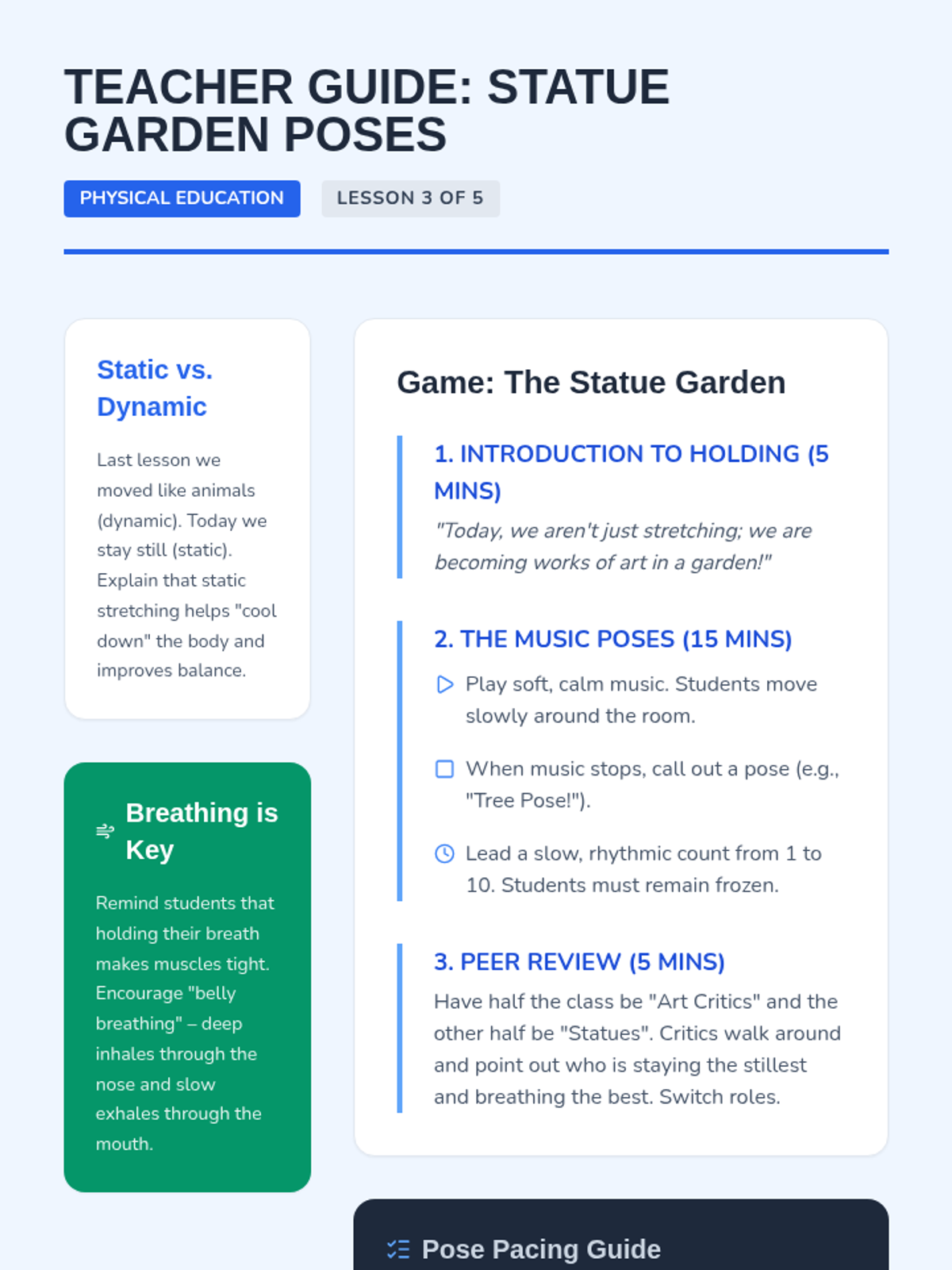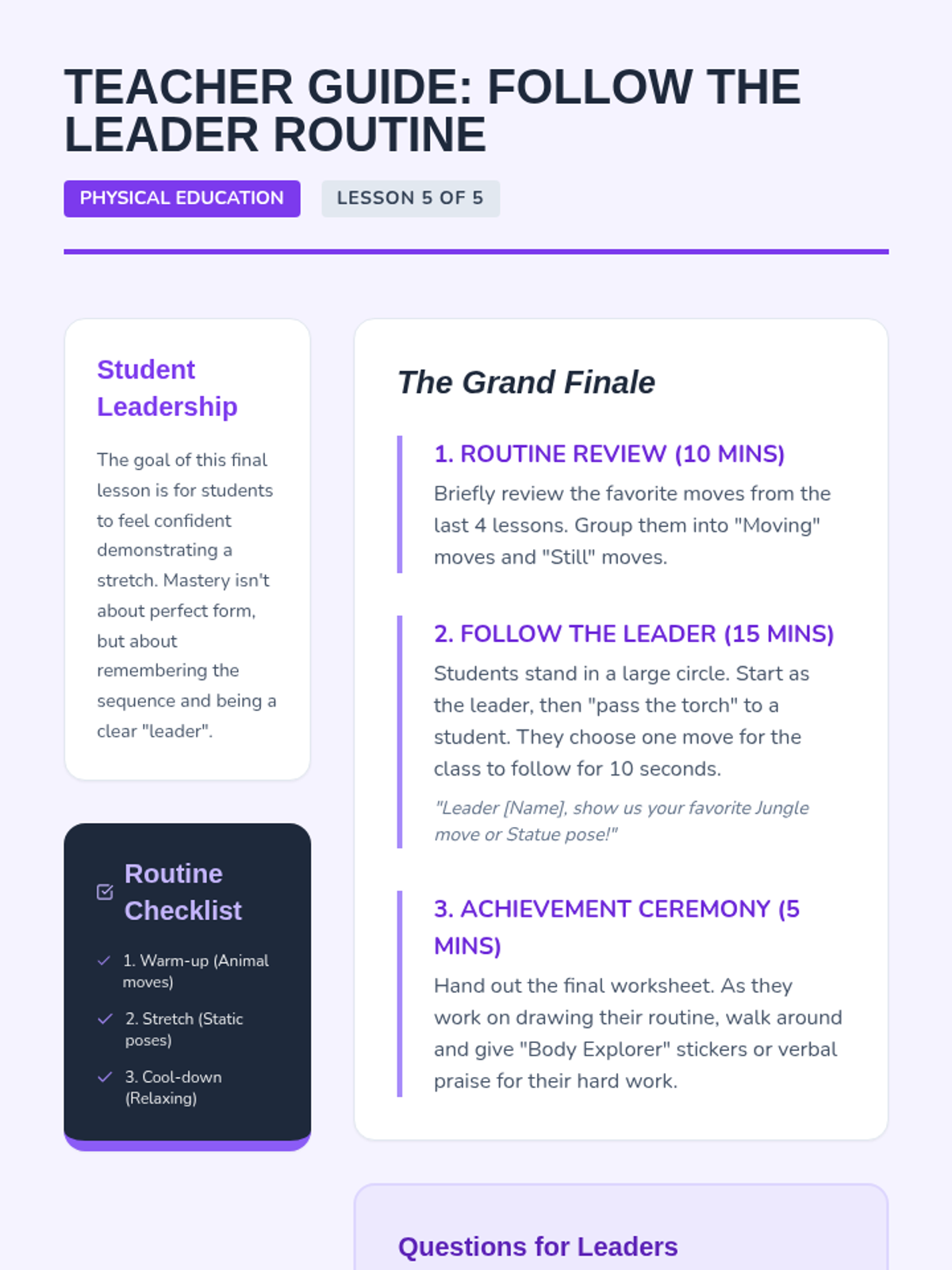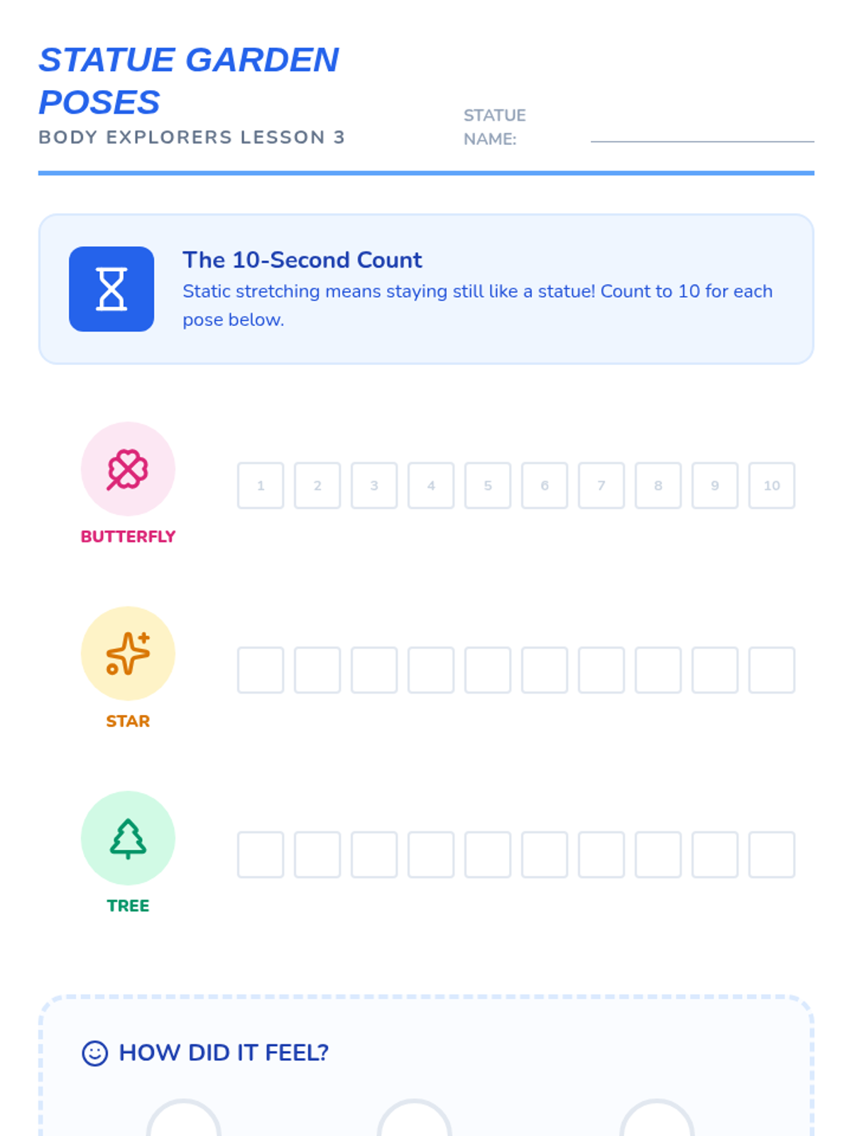 A comprehensive physical education sequence for Kindergarten students exploring flexibility, joints, and muscle awareness. Through playful analogies like robots, ragdolls, and jungle animals, students learn to move safely and improve their range of motion.