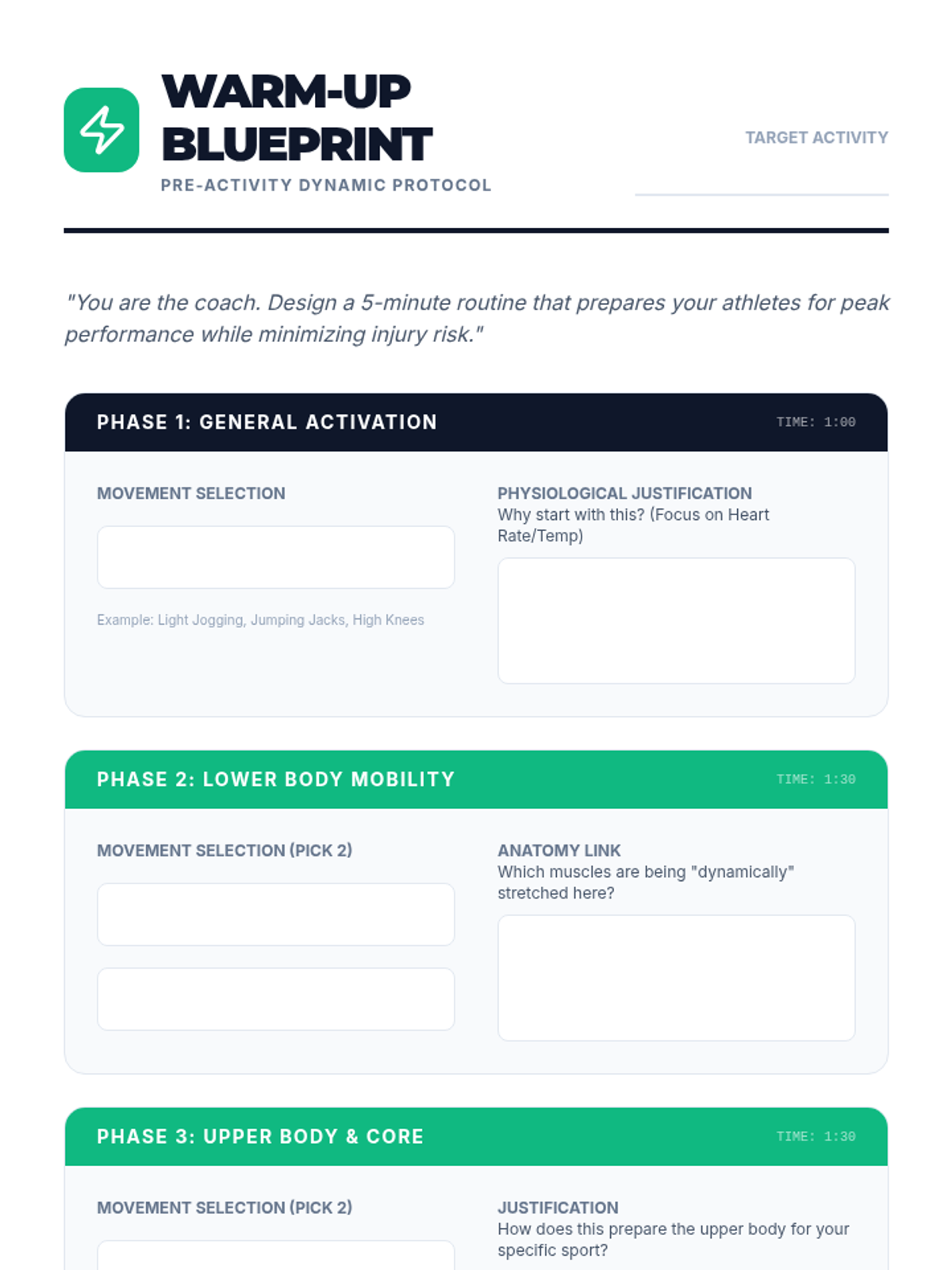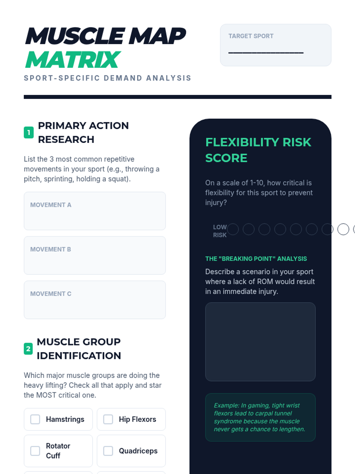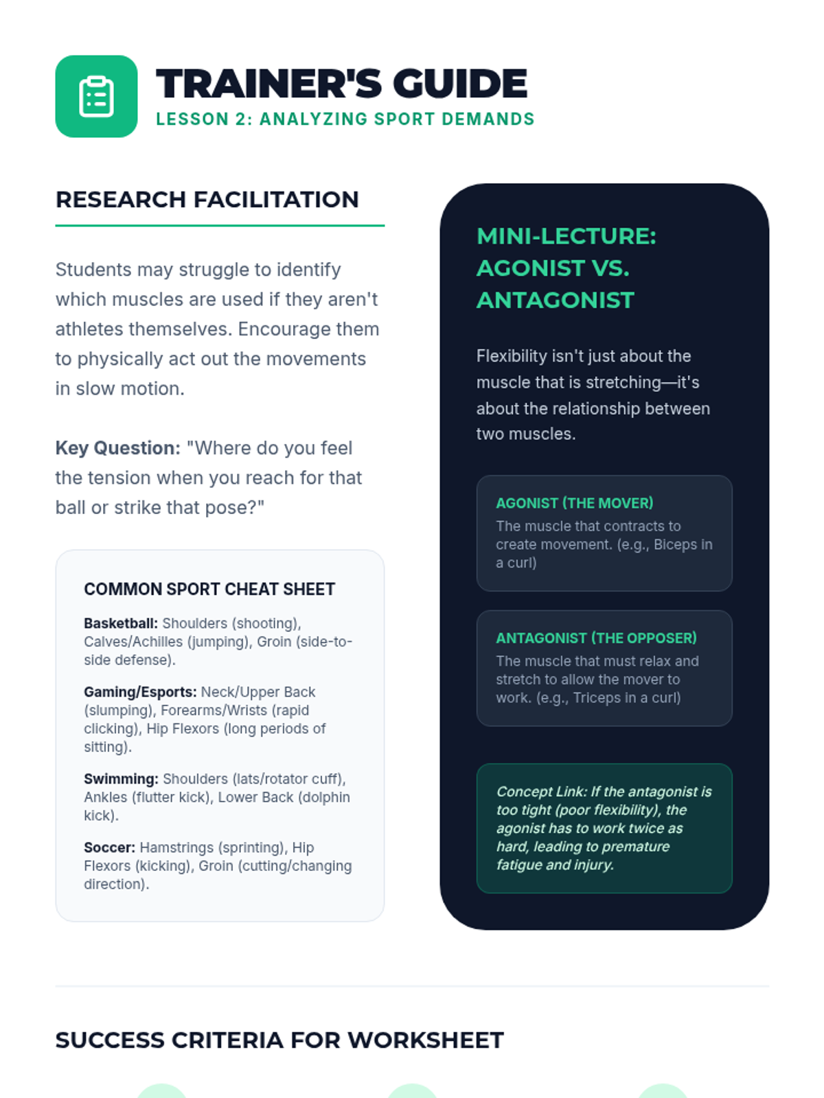A project-based unit where 7th-grade students analyze sports injuries, research muscle demands, and design personalized flexibility programs to act as fitness coaches.