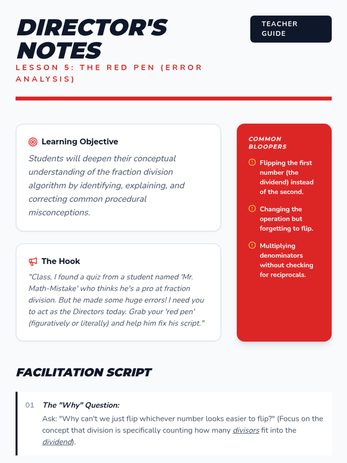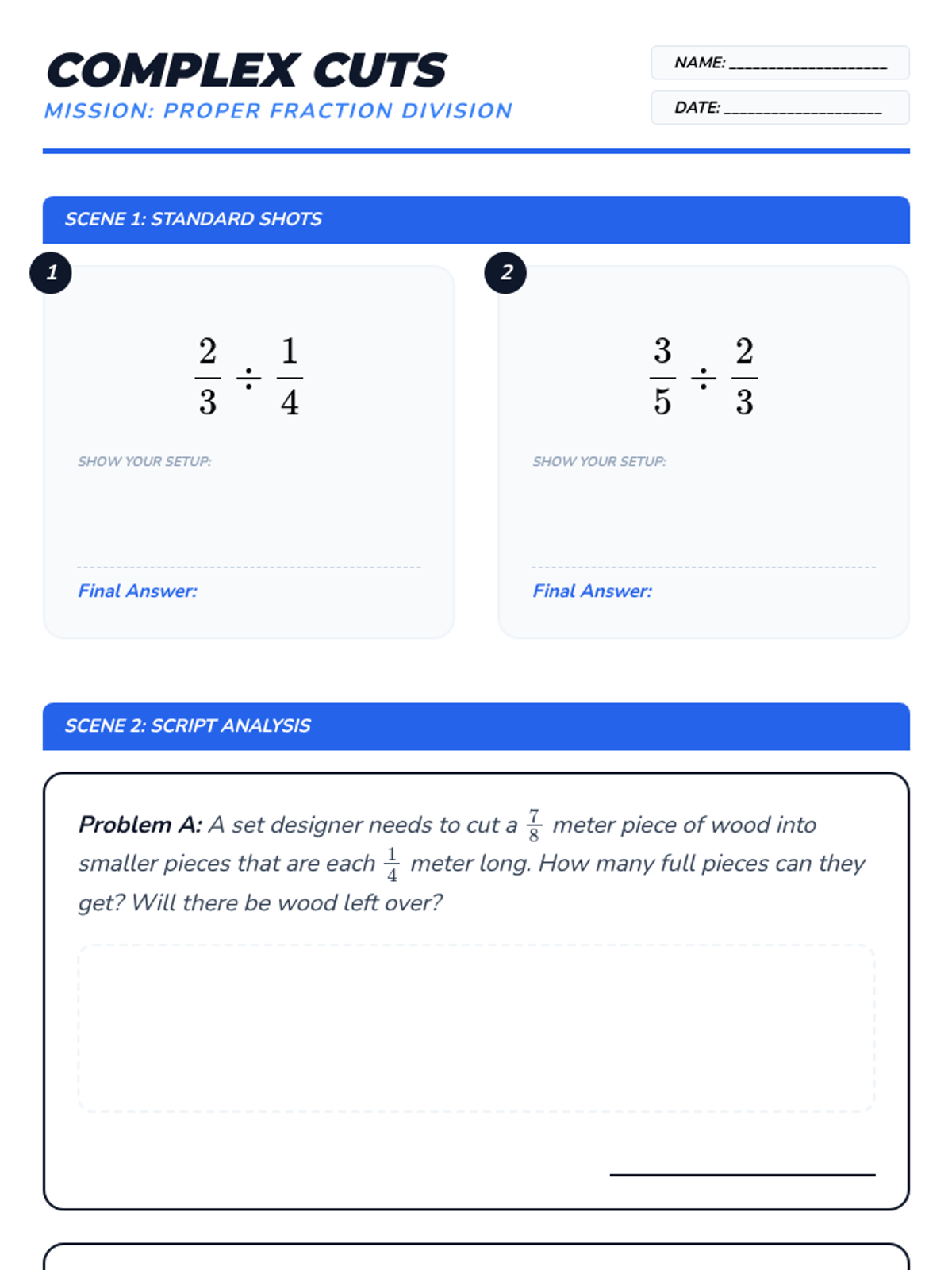 This sequence guides 5th-grade students from visual models to the standard algorithm for dividing fractions. Students discover the relationship between division and multiplication through reciprocals, build fluency with the algorithm, and apply their knowledge to solve complex problems and analyze common errors.