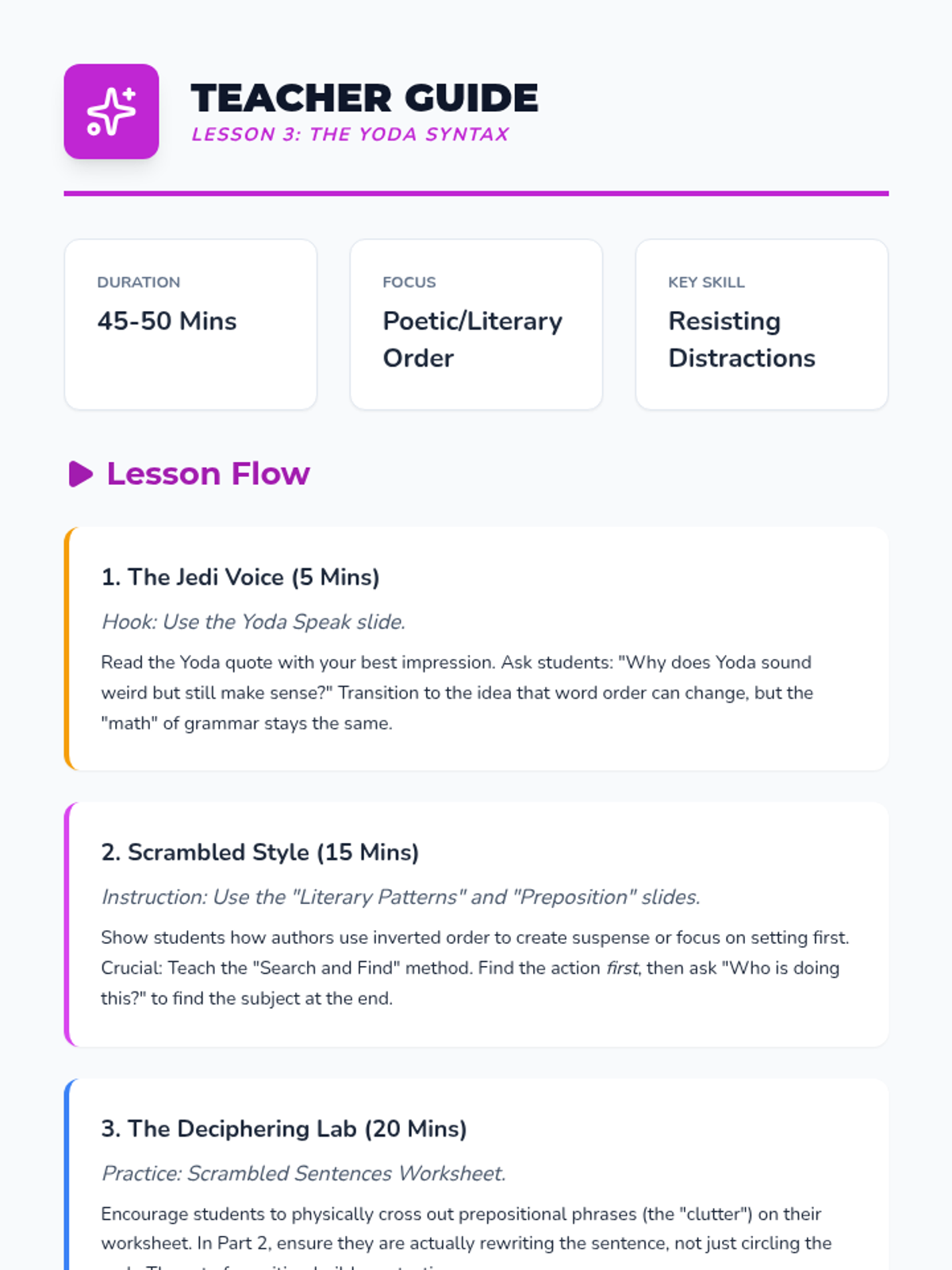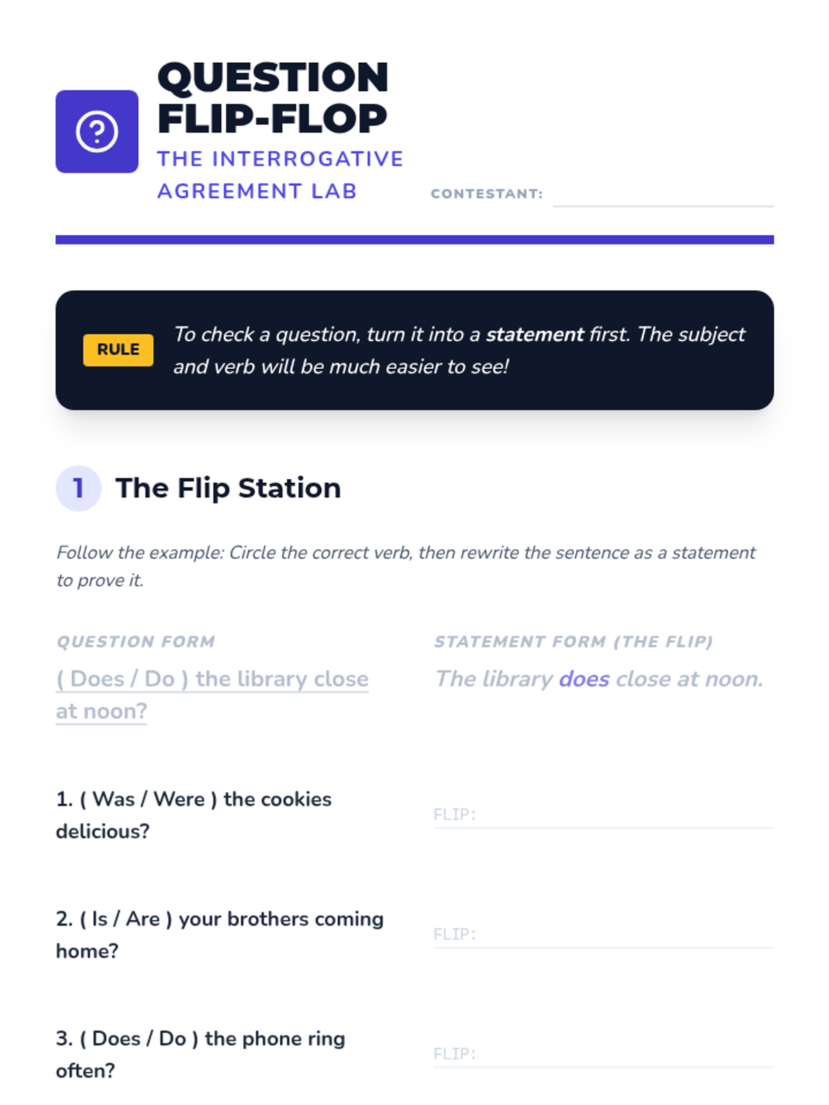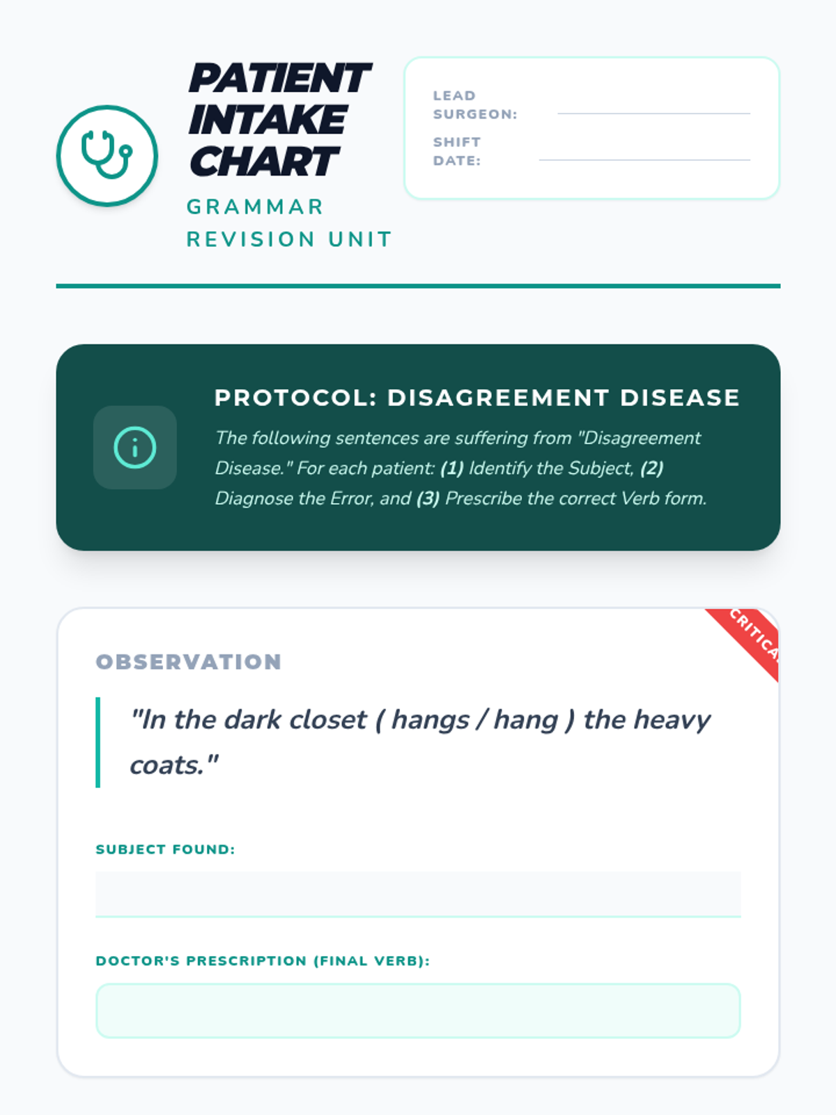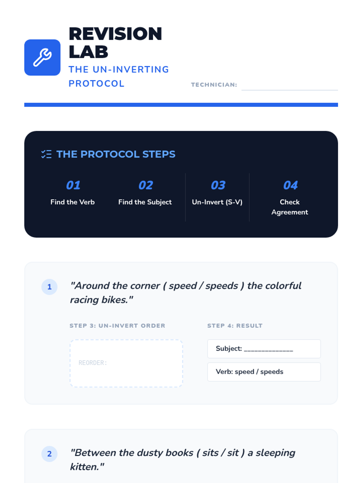 A comprehensive sequence for 5th-grade students focusing on subject-verb agreement in complex and inverted sentence structures. Students learn to navigate 'Here/There' starters, questions, and poetic word orders using the 'un-inverting' revision strategy.