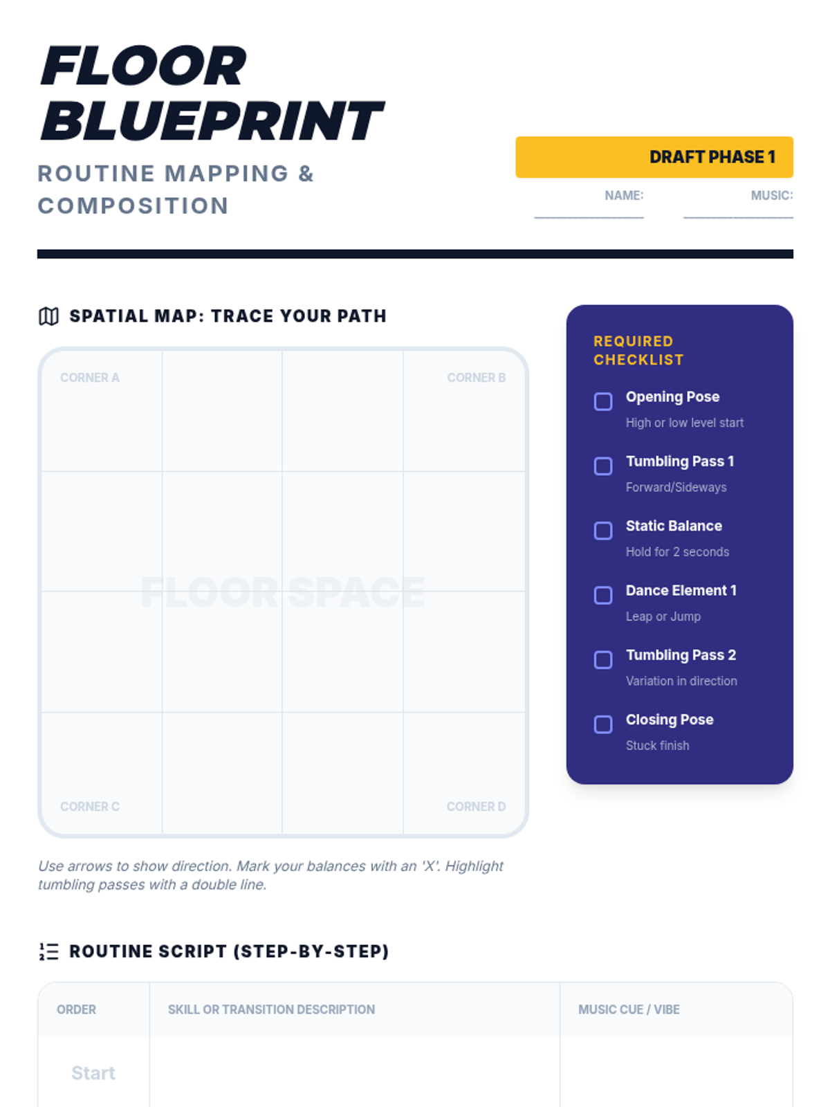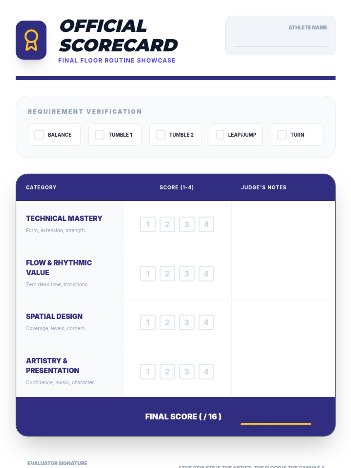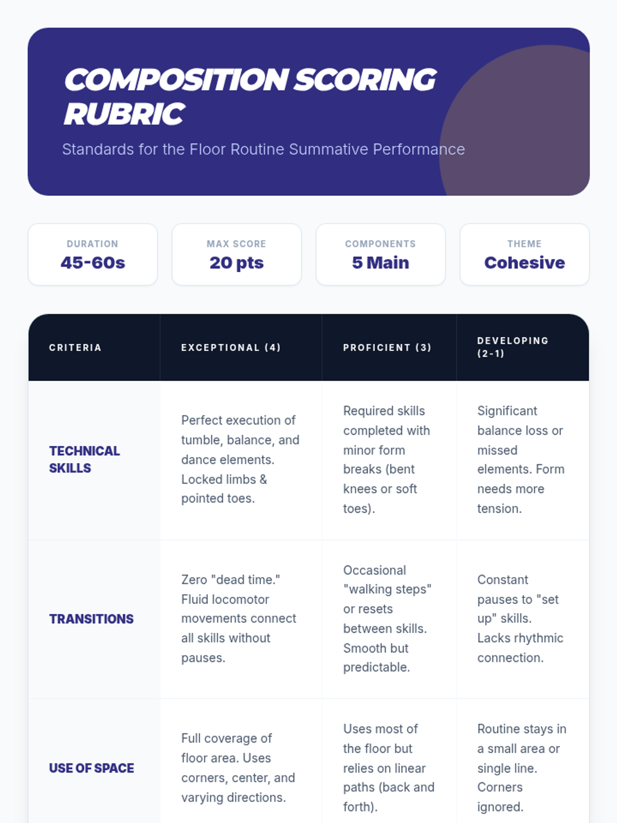 A comprehensive sequence for 9th Grade PE focused on the artistic and athletic composition of gymnastics floor routines, moving from individual skills to a cohesive performance.