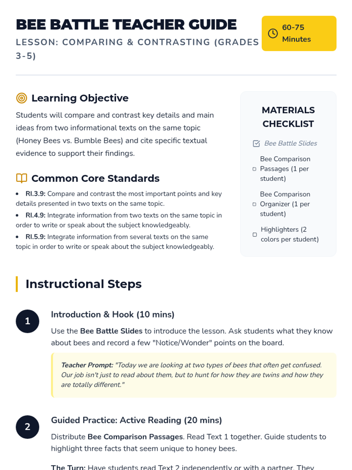 A series of lessons designed to help elementary students master the skill of comparing and contrasting key details and main ideas across multiple texts on the same topic.
