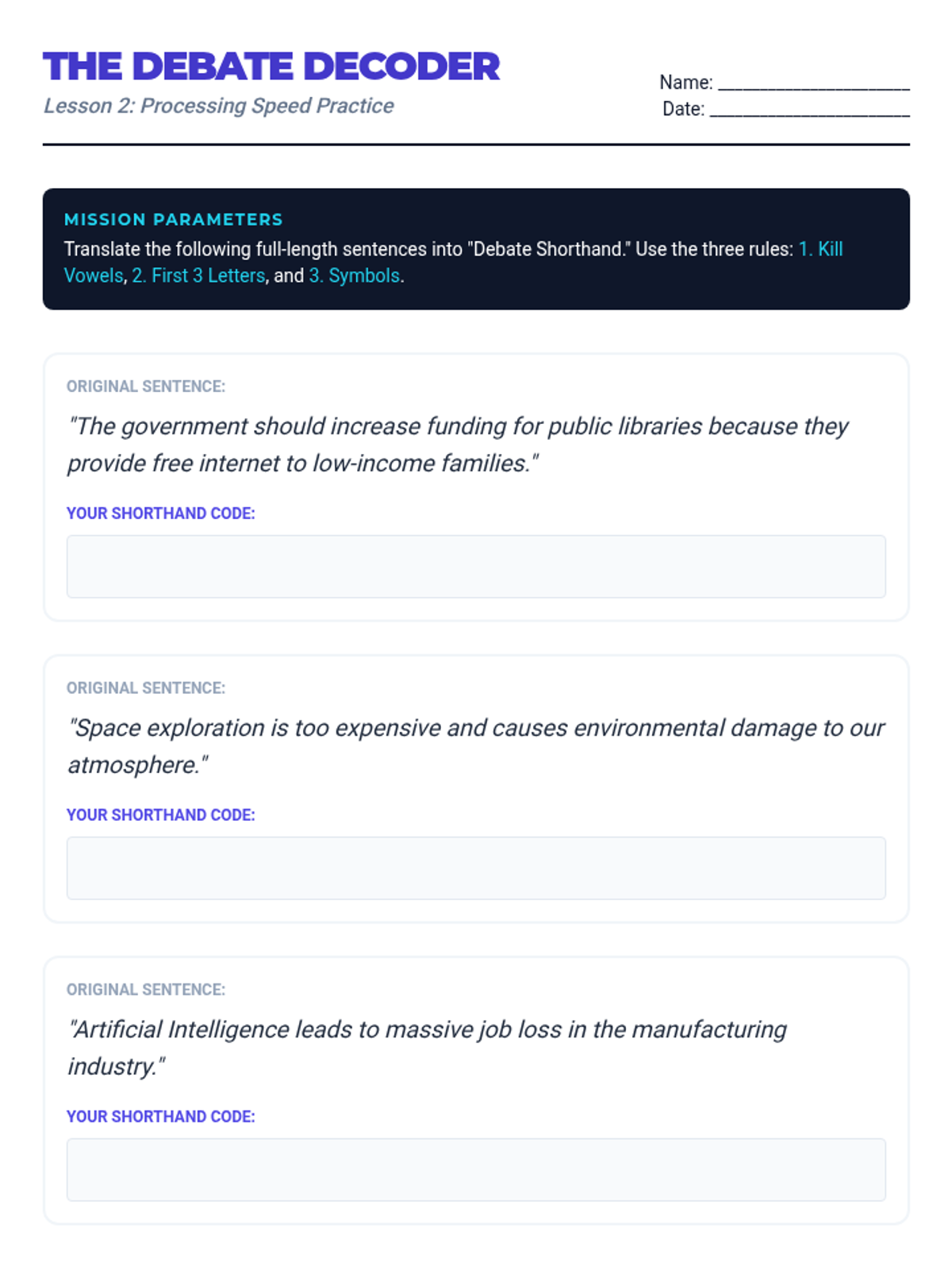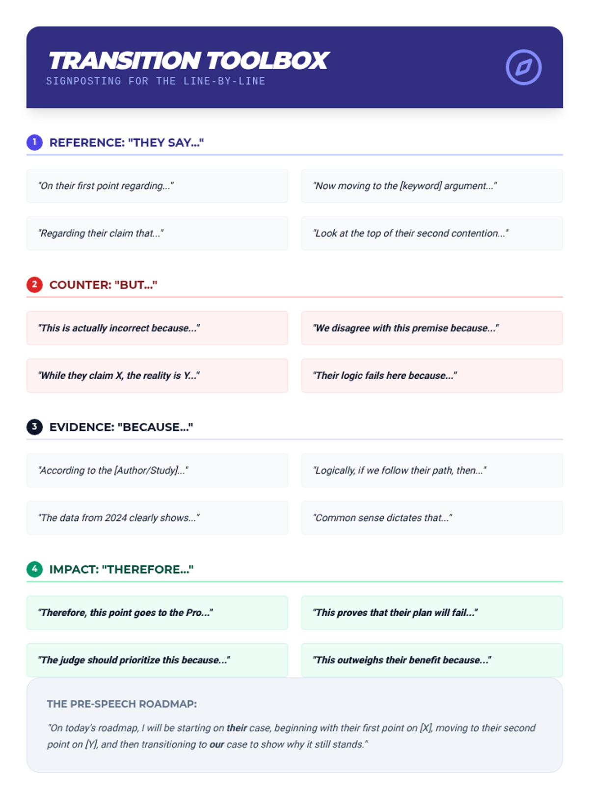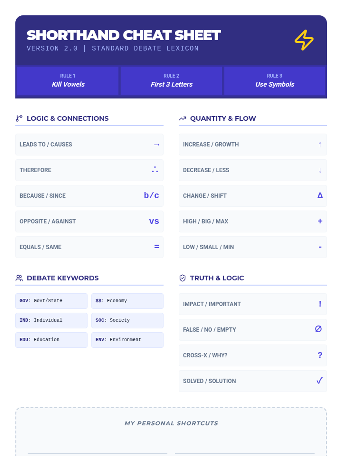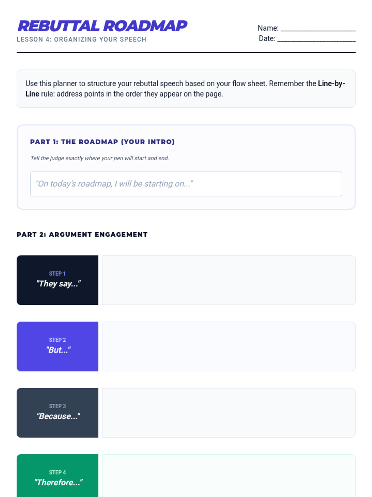 A comprehensive sequence for 8th-grade debaters focusing on 'flowing'—the specialized note-taking method used to track arguments. Students learn to organize information spatially, use shorthand symbols, track clashes with arrows, and execute systematic line-by-line refutations.