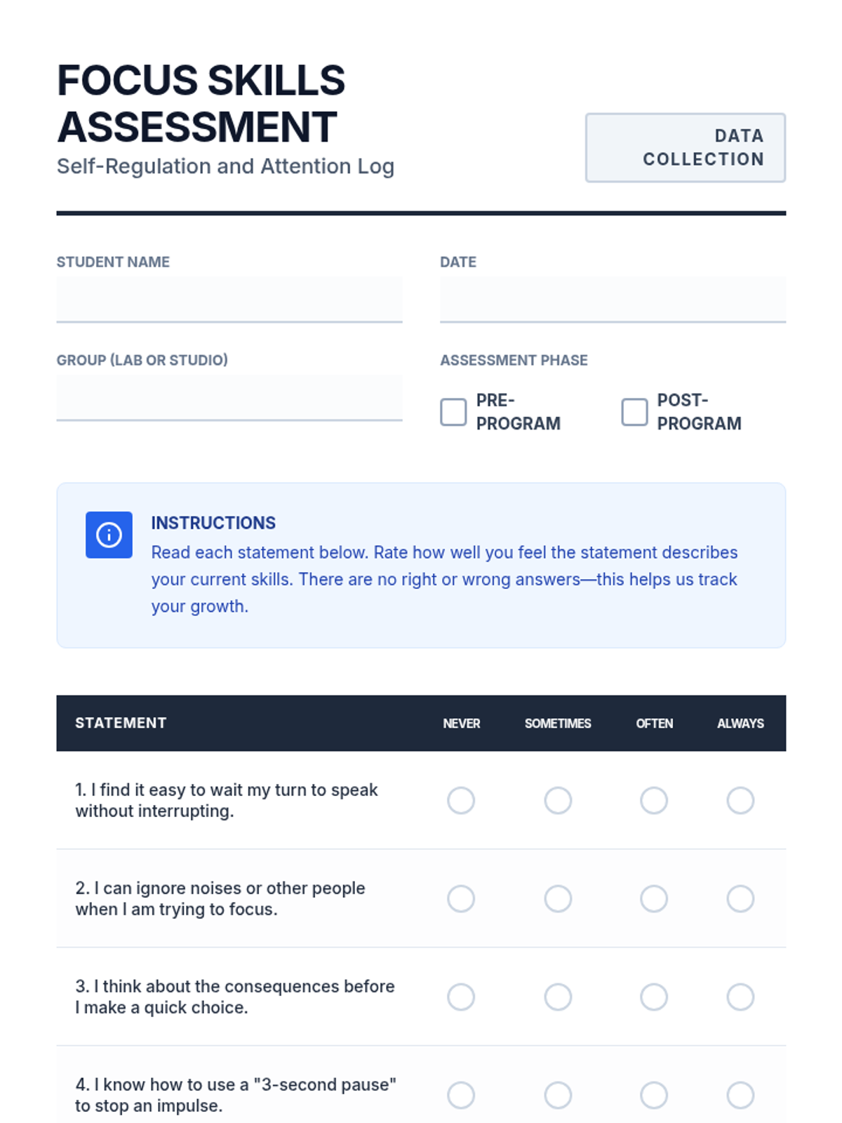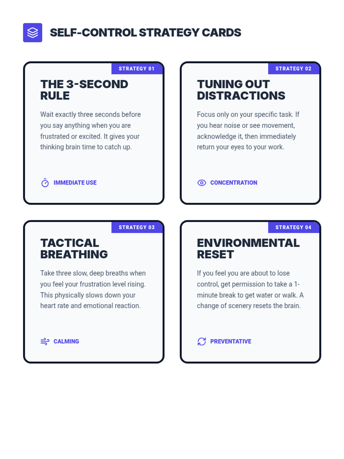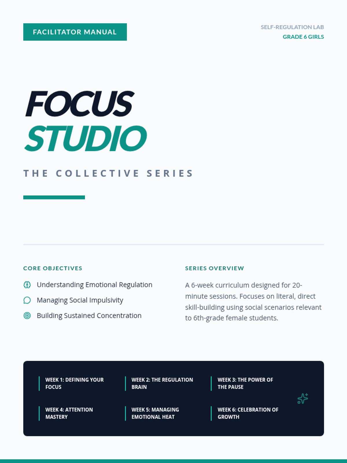 A 6-week small group counseling series for 6th-grade boys focused on literal impulsivity control and focusing skills. The series uses direct language to teach self-regulation and brain-based awareness.