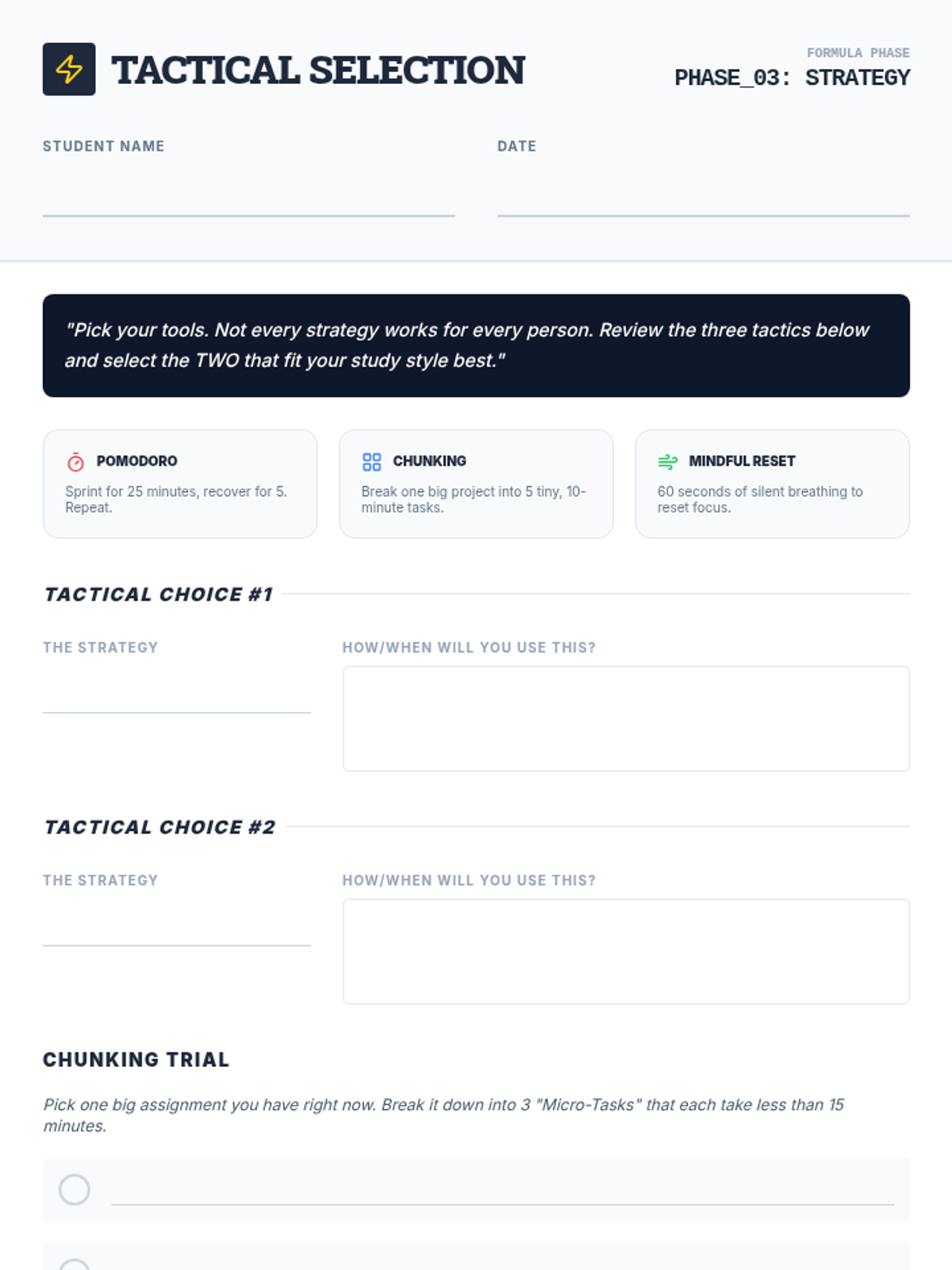 A high-impact 5-lesson sequence designed for credit-deficient high school sophomores to reclaim their academic path. The curriculum reframes impulse control as a strategic 'power move' for achieving independence, career success, and graduation through cognitive discipline and environmental awareness.