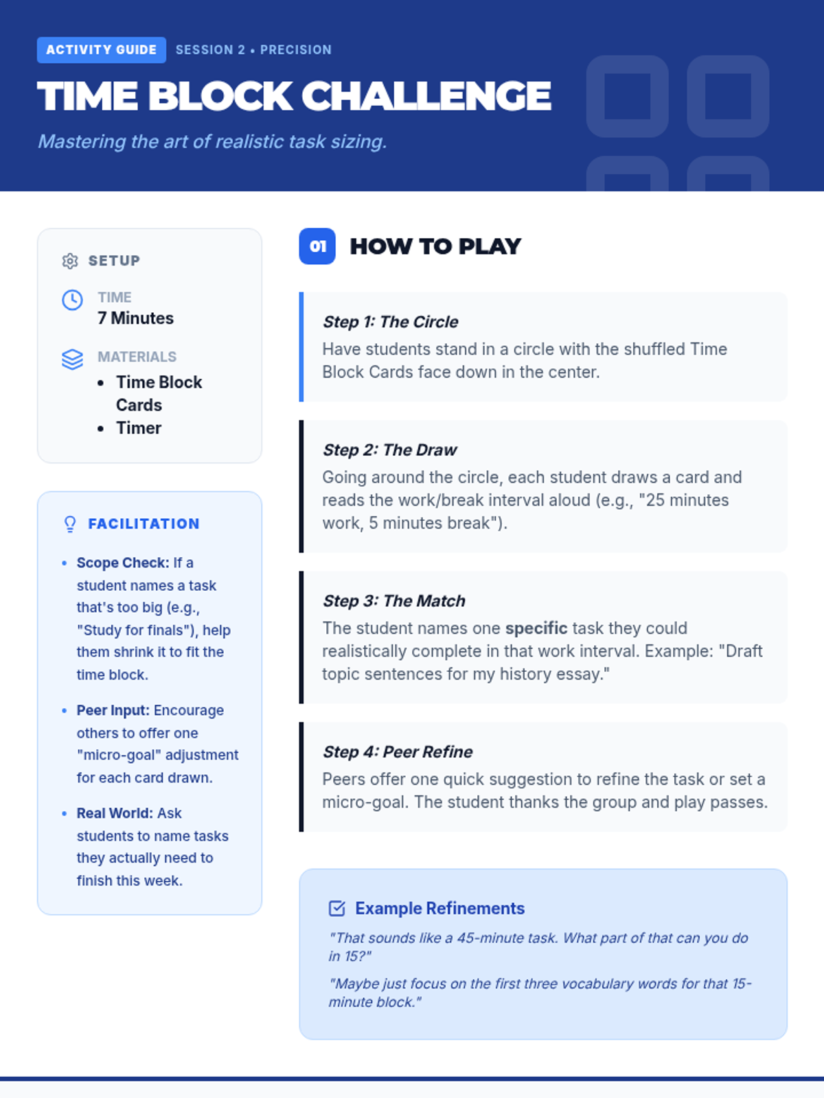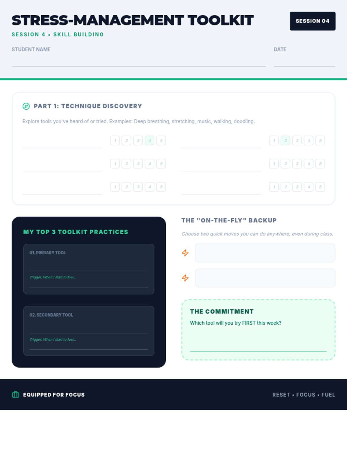 A series of three interactive counseling sessions for middle and high school students, focusing on self-discovery, emotional regulation, and future planning. Using a 'Blueprint' aesthetic, students engage in hands-on activities to map out their internal identities, manage external stressors, and construct actionable goals.