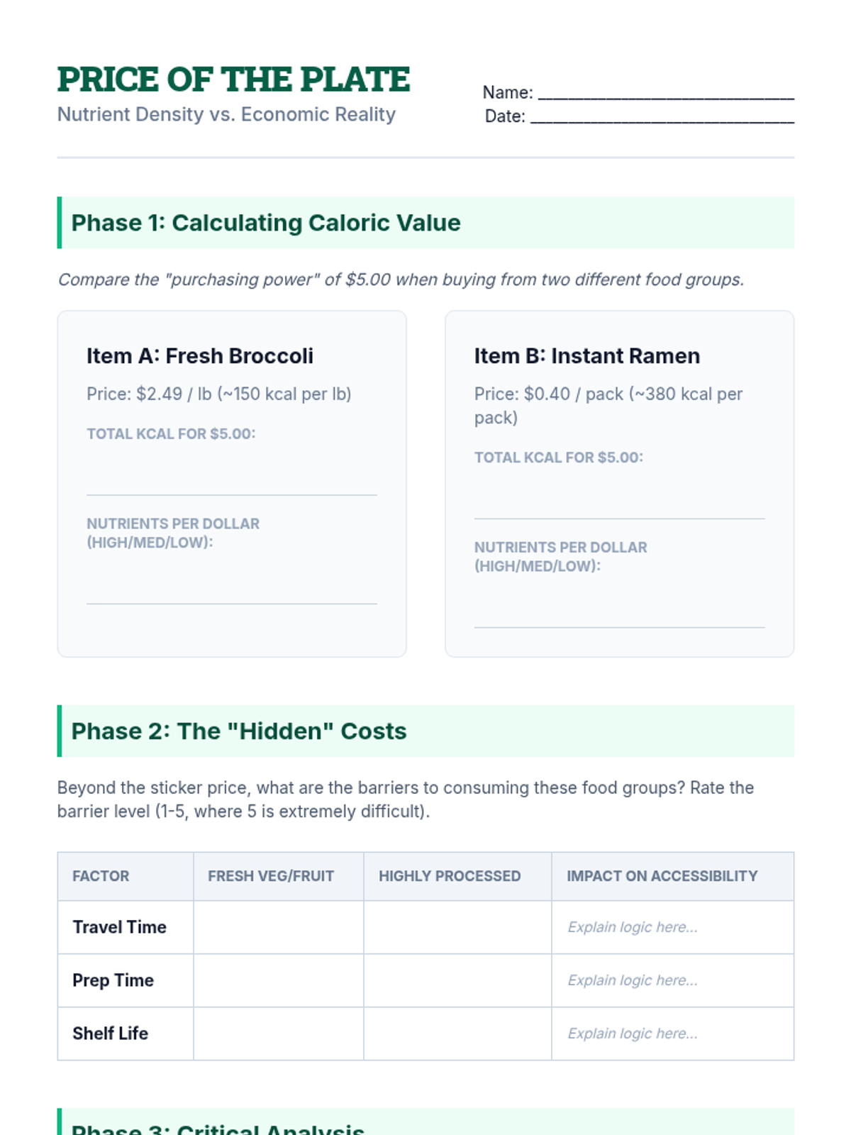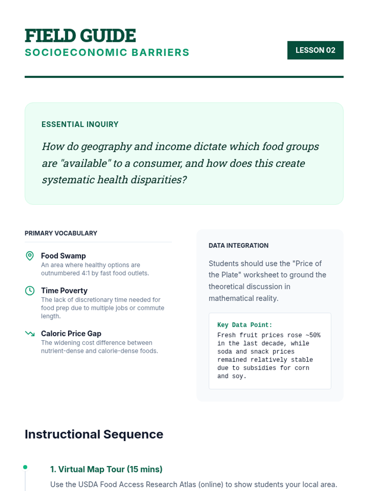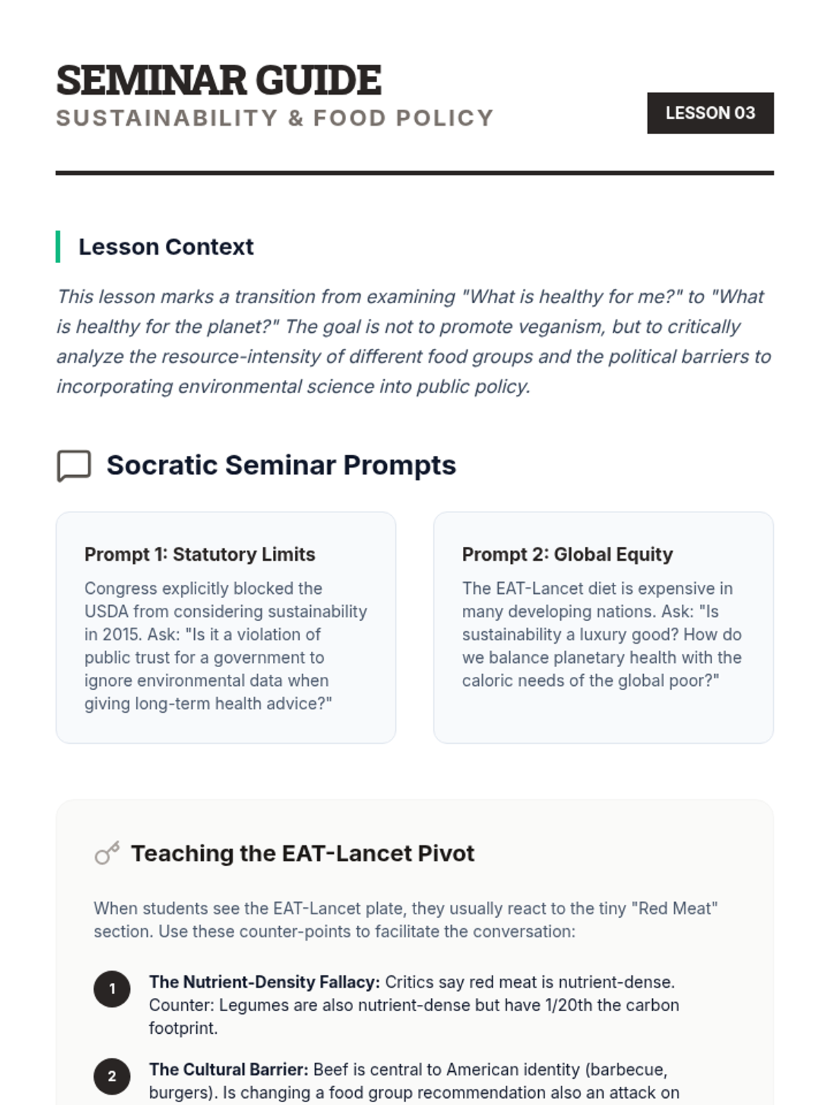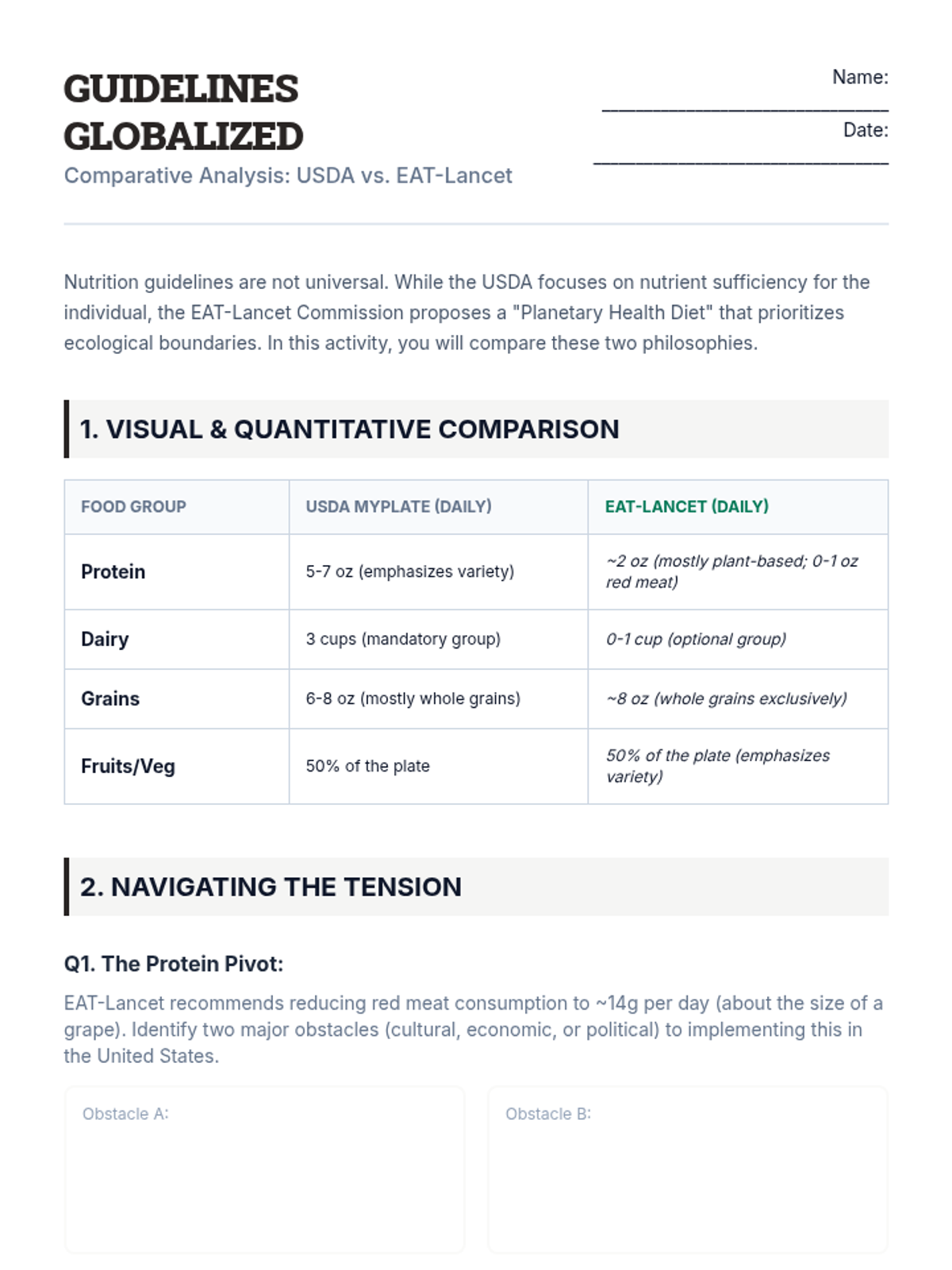 A comprehensive undergraduate sequence analyzing the socio-political, economic, and environmental factors that shape nutrition guidelines and food group accessibility. Students move from historical critiques of the Food Pyramid to proposing modernized, equitable dietary policies.