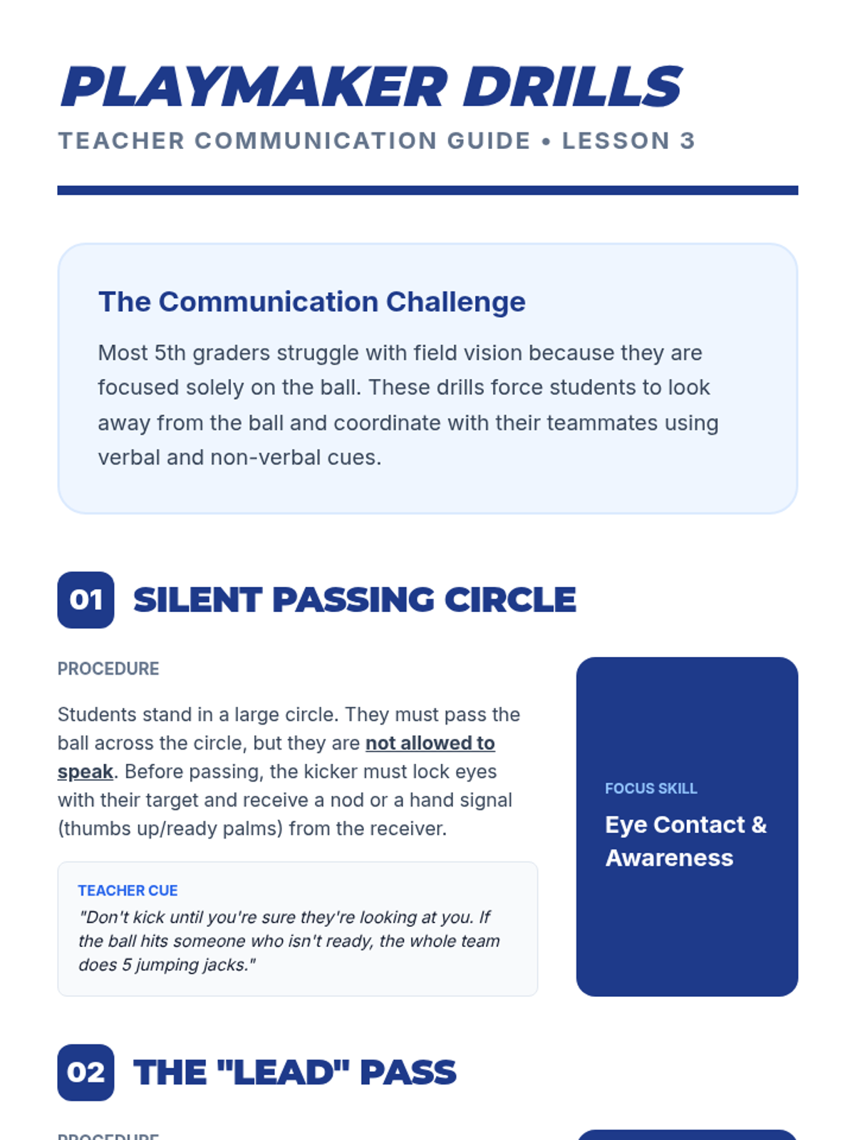 A 5th-grade physical education sequence focusing on football (soccer) skills, positional roles, rules like offside, and the importance of sportsmanship and team strategy. students rotate through player and official roles to develop a holistic understanding of the game.