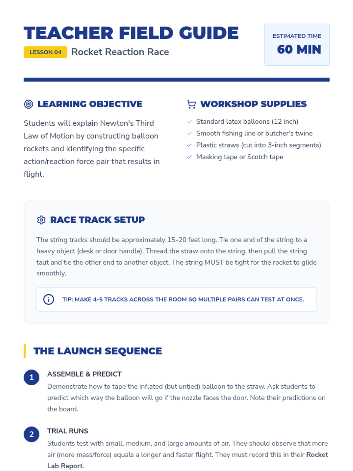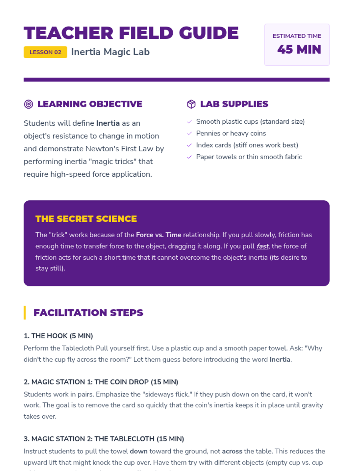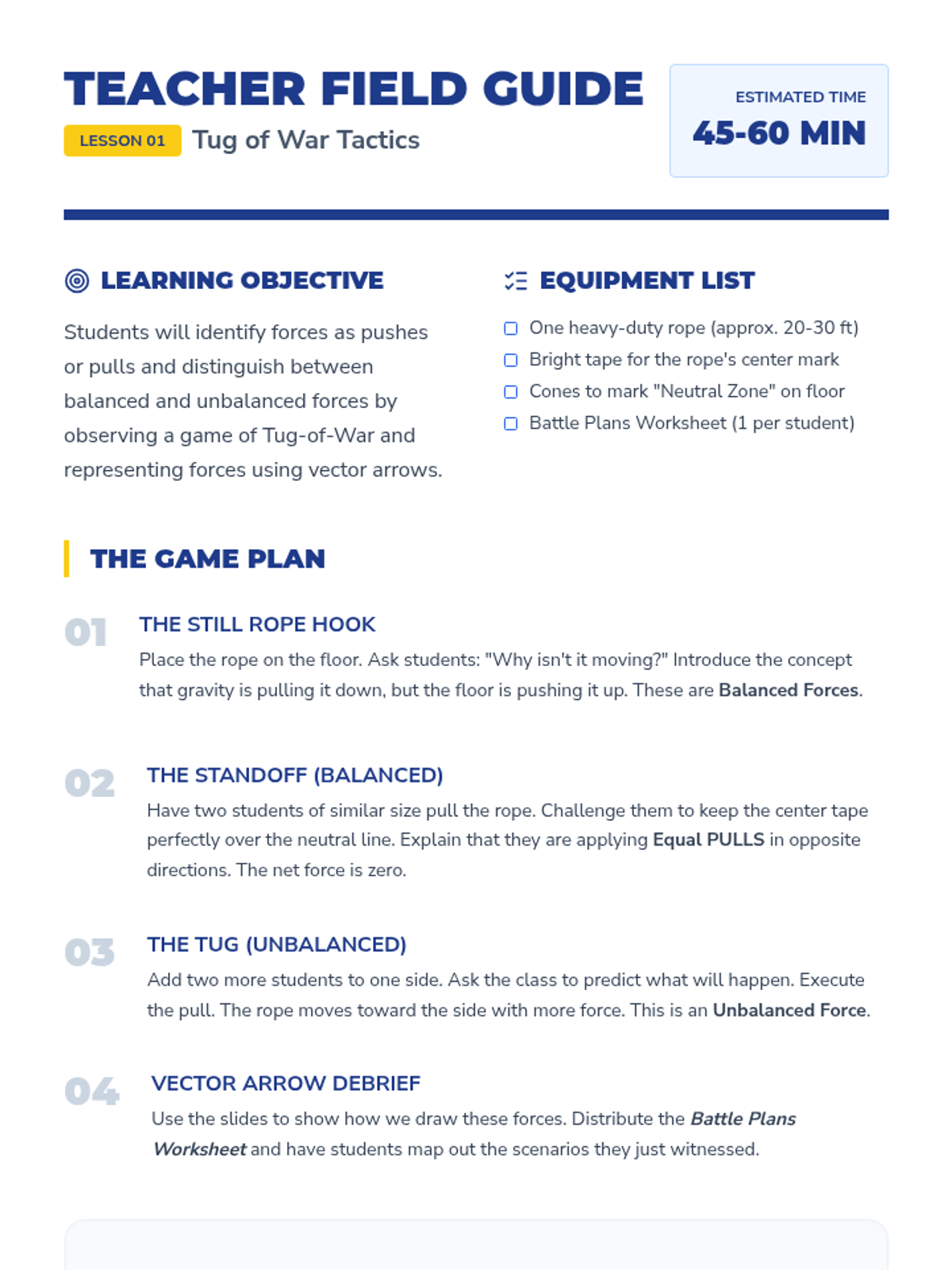 A game-based physics sequence where 4th graders explore inertia, net force, and Newton's laws through hands-on activities like Tug-of-War, magic tricks, and balloon rockets.