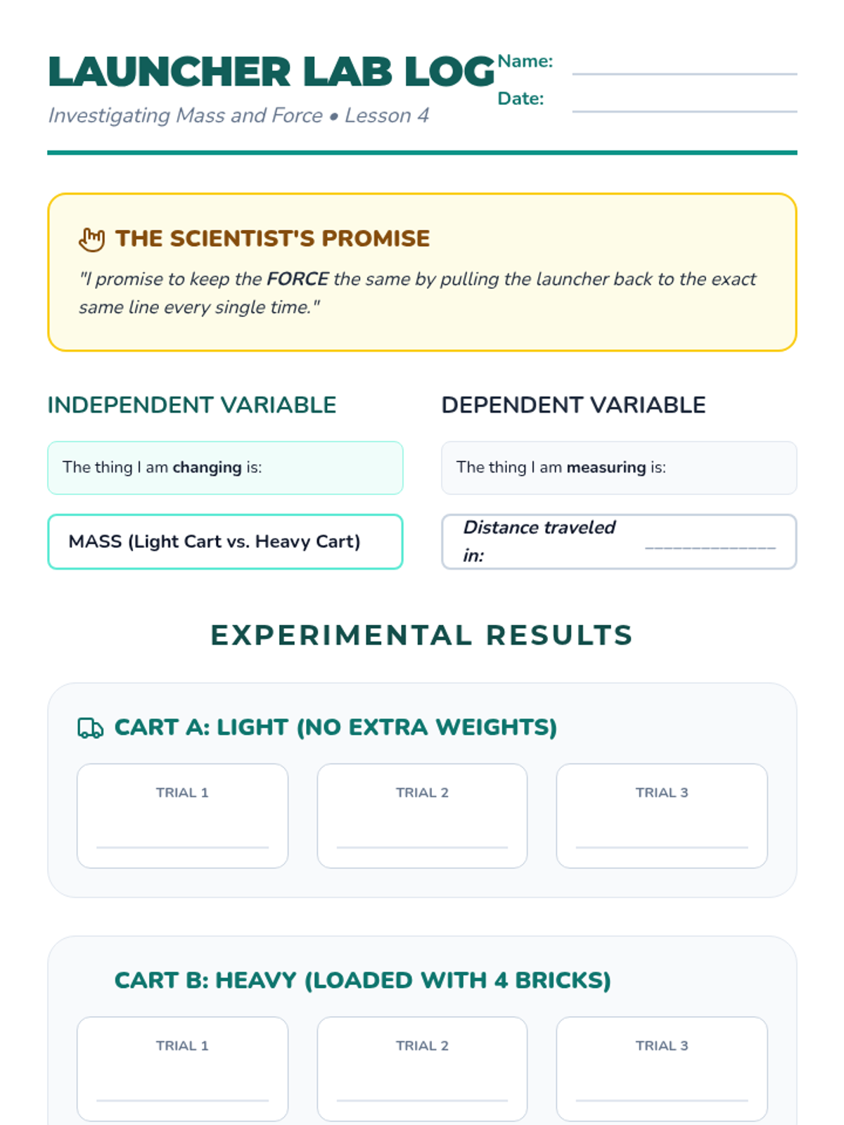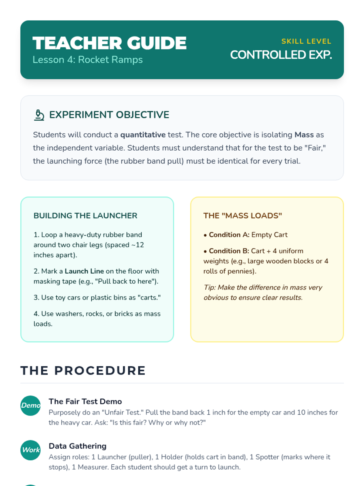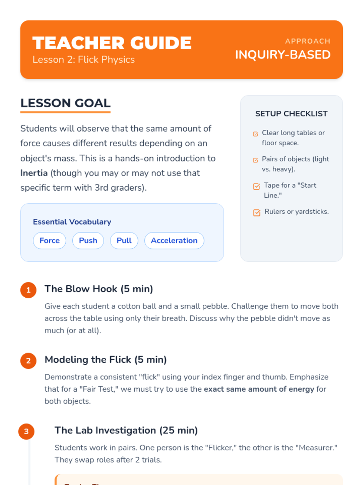 A 3rd-grade physics sequence exploring how an object's mass affects the force needed to move or stop it. Students use inquiry-based workshops to measure mass, test force applications, and observe momentum.