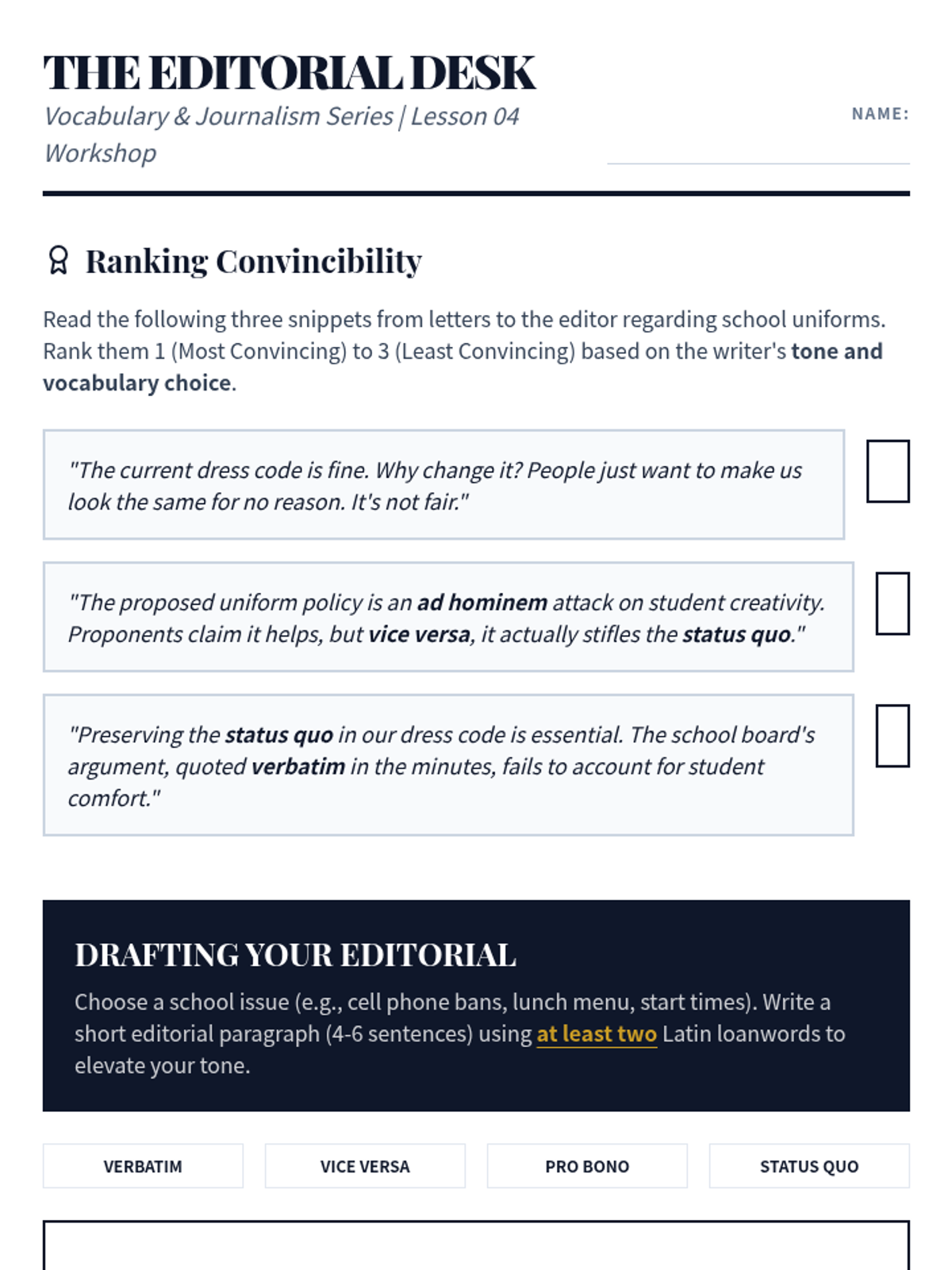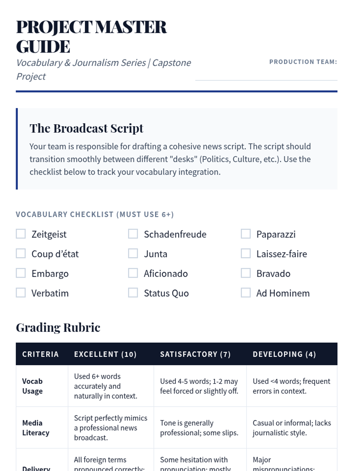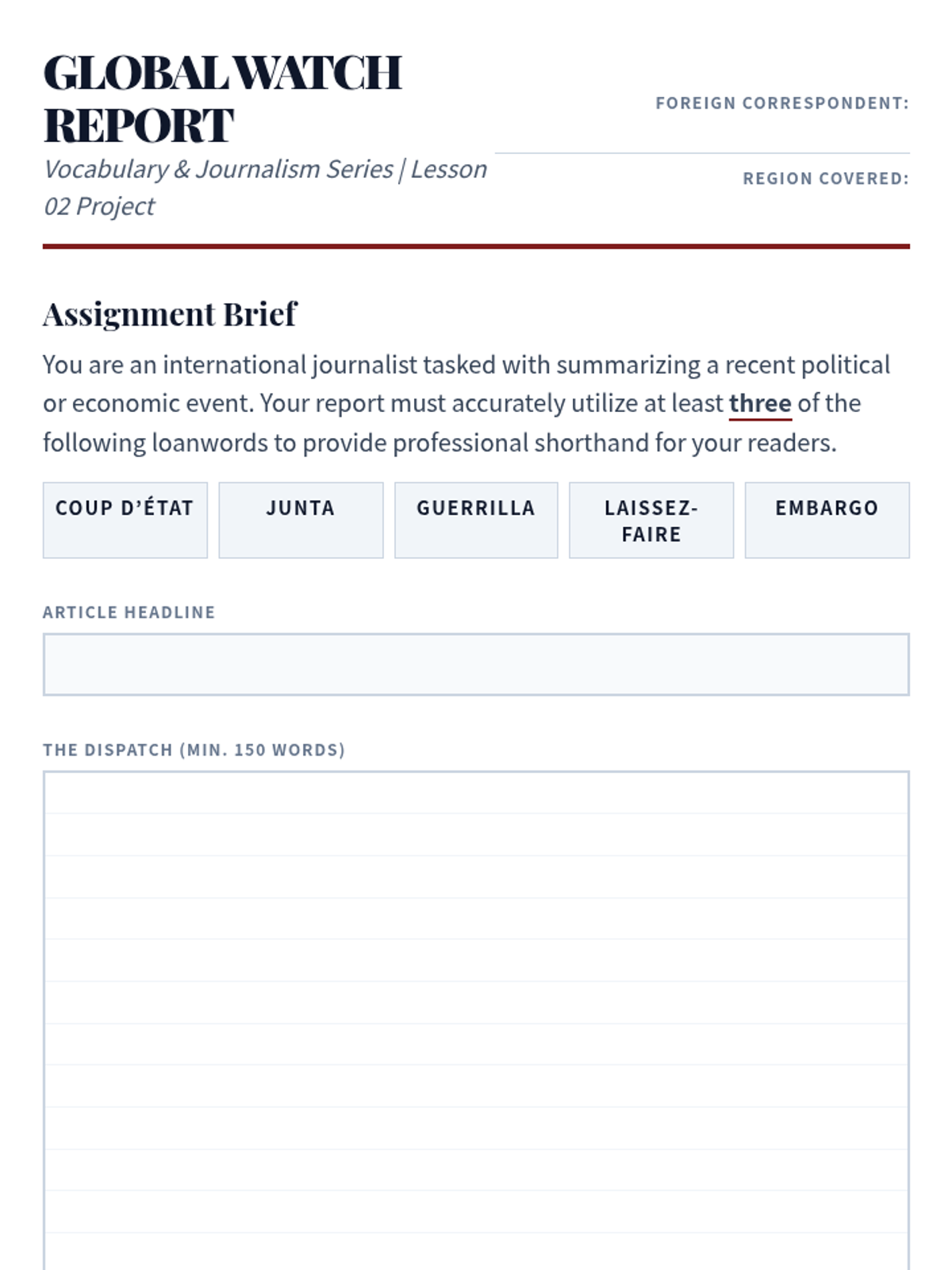 A project-based unit for 10th-grade students exploring the use of foreign loanwords in journalism, politics, and media to communicate complex concepts.