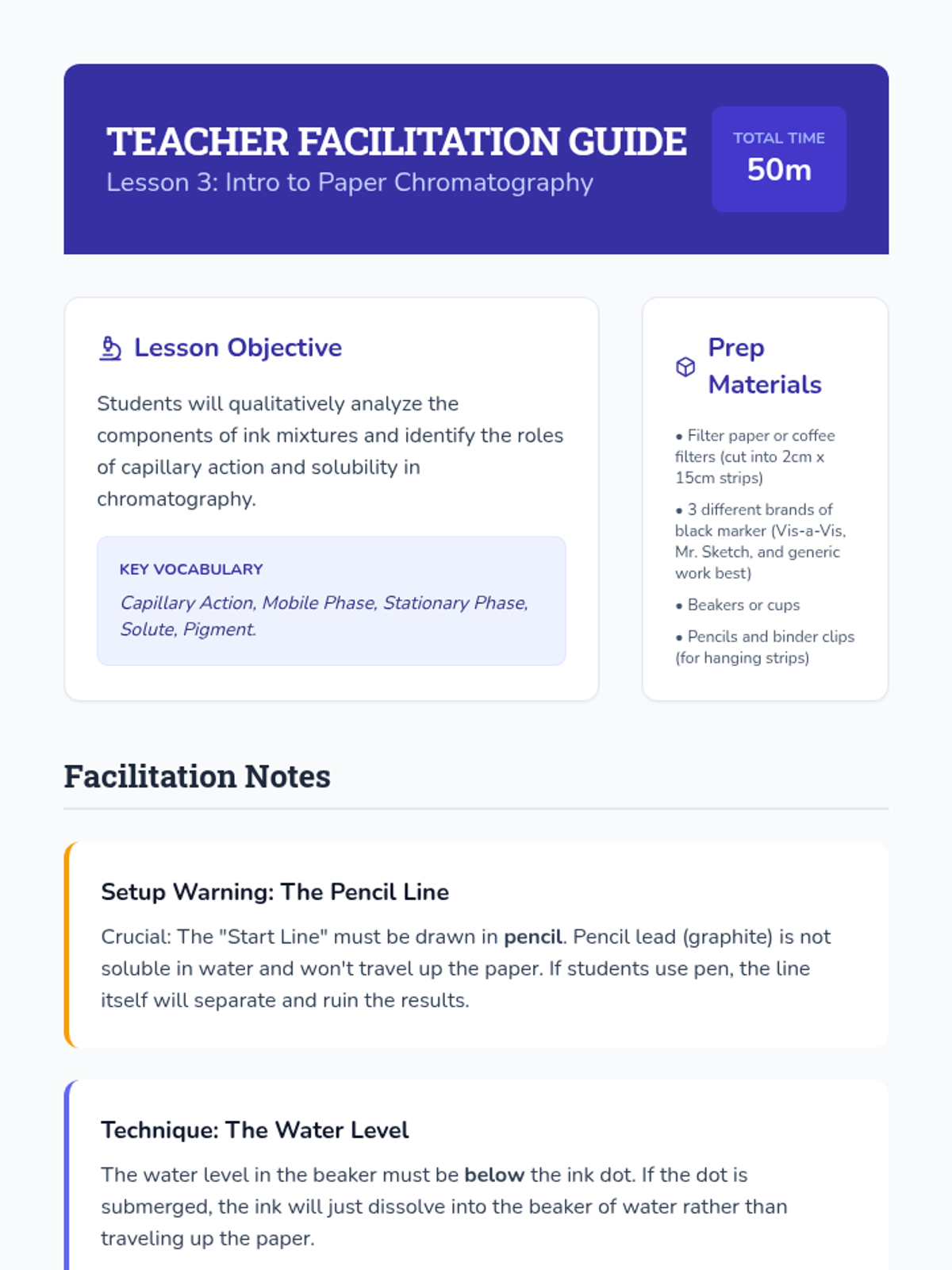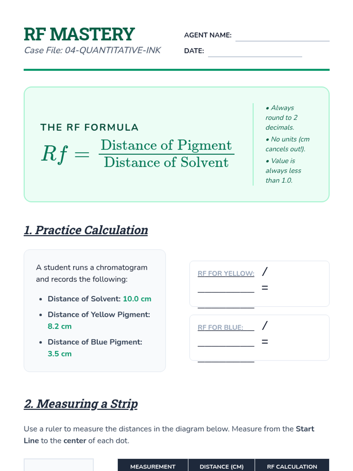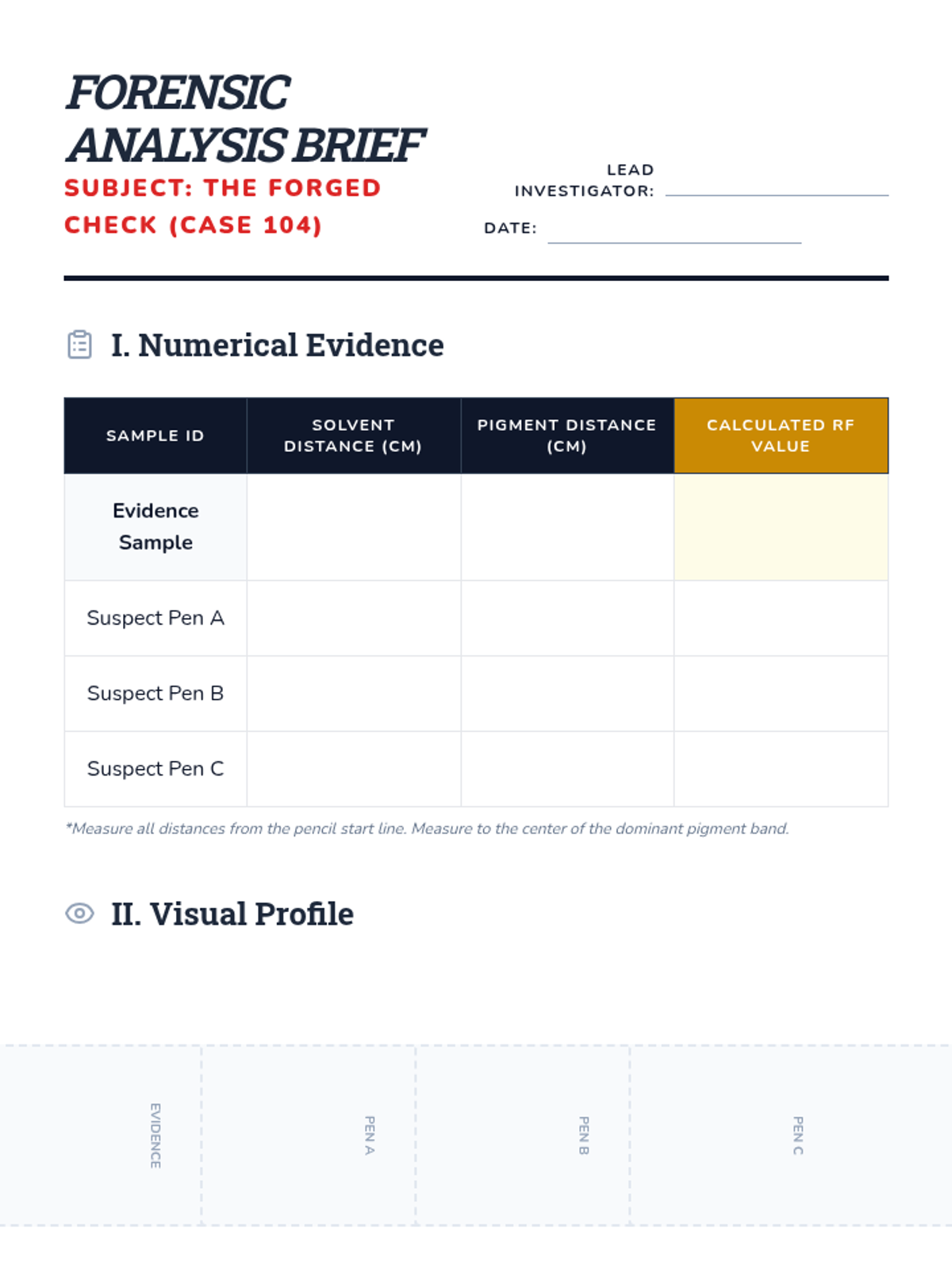 An 8th-grade science sequence exploring homogeneous mixtures through the lens of forensic science, covering solubility, chromatography, and quantitative Rf analysis.