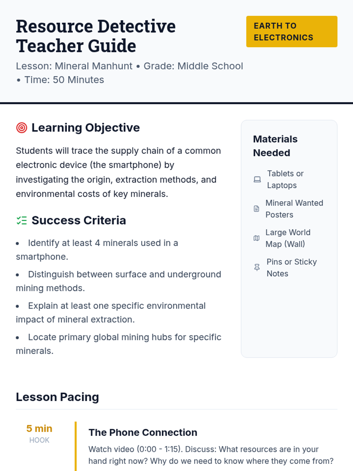 A series of lessons exploring the intersection of technology, geology, and environmental science, focusing on how the products we use every day are connected to the Earth's resources and the global environment.