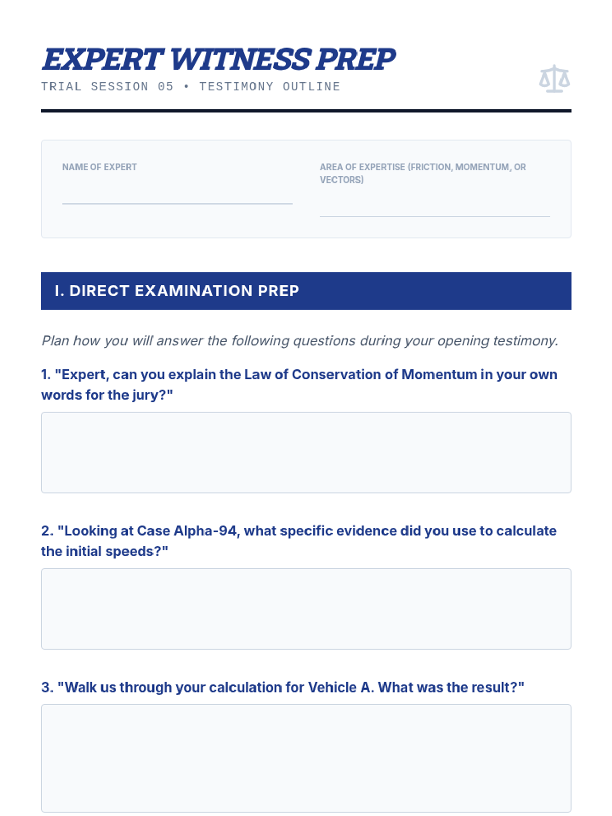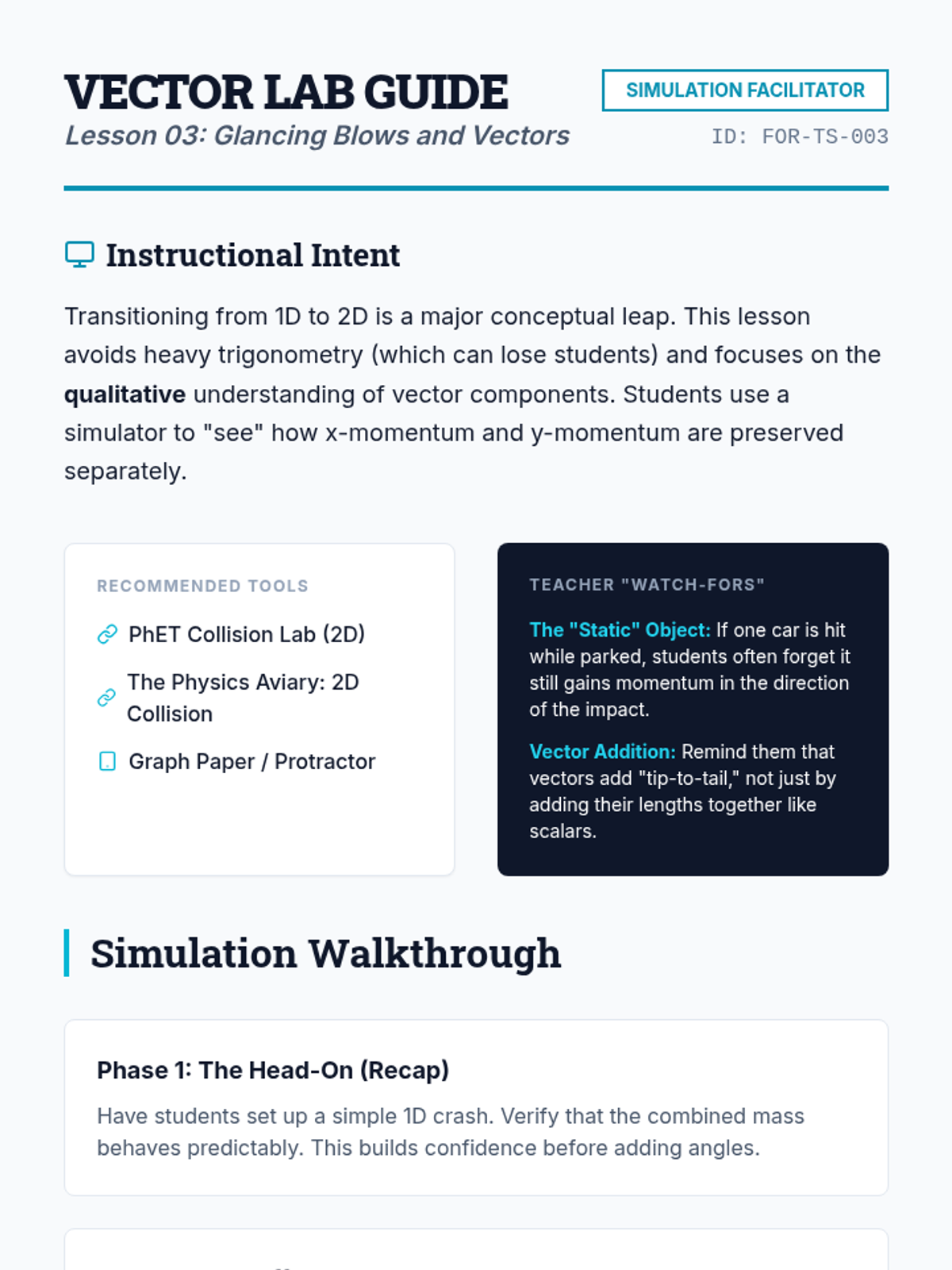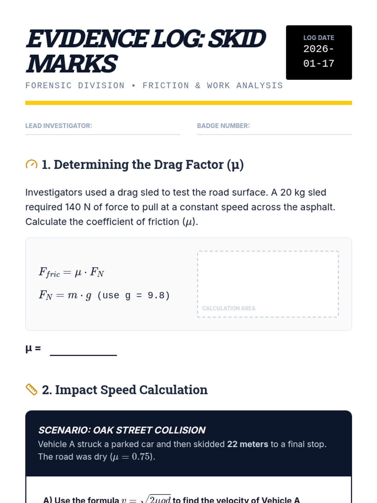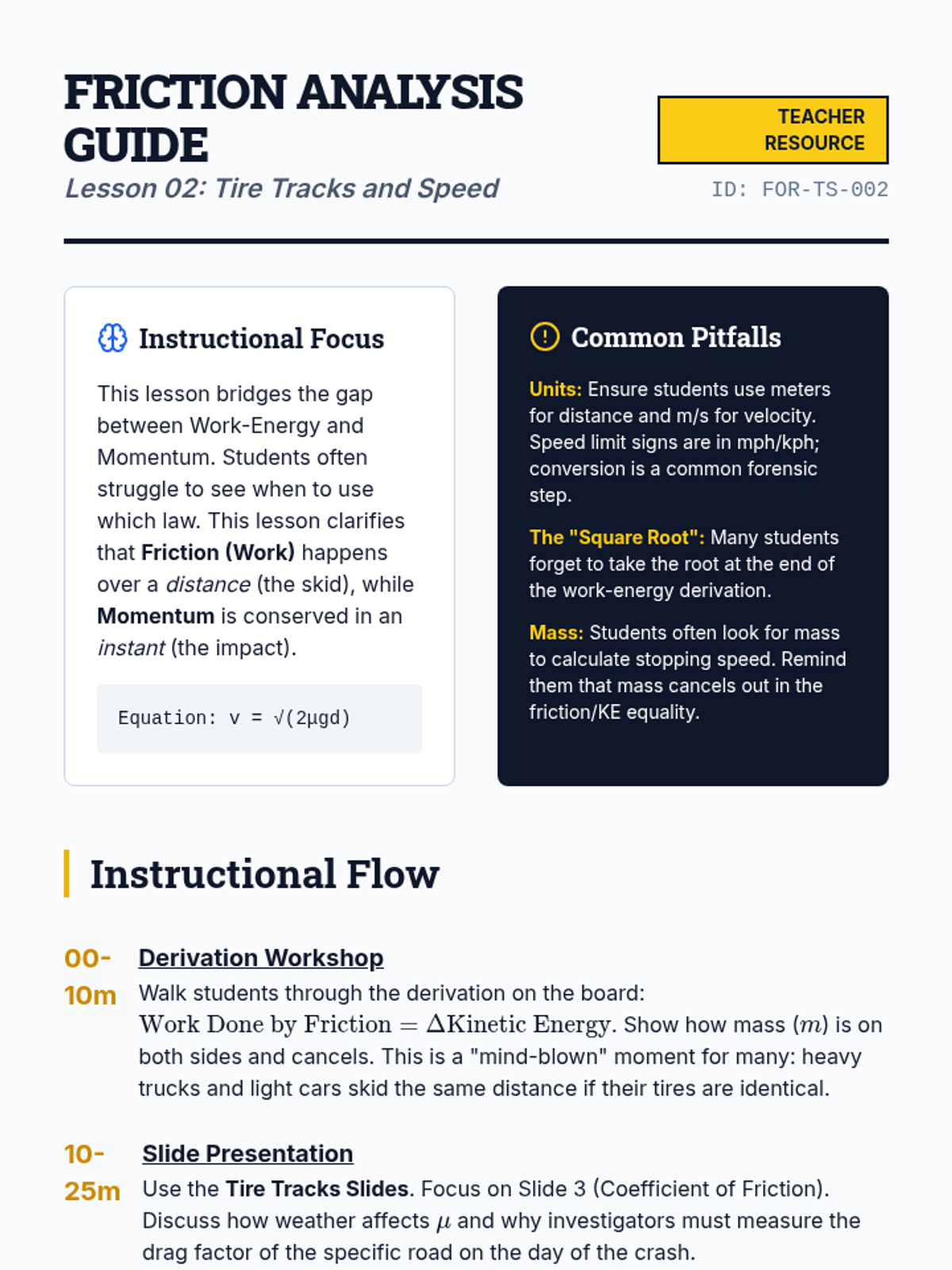 A 10th-grade physics sequence that applies momentum and impulse principles to forensic accident reconstruction. Students take on the role of forensic engineers to determine fault in vehicle collisions using conservation laws.