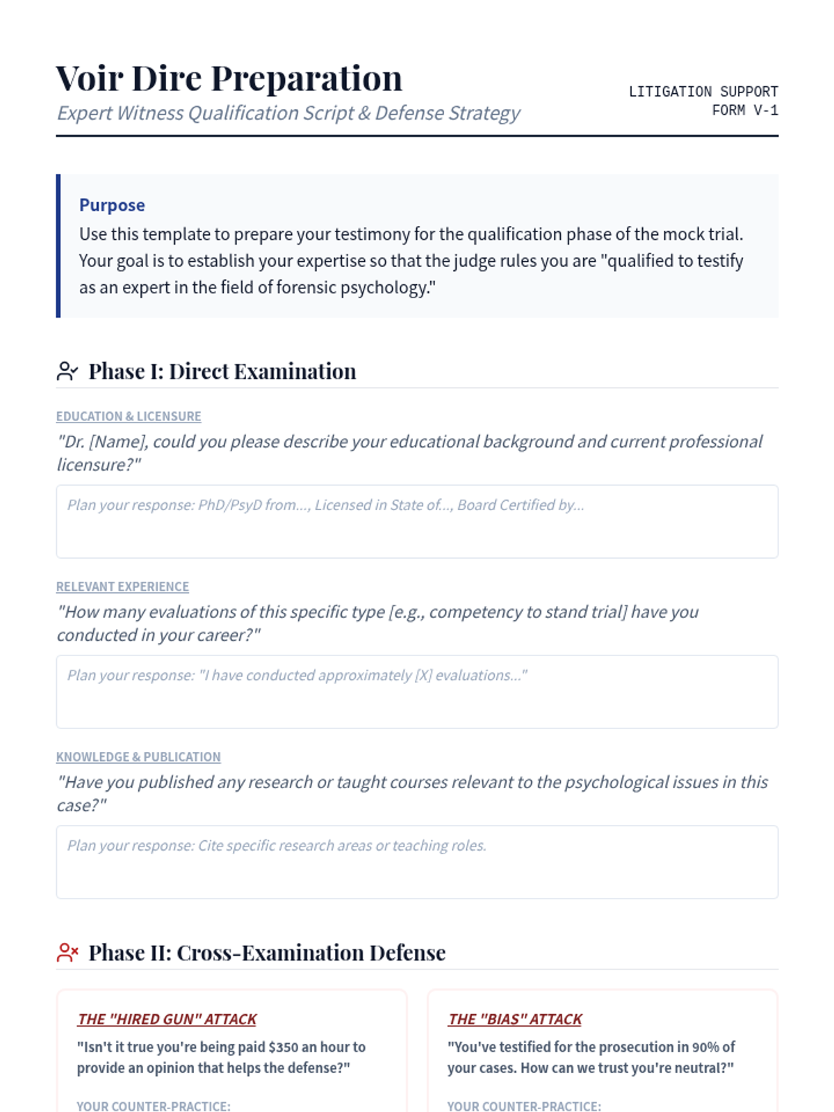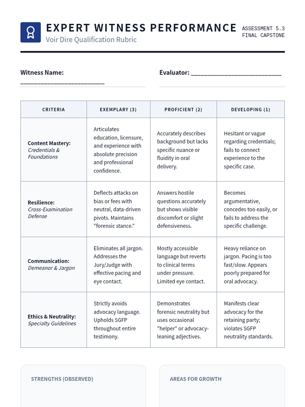 A graduate-level examination of psychological evidence admissibility and the ethical frameworks governing forensic practice. Students analyze landmark legal rulings and develop skills in expert witness qualification and forensic report writing.