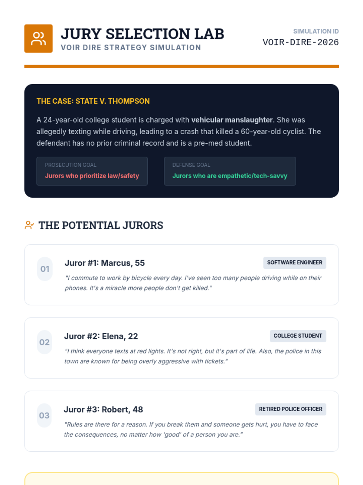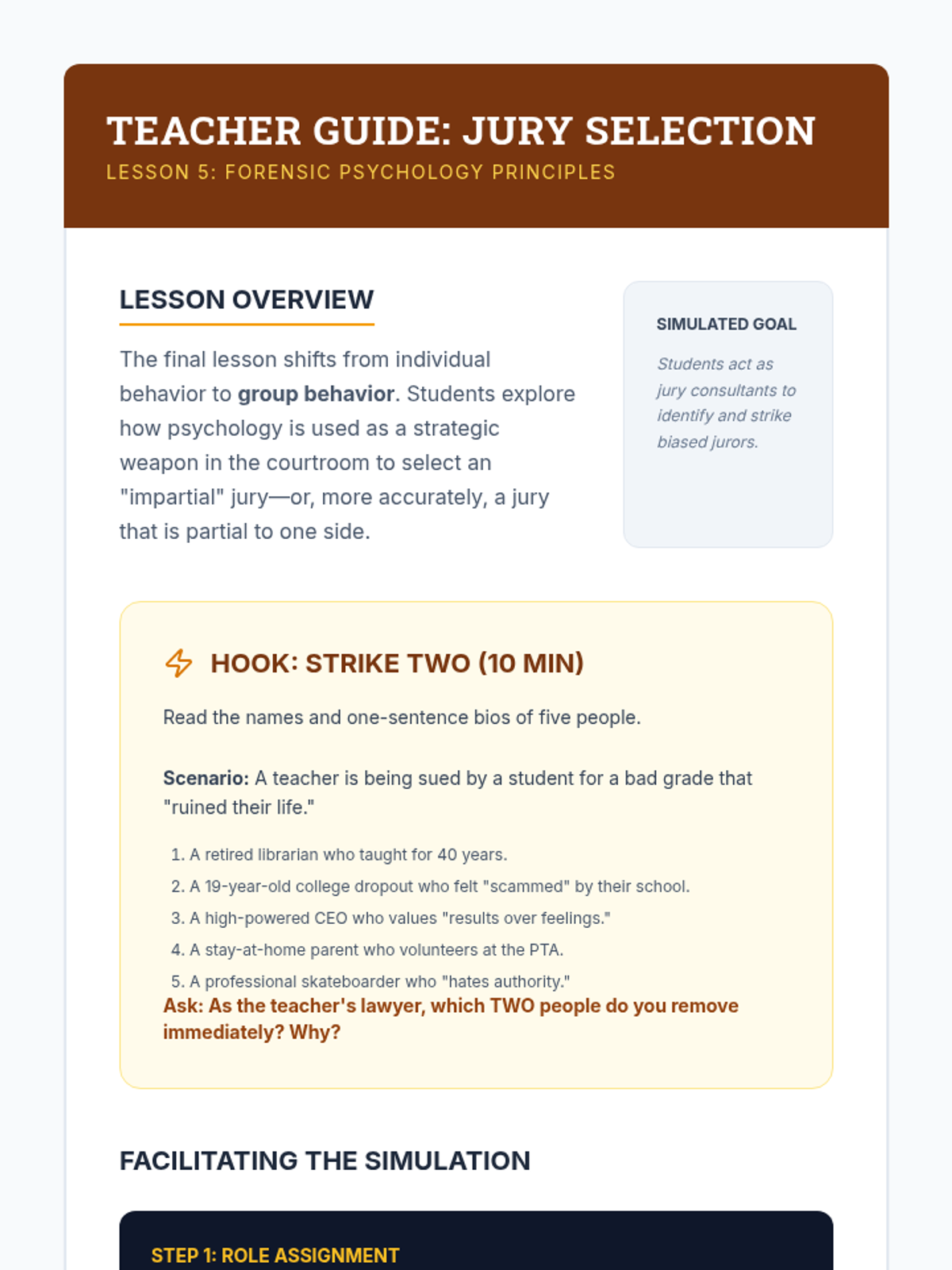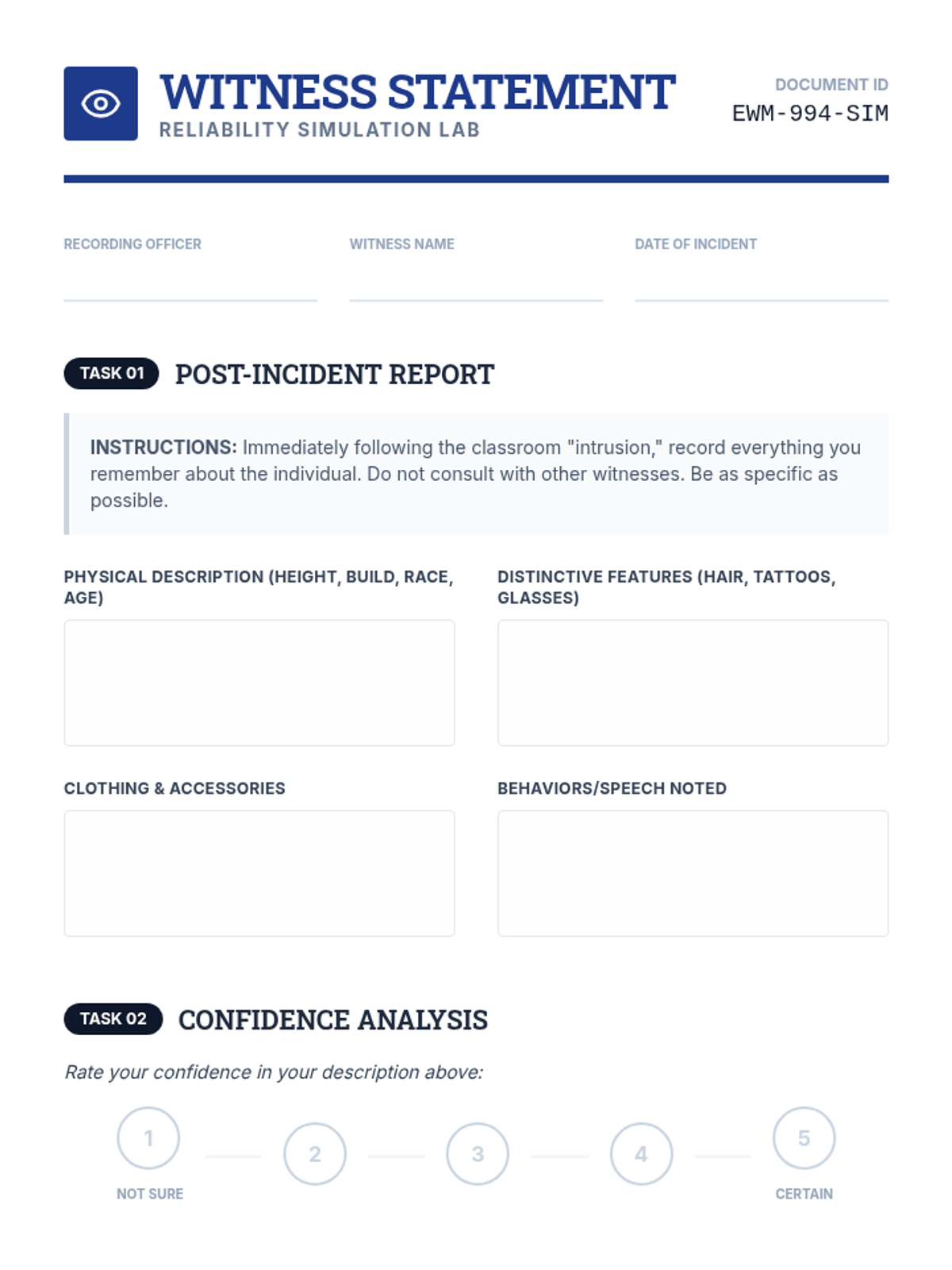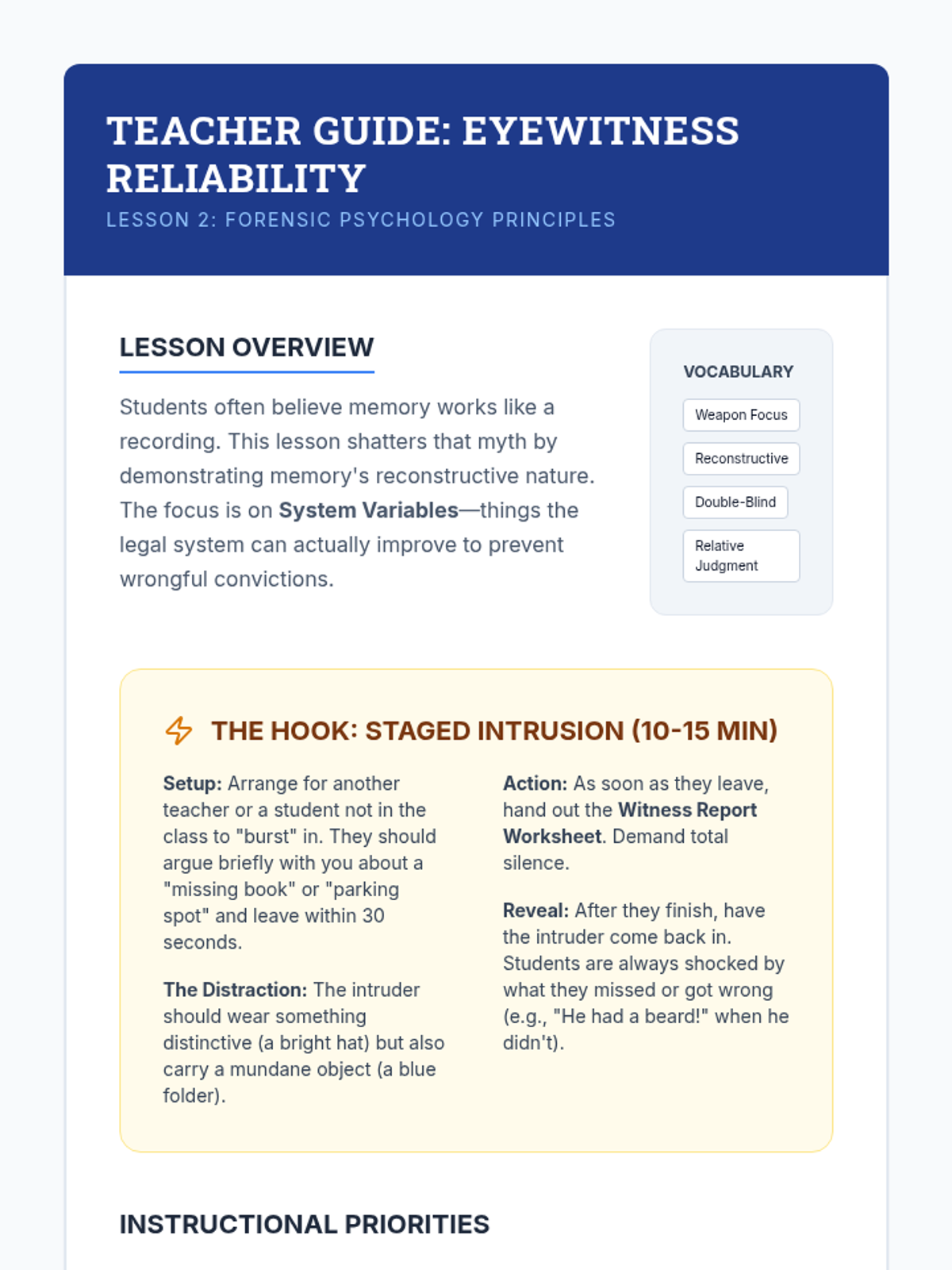 This unit explores the intersection of psychology and the law, covering profiling, memory reliability, interrogations, the insanity defense, and jury dynamics. Students apply psychological theories to legal contexts through simulations and case analysis.