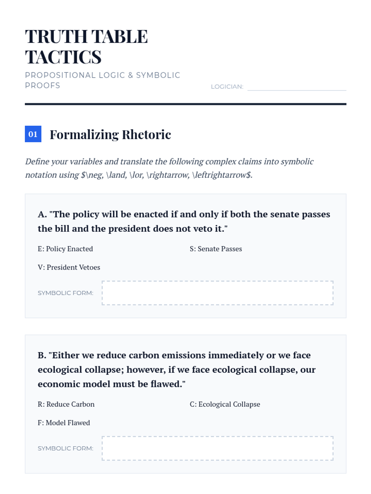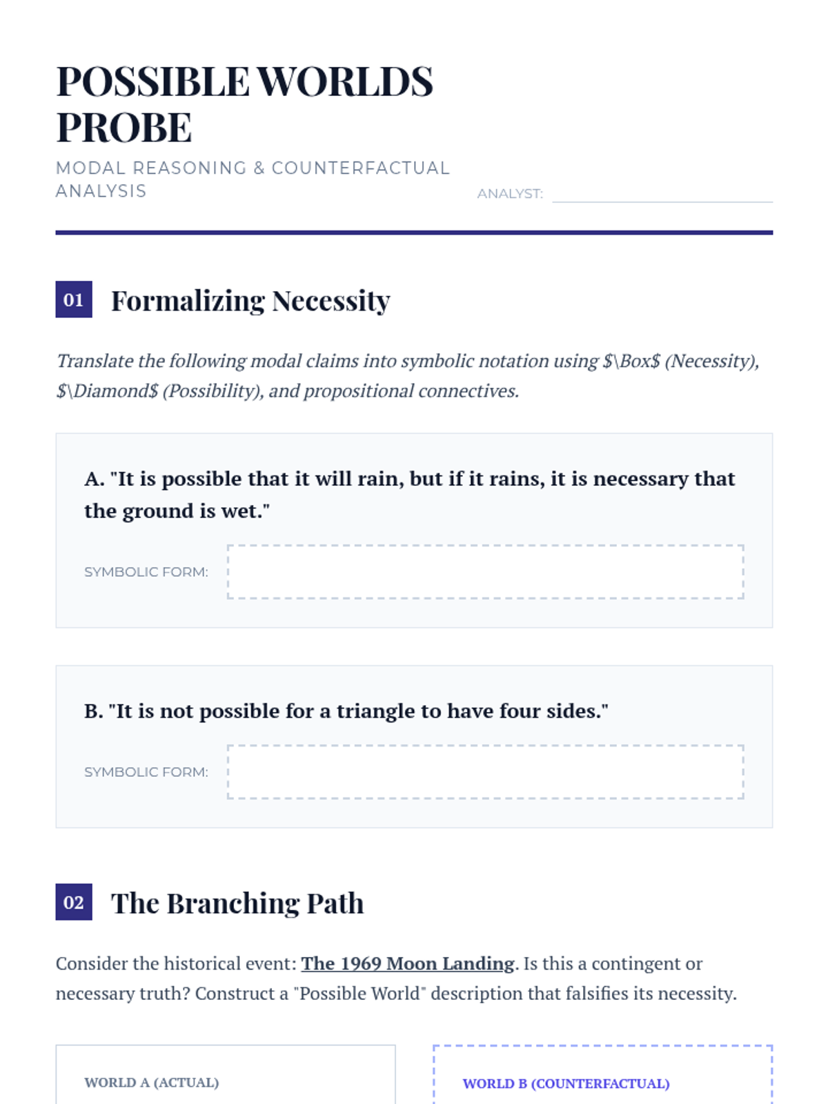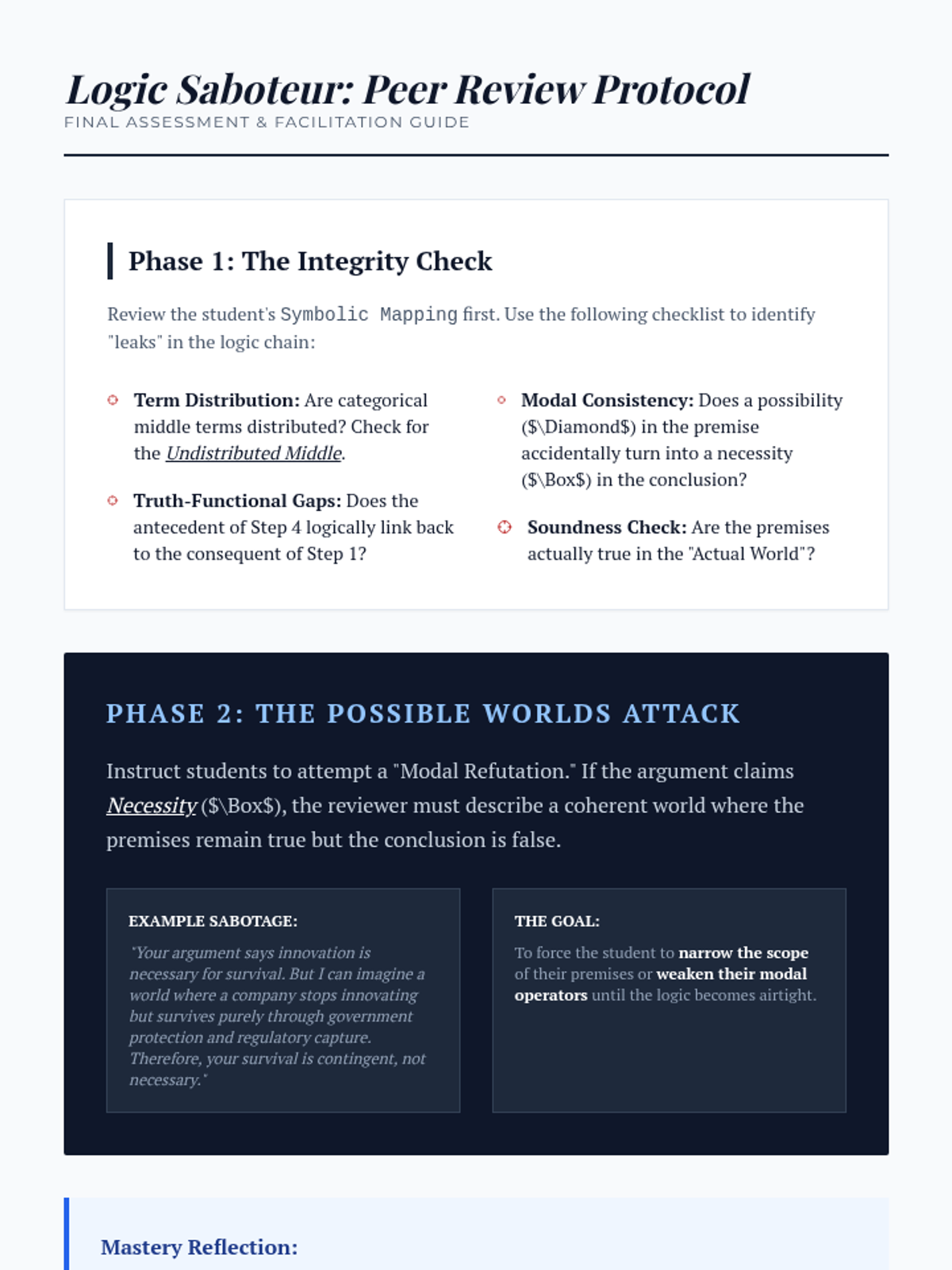 An advanced sequence for graduate students exploring the rigors of deductive logic, propositional calculus, and modal reasoning. Students move from categorical syllogisms to constructing airtight formal proofs for academic and professional discourse.
