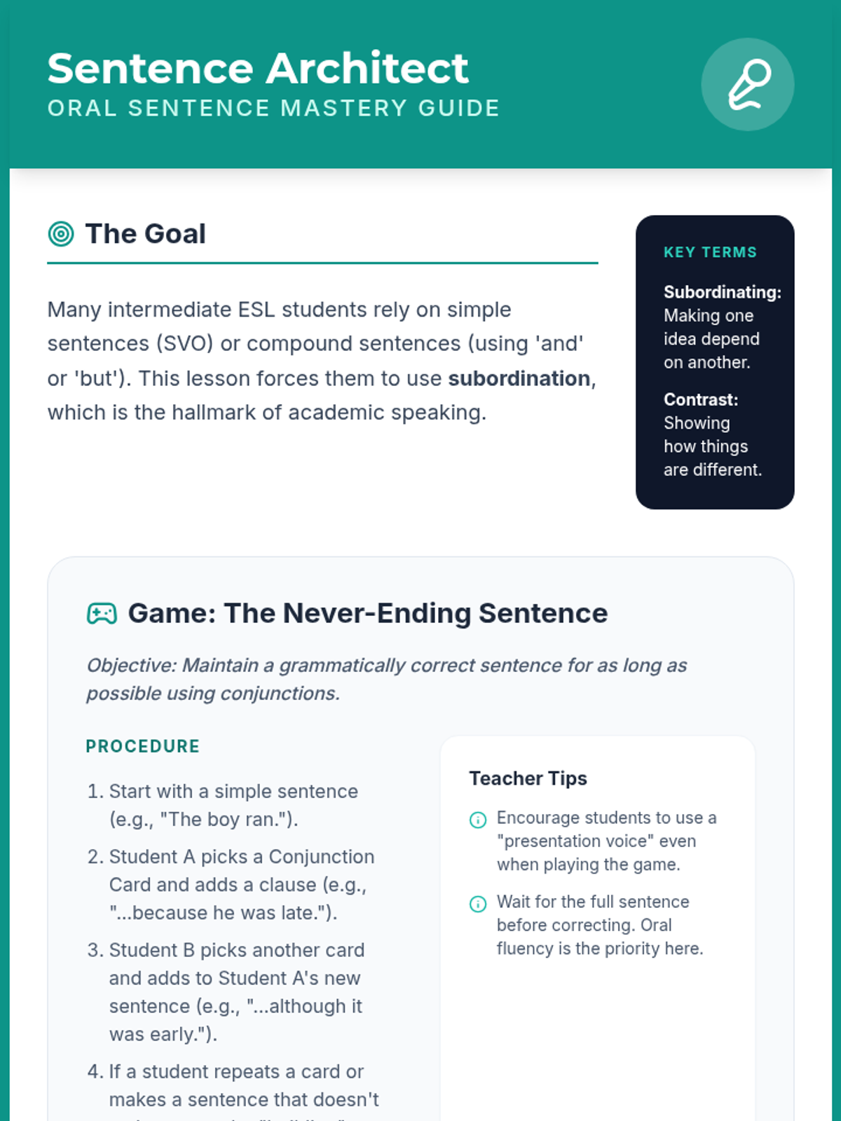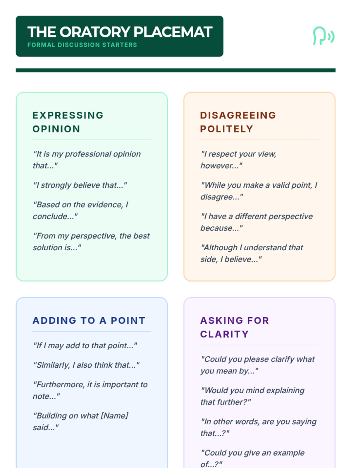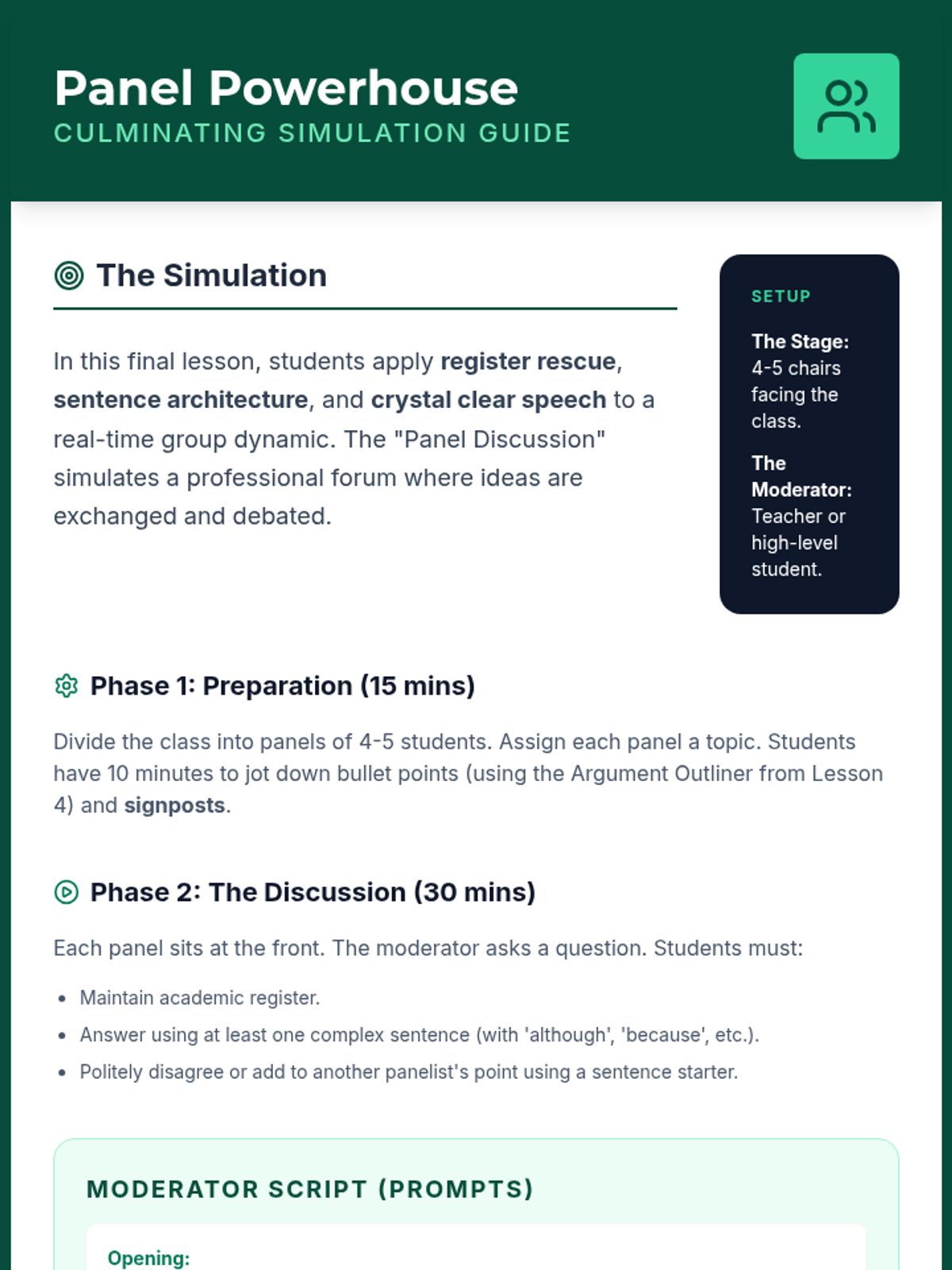 A sequence for 5th-grade intermediate ESL students focused on transitioning from social conversation to formal academic speaking through register awareness, complex sentence structures, and structured oral argumentation.