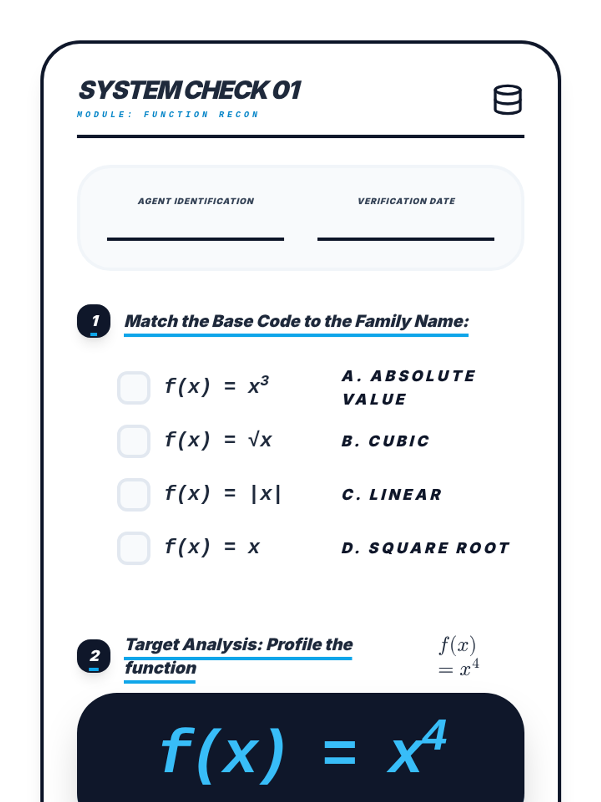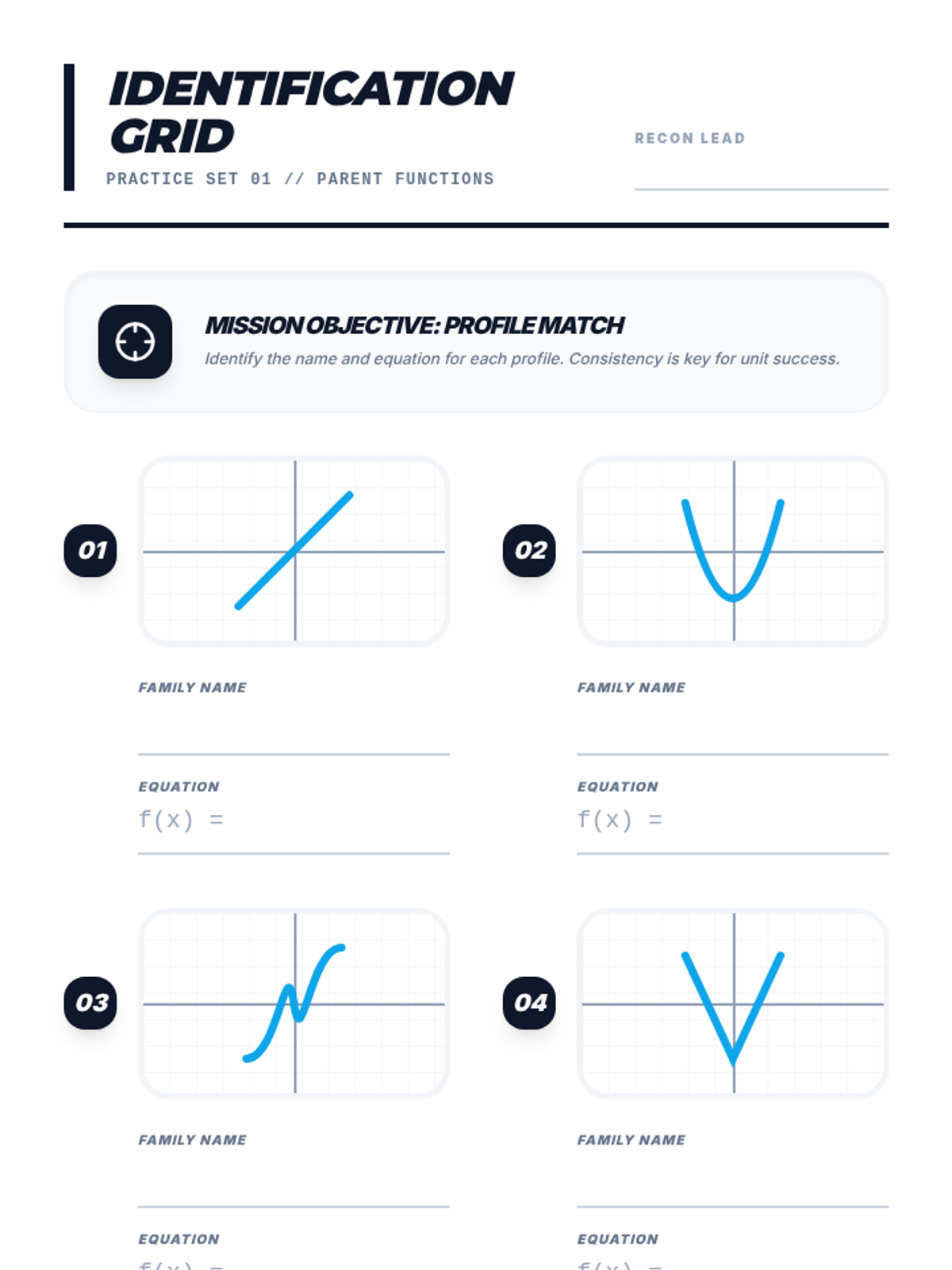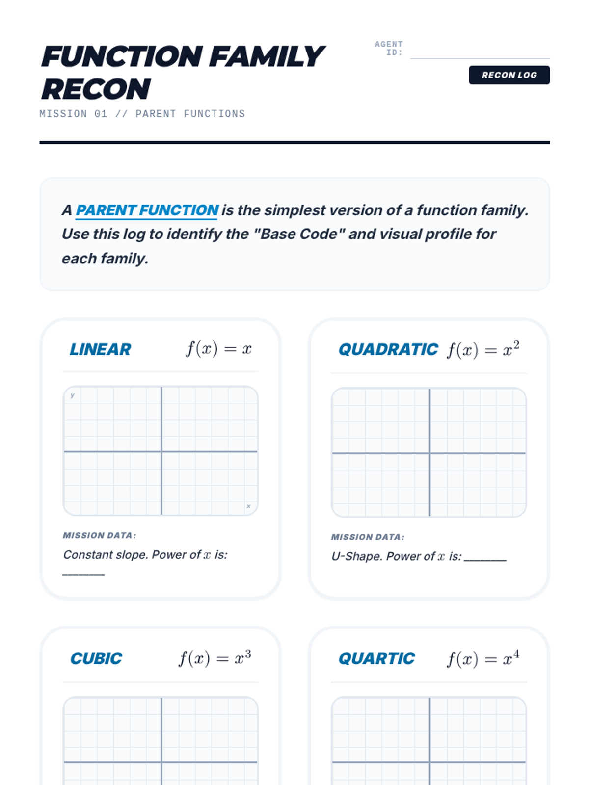 A 5-day Algebra 2 Credit Recovery unit focused on quadratic equations, covering parent functions, key features of graphs, factoring, and the quadratic formula. Designed for 40-minute class periods with a blueprint-inspired visual theme.
