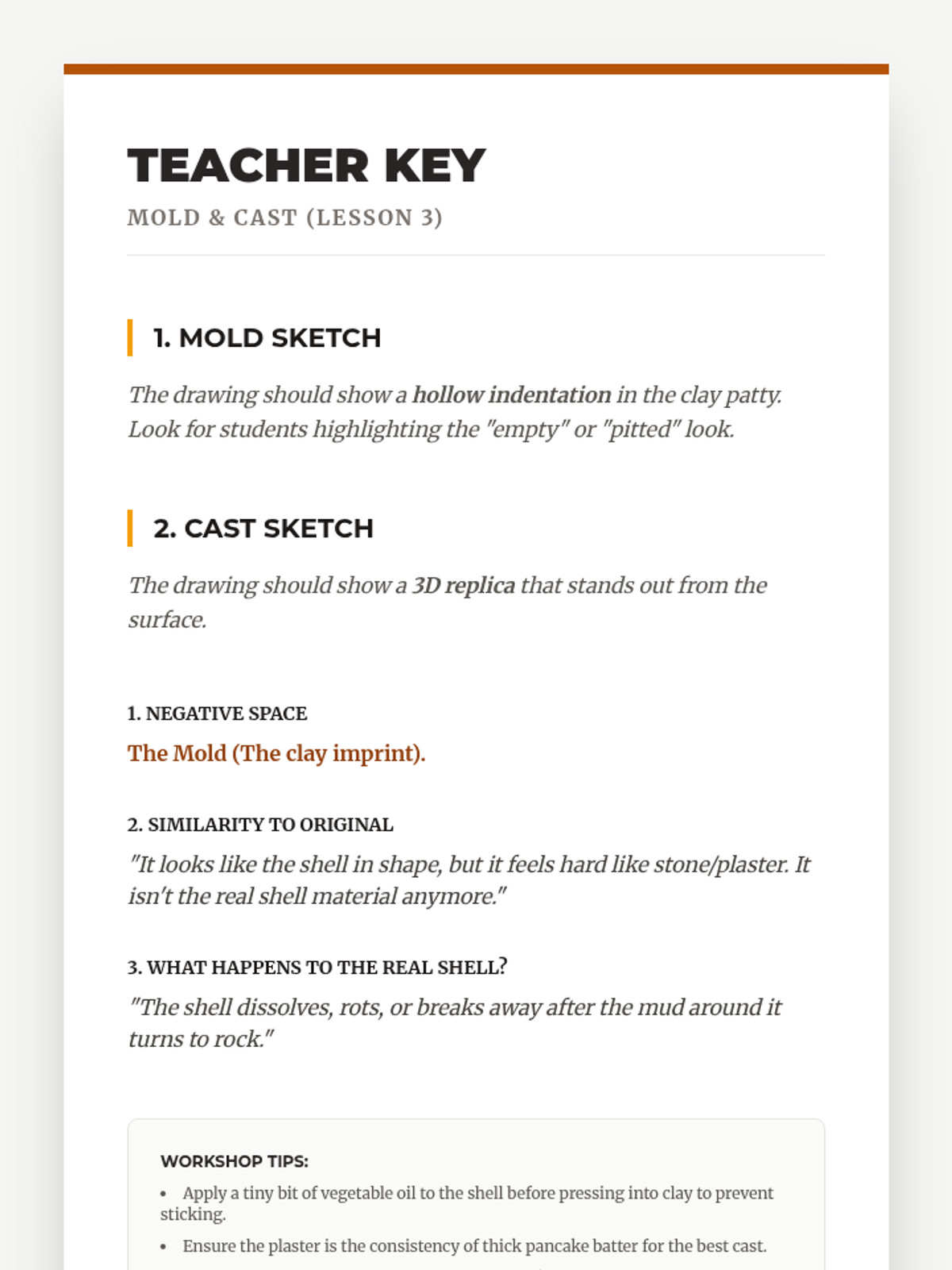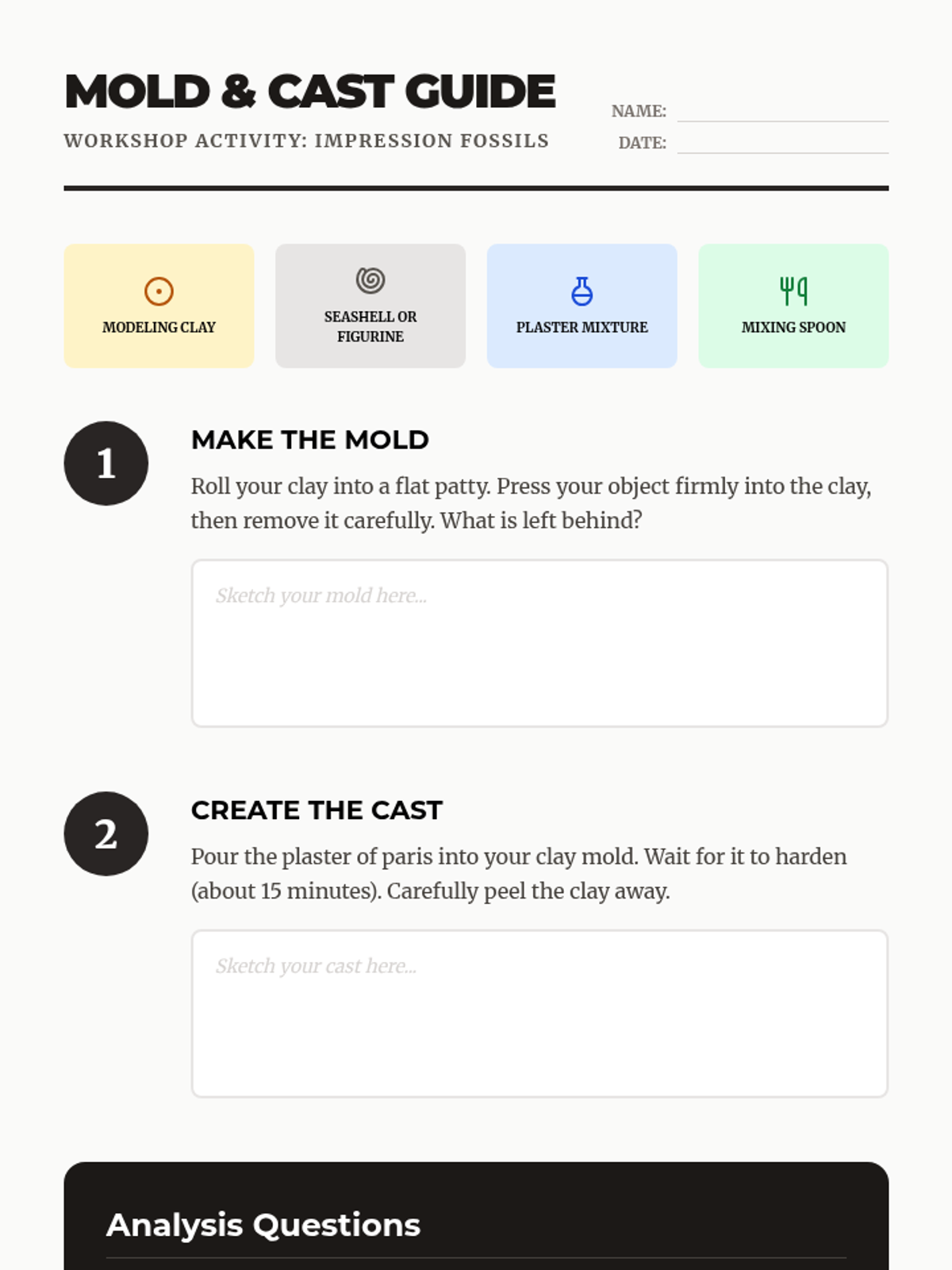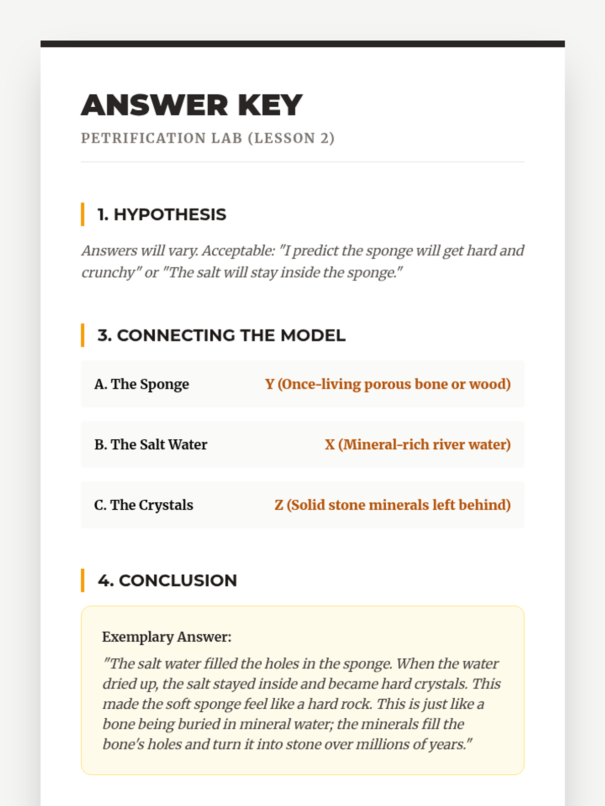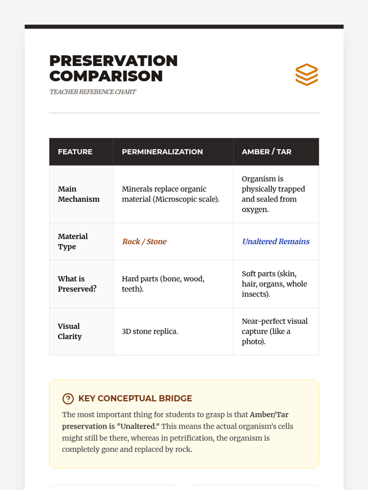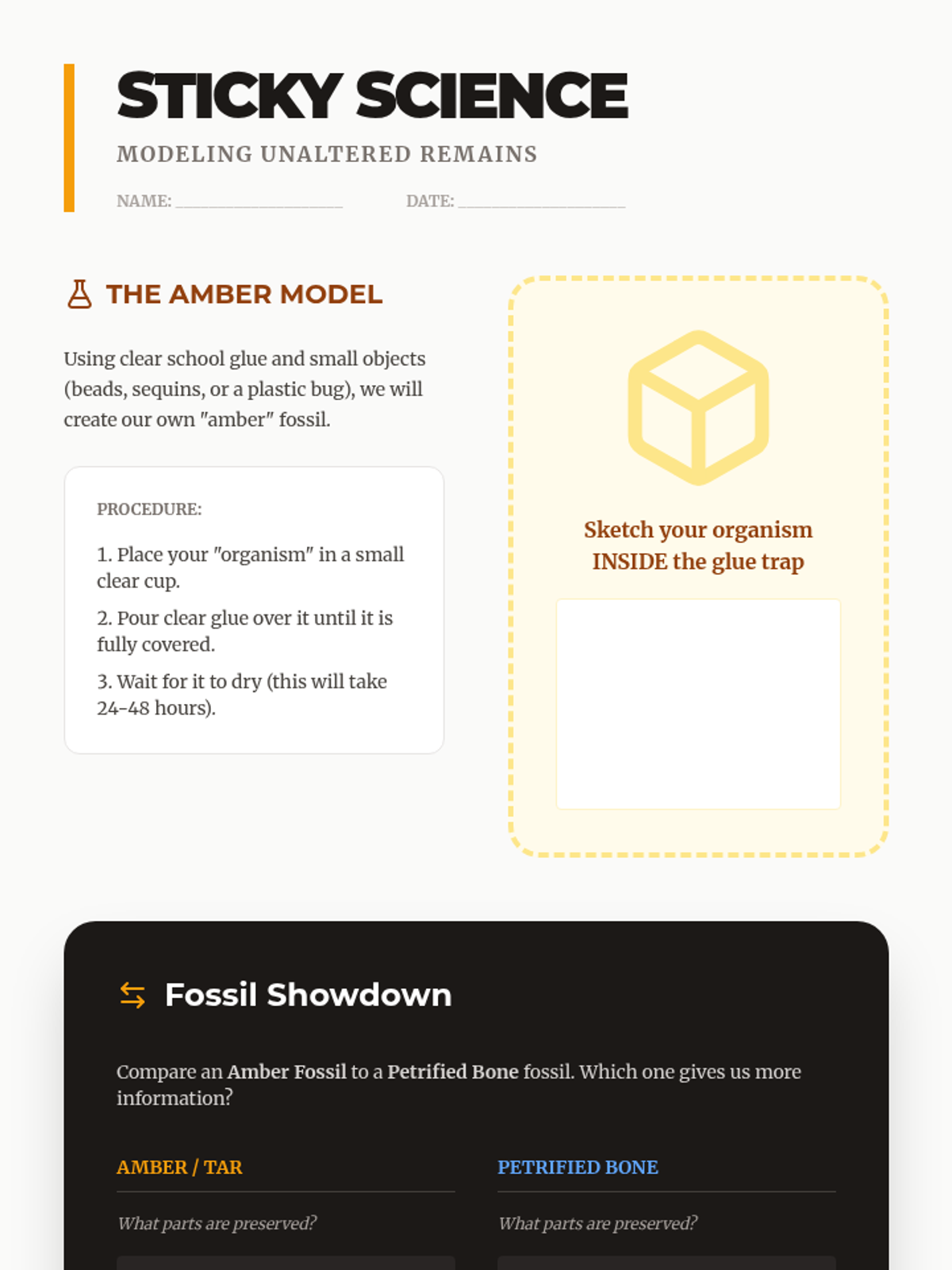 A comprehensive 4th-grade unit exploring the biological and geological mechanics of fossilization. Students move from identifying biological remains to simulating petrification, creating molds and casts, and understanding the rare conditions required for preservation.