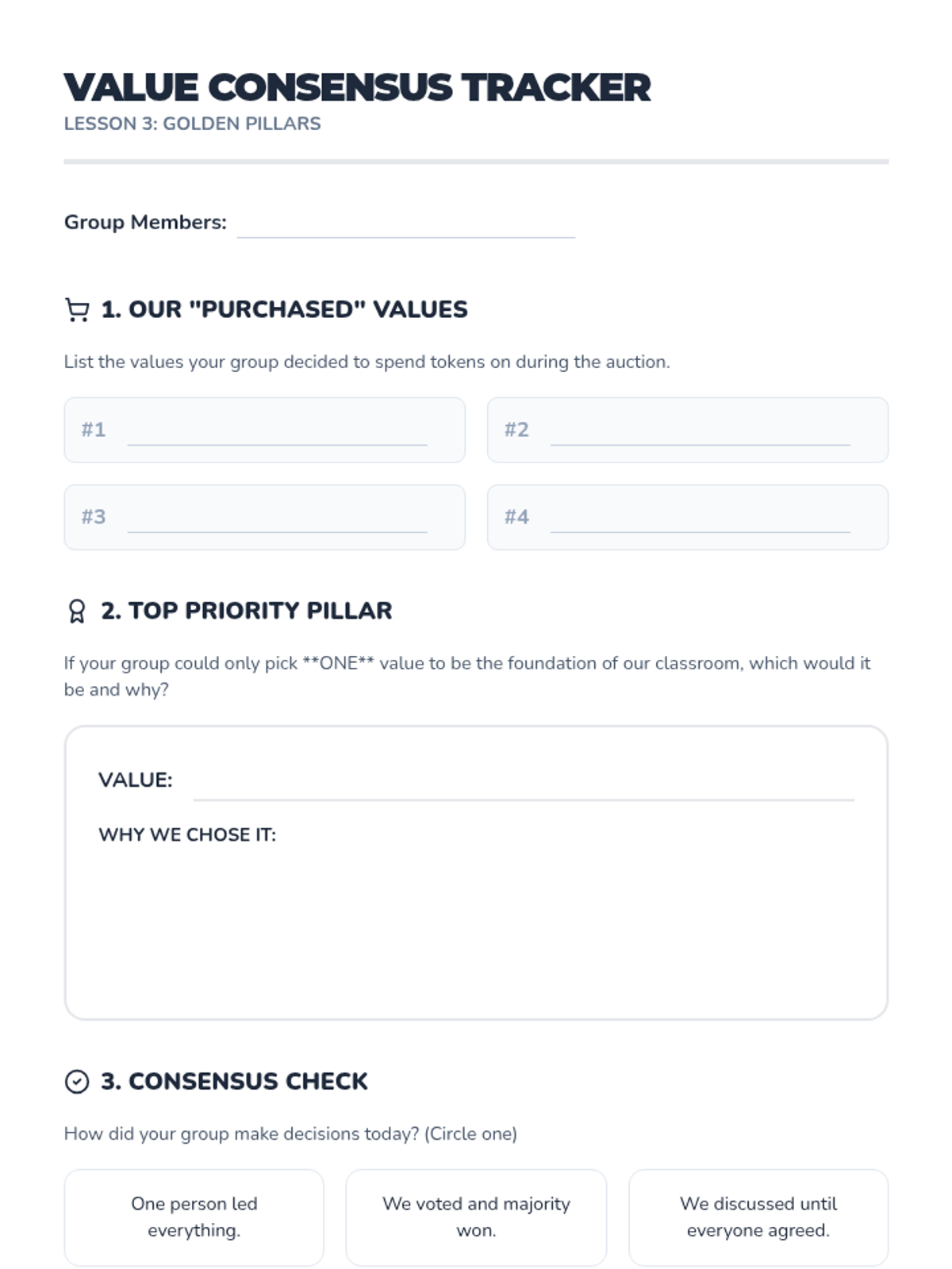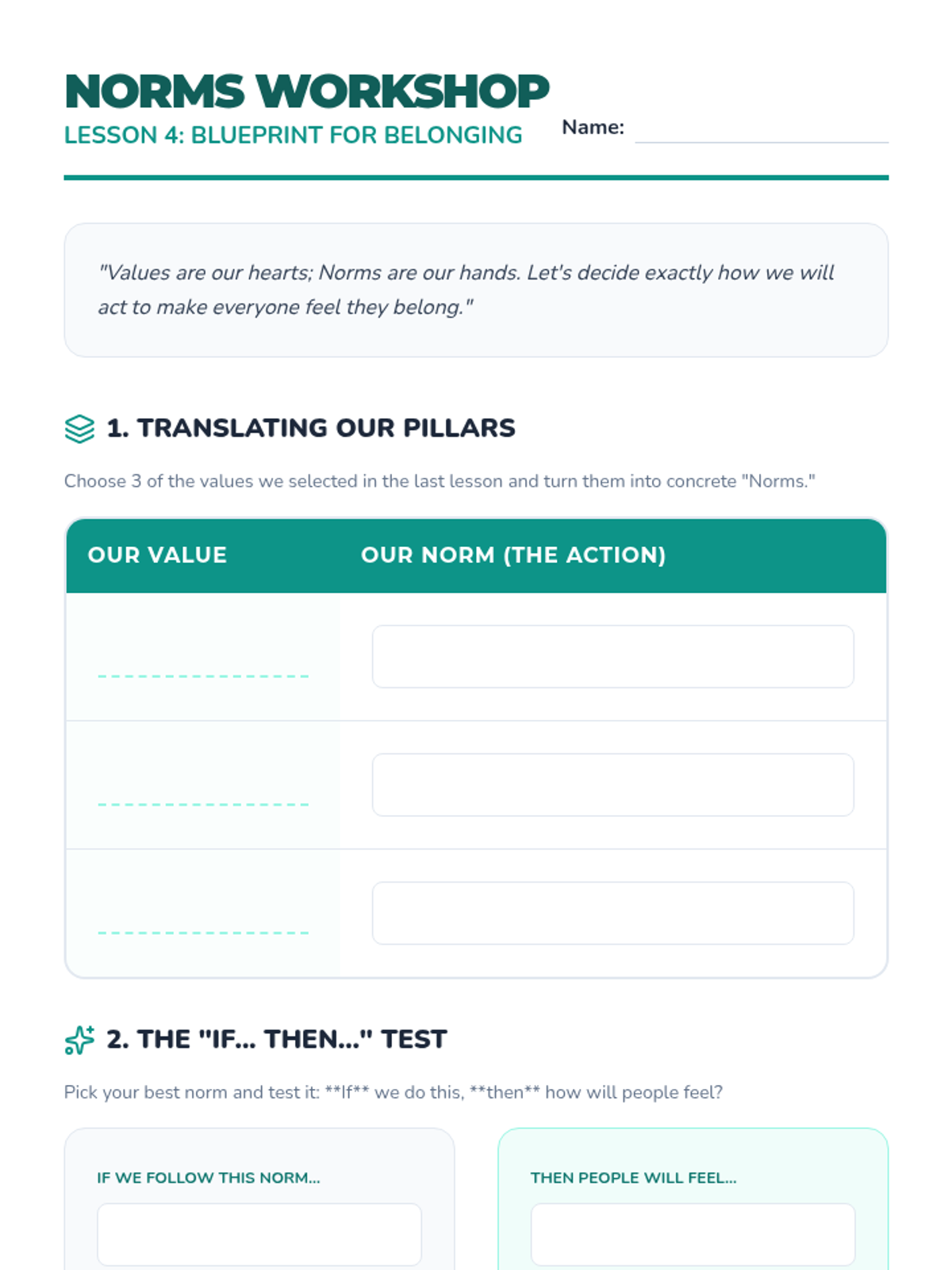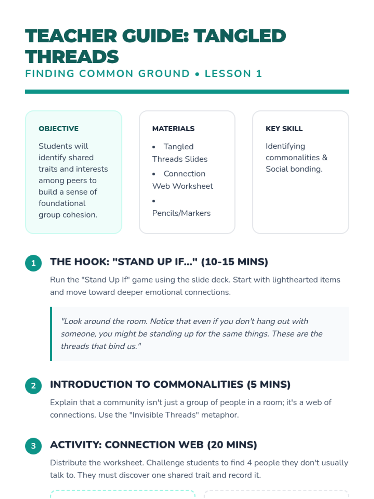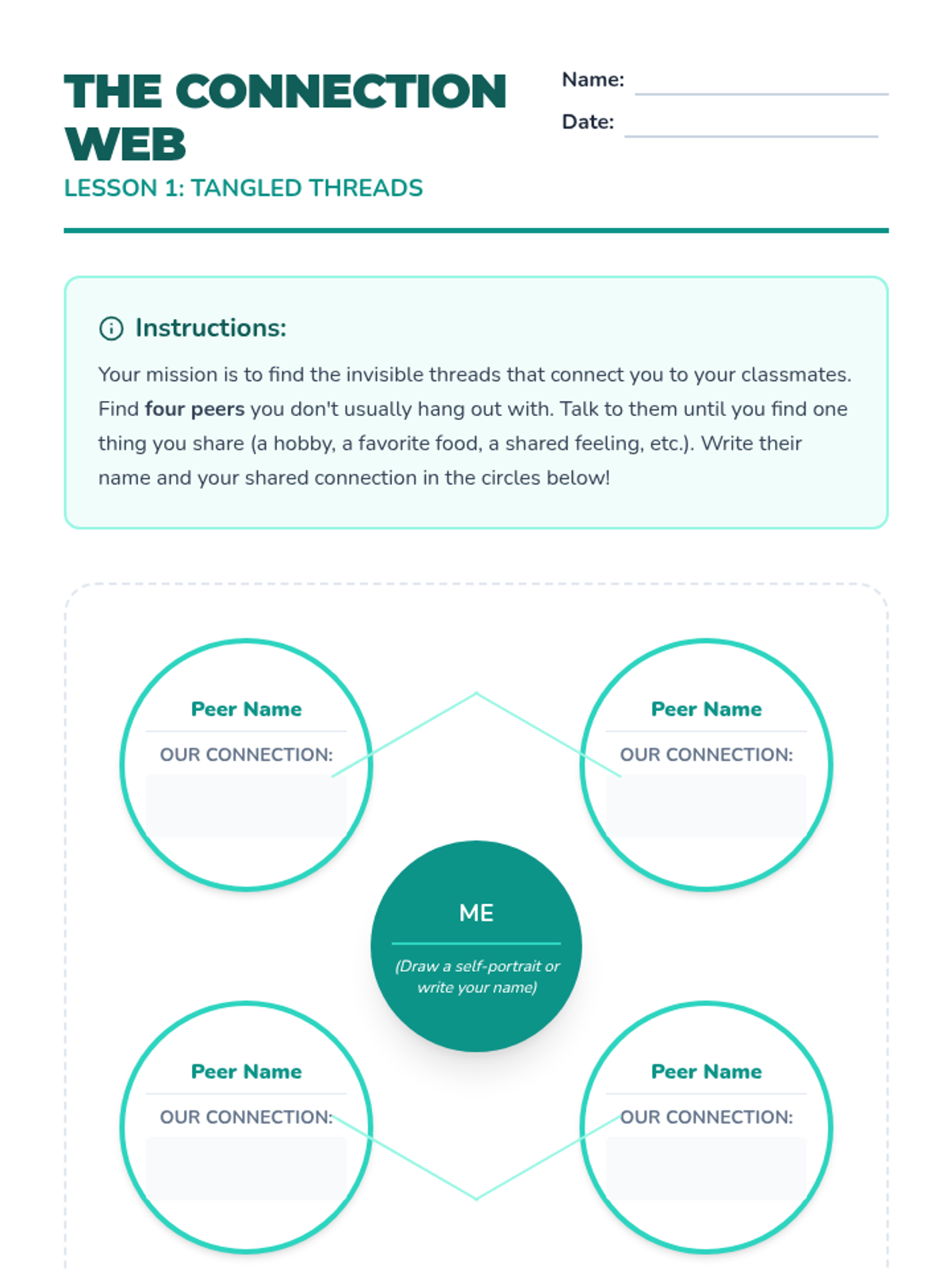 A 5th-grade counseling sequence focused on building a collective group identity. Students explore commonalities, individual strengths, and shared values to co-create a binding Class Charter that fosters a sense of belonging and mutual respect.